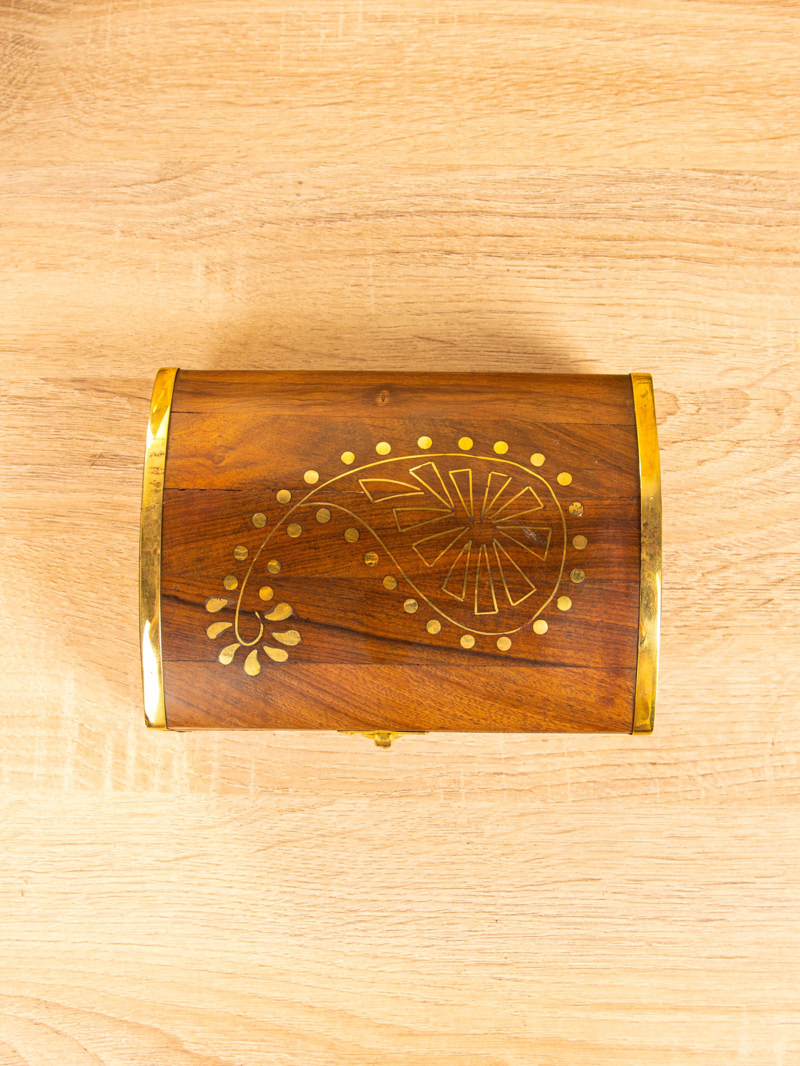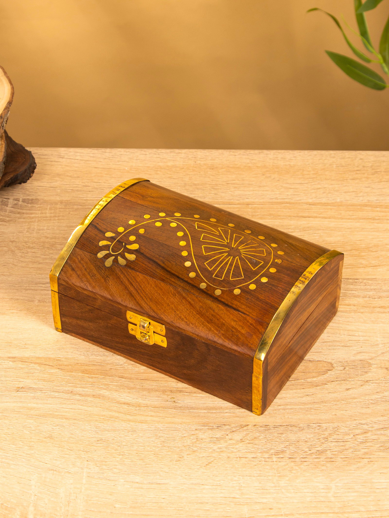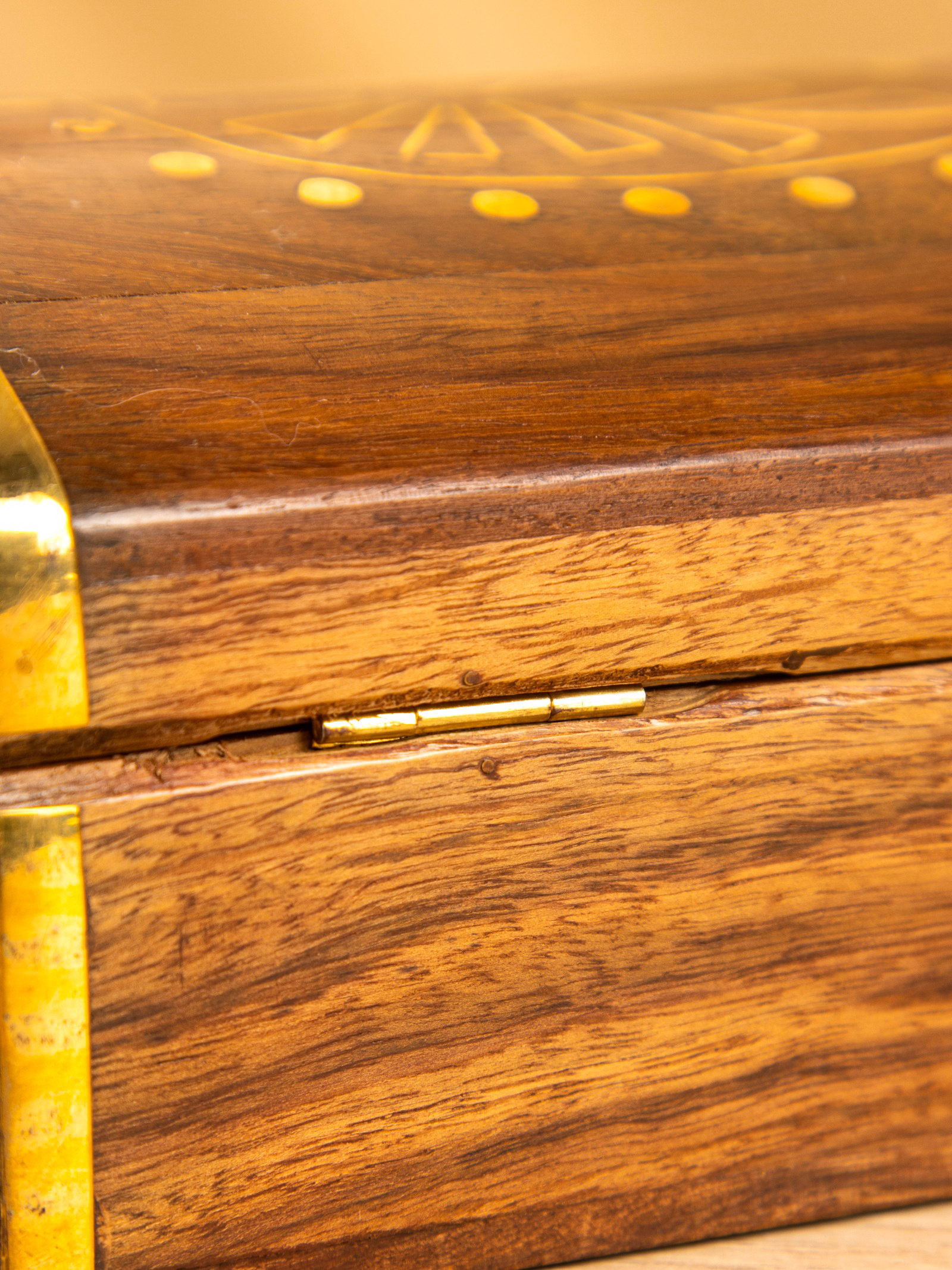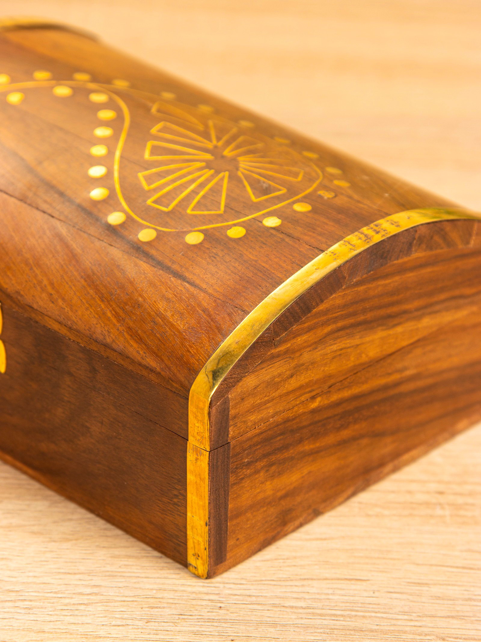 Шкатулка "Глу", 18x12.8x8 см, дерево шишам, латунь, 12x17x7 см., Индия
