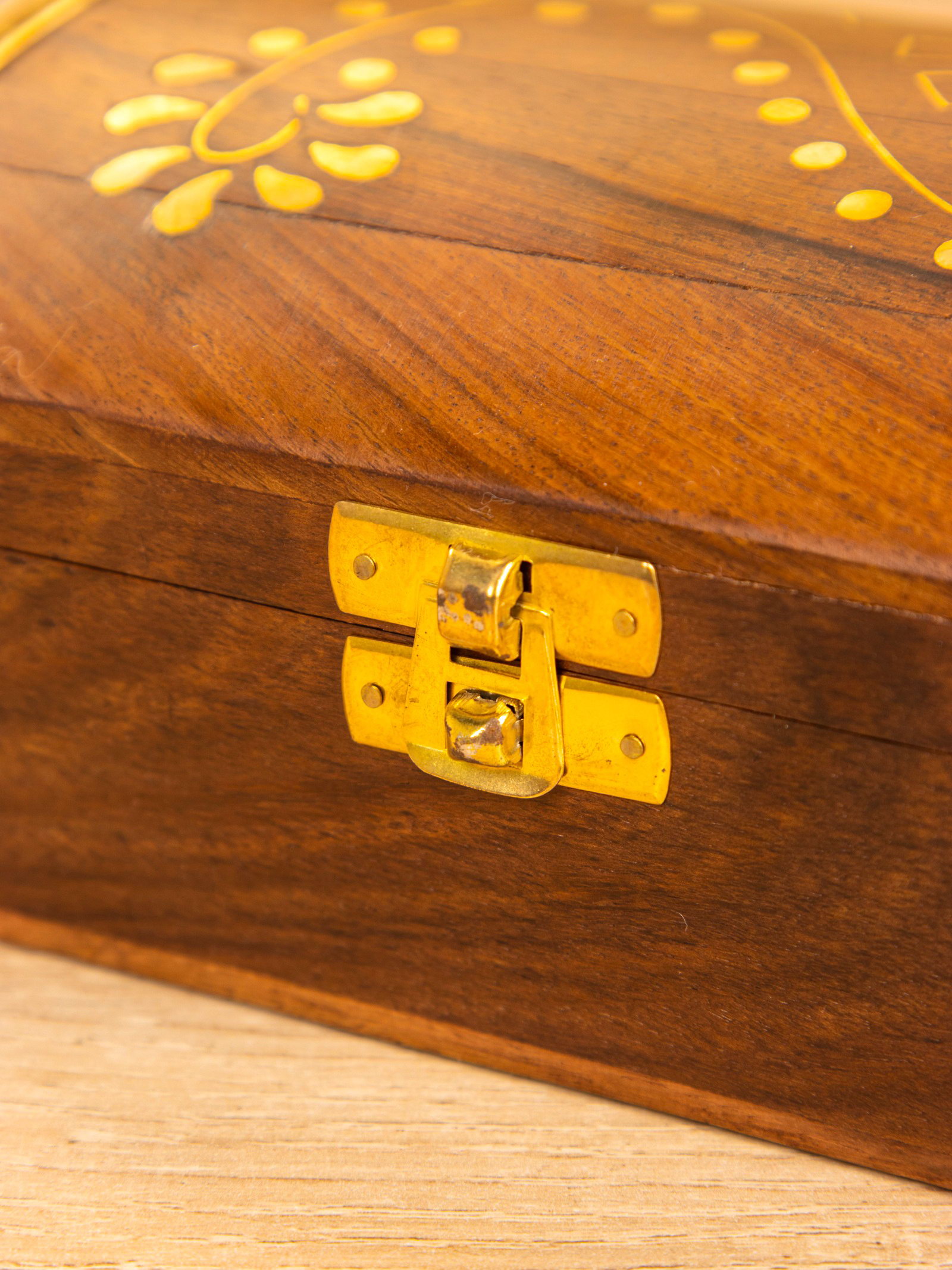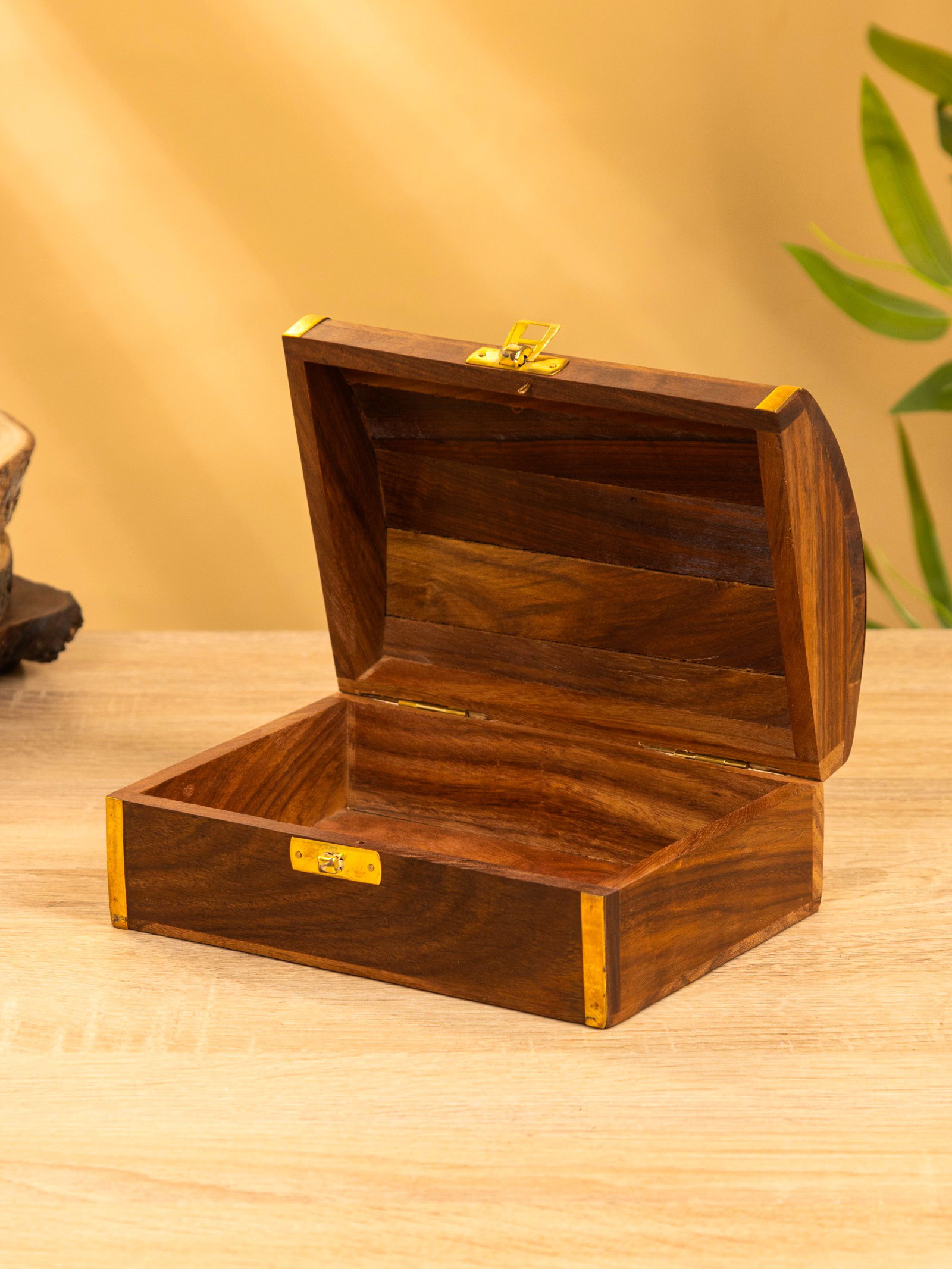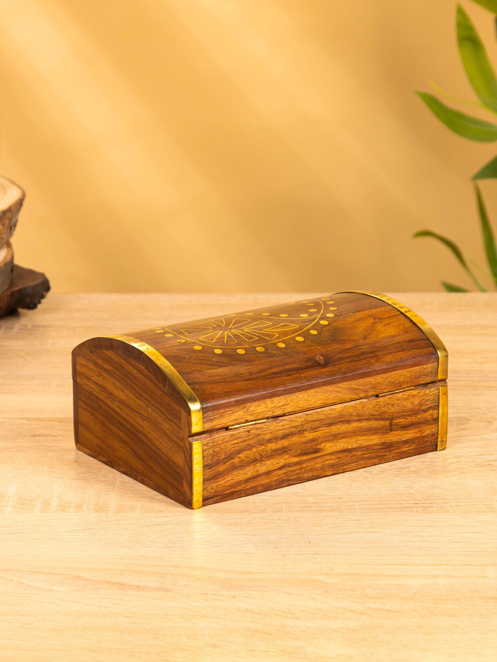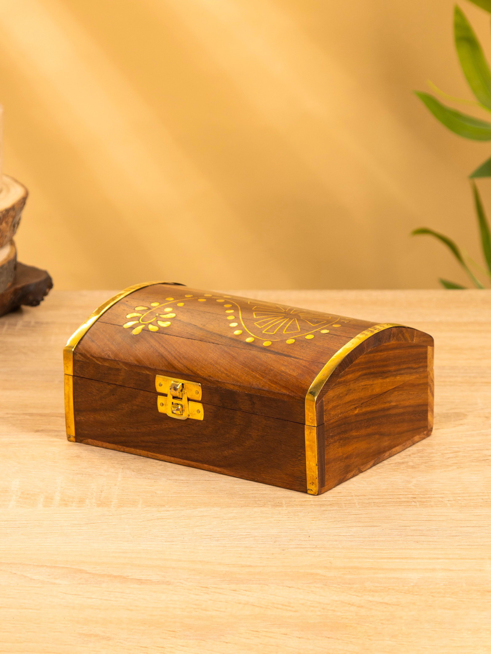 Шкатулка "Глу", 18x12.8x8 см, дерево шишам, латунь, 12x17x7 см., Индия