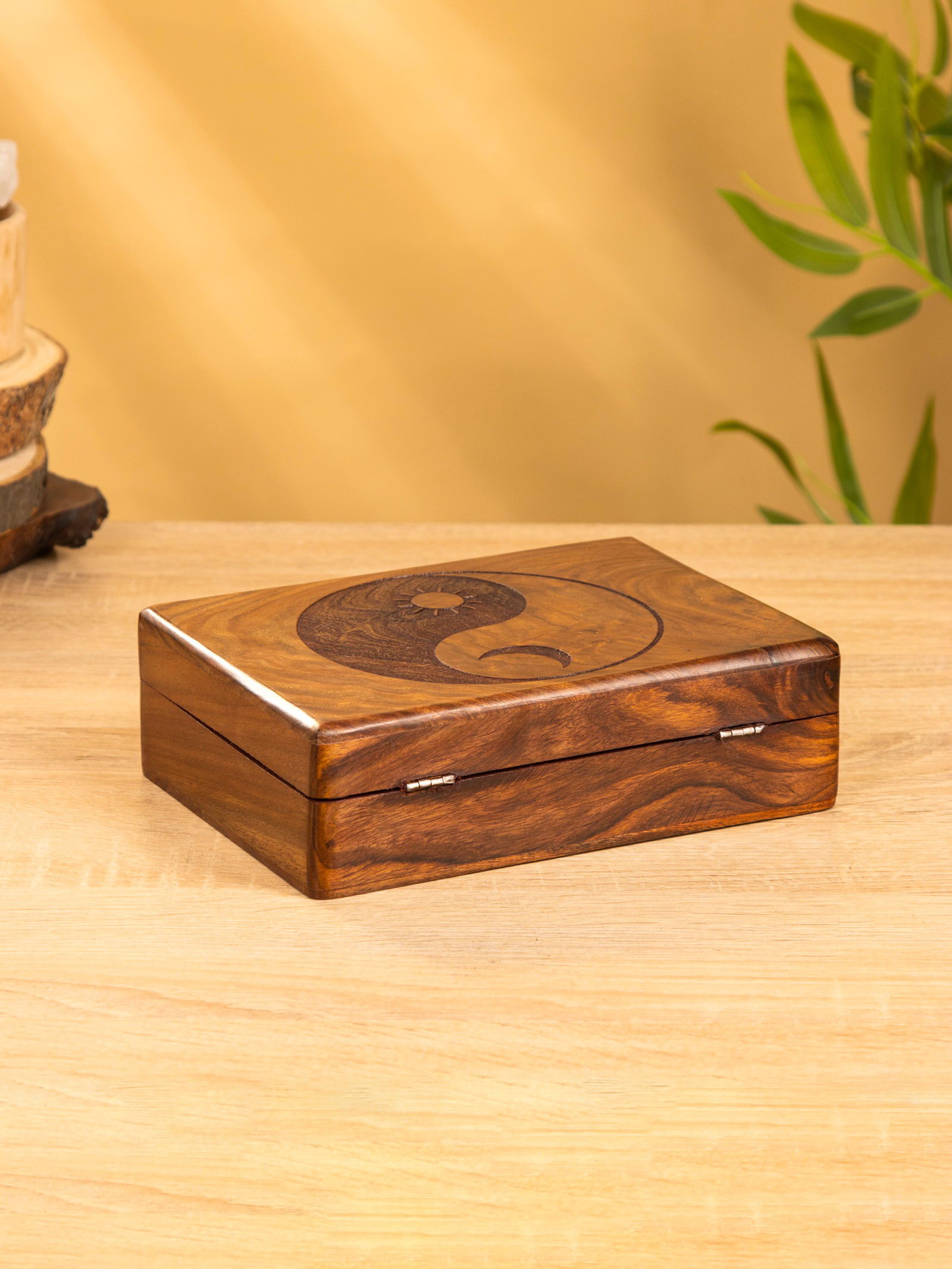 Шкатулка "Инь-ян", 20x15x6 см, дерево шишам, 15x20x6 см., Индия