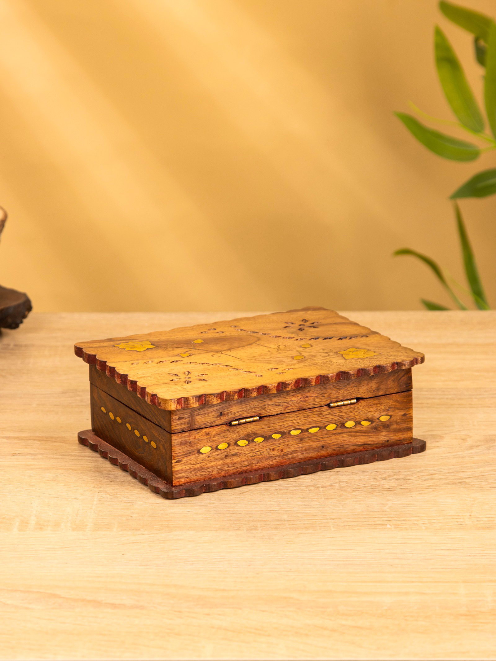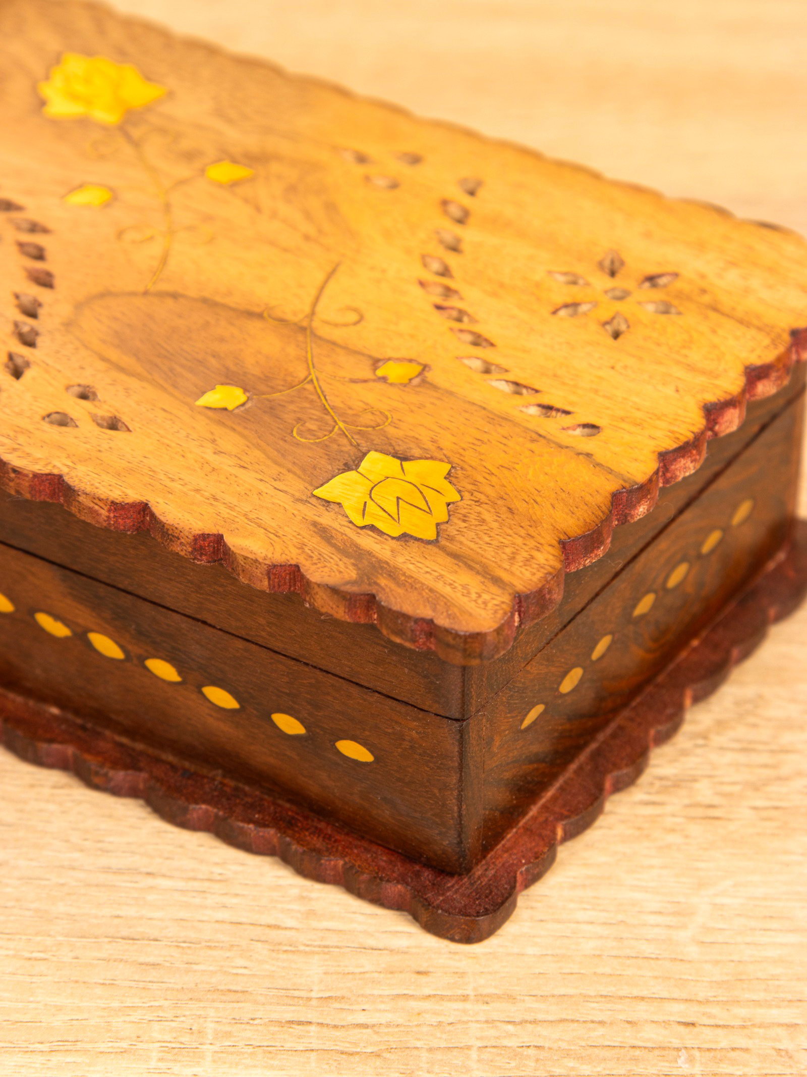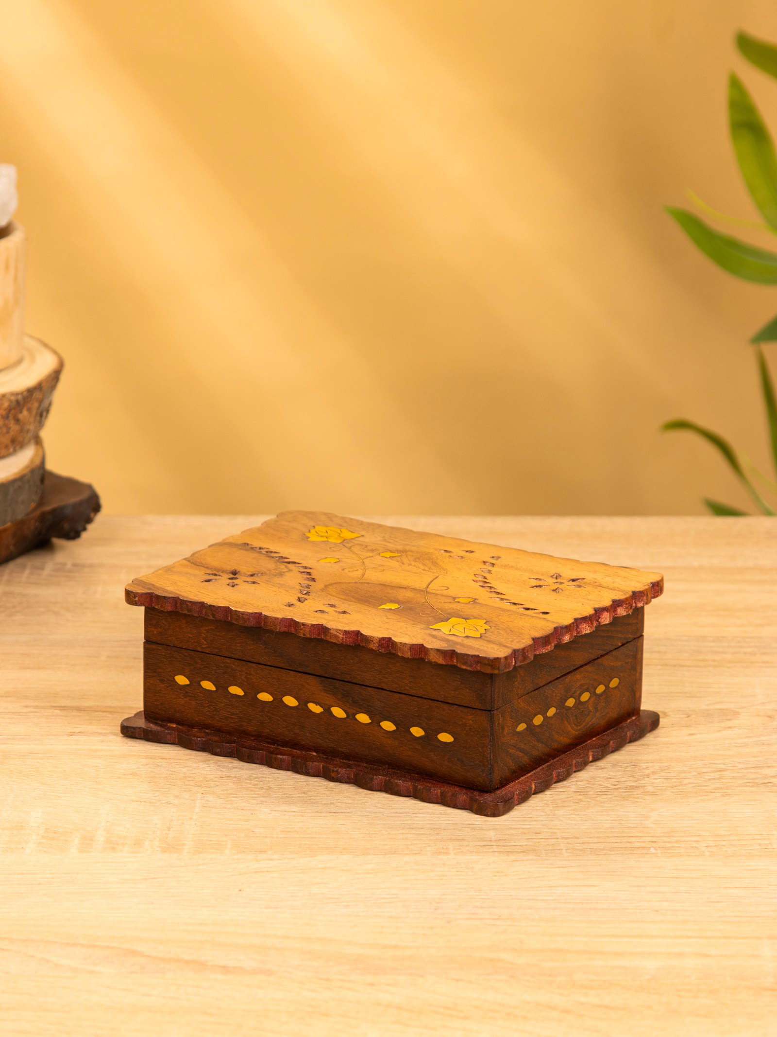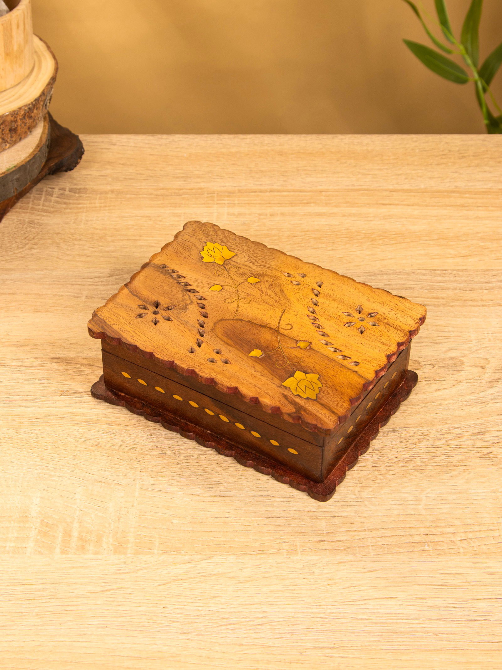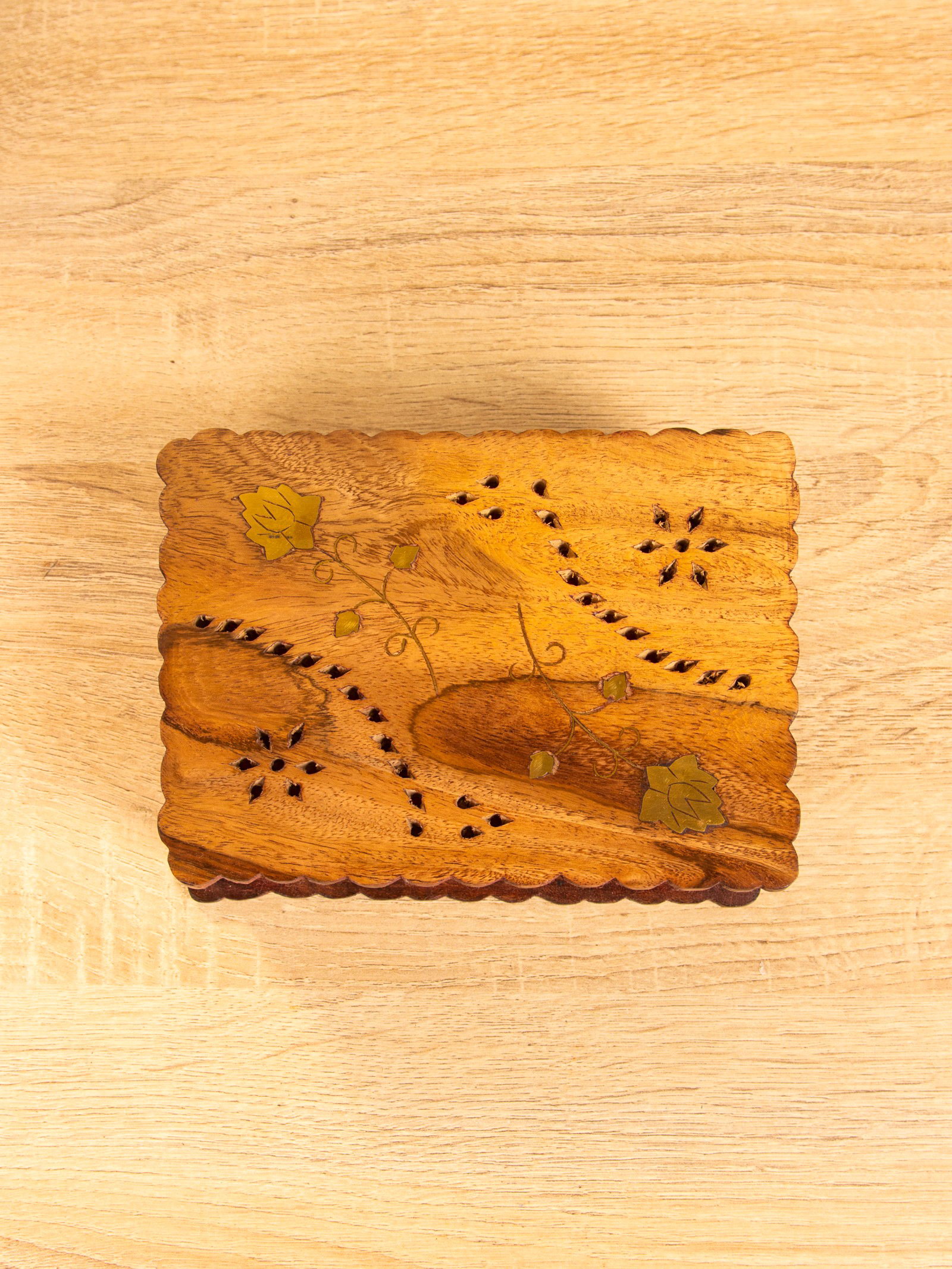 Шкатулка резная "Листья", 18x13x6 см, дерево шишам, 13x18x6 см., Индия