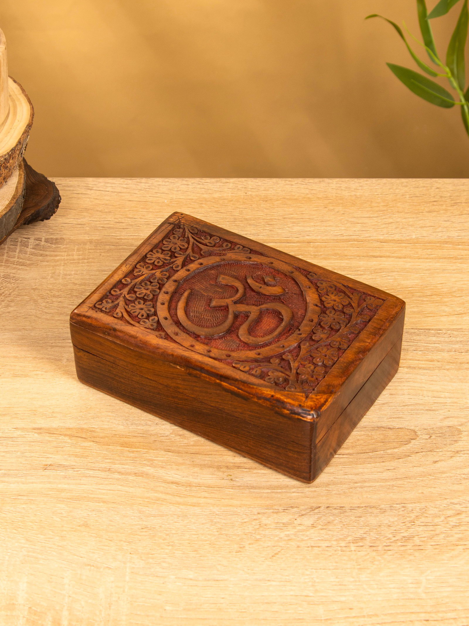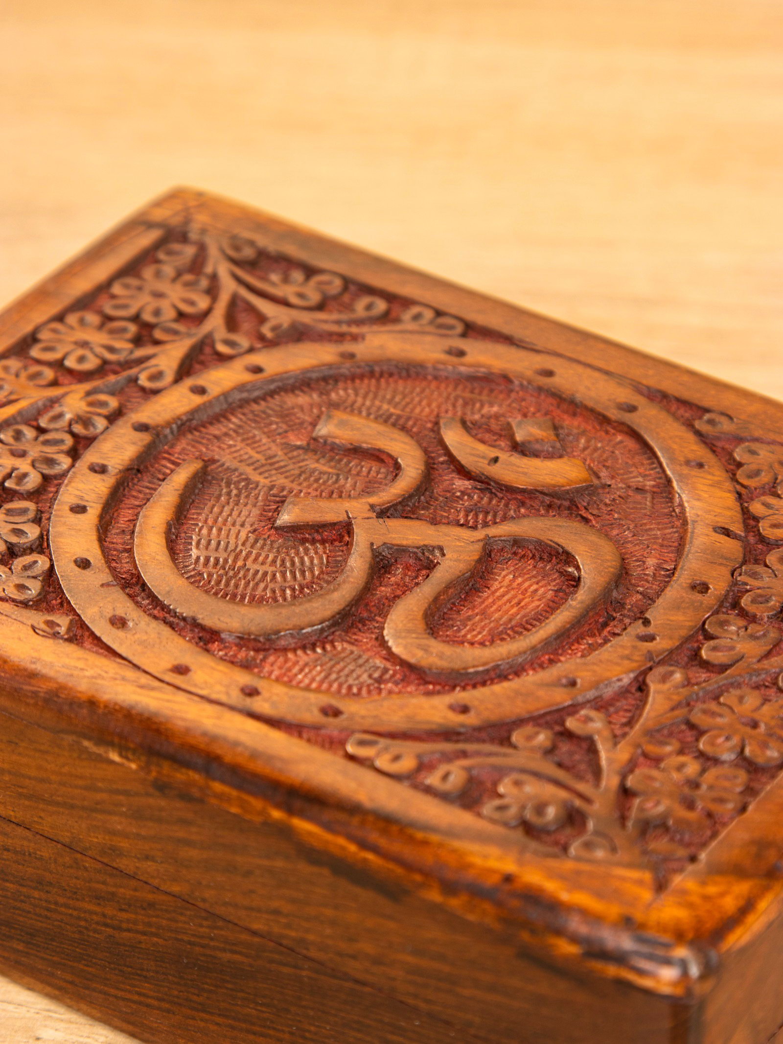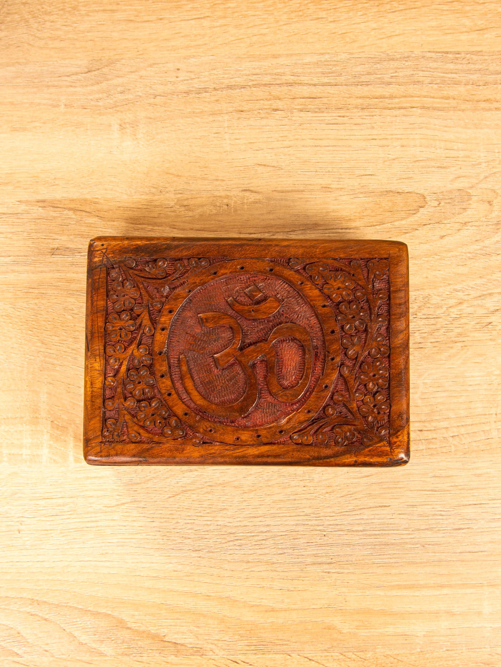 Шкатулка резная "Ом", 18x13x6 см, дерево шишам, 13x18x6 см., Индия