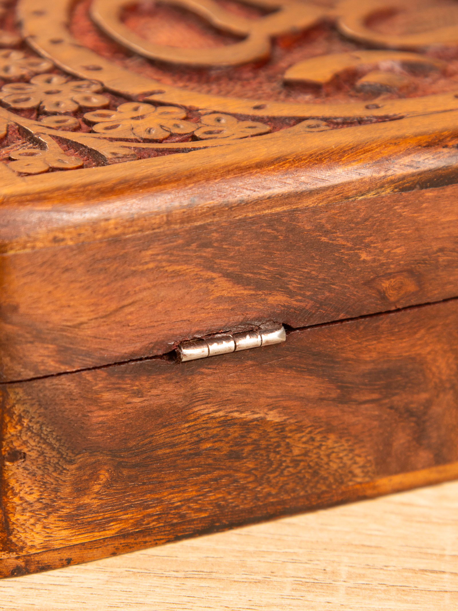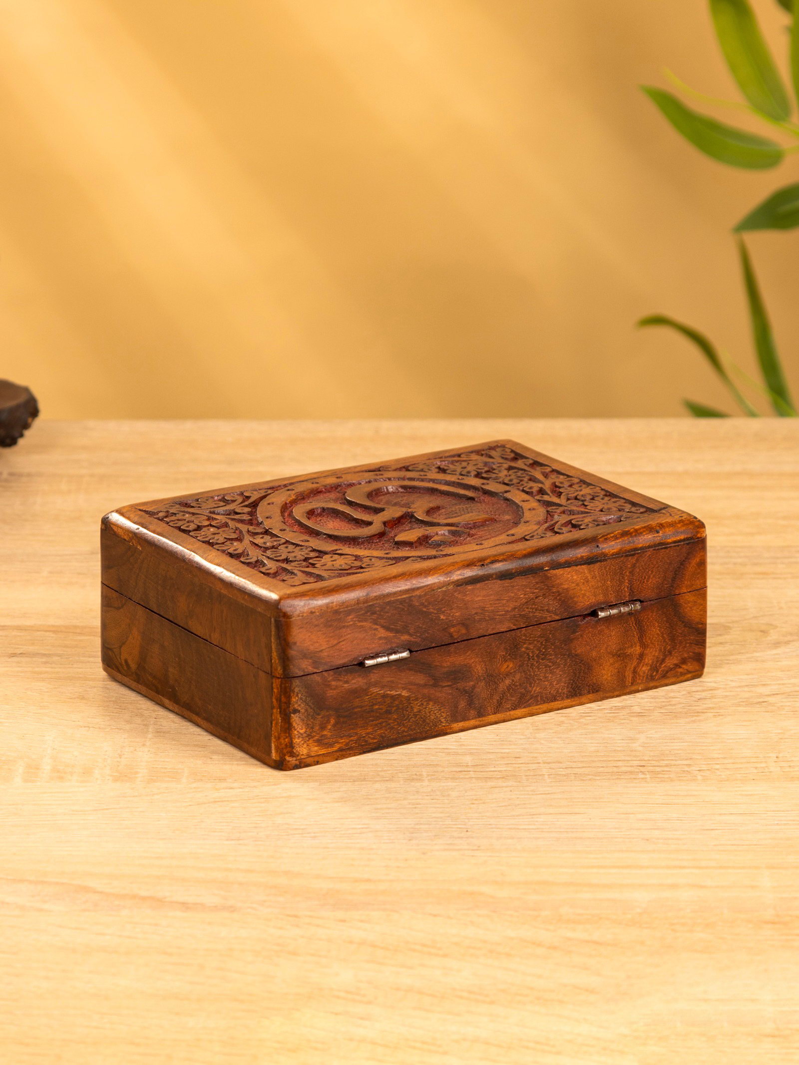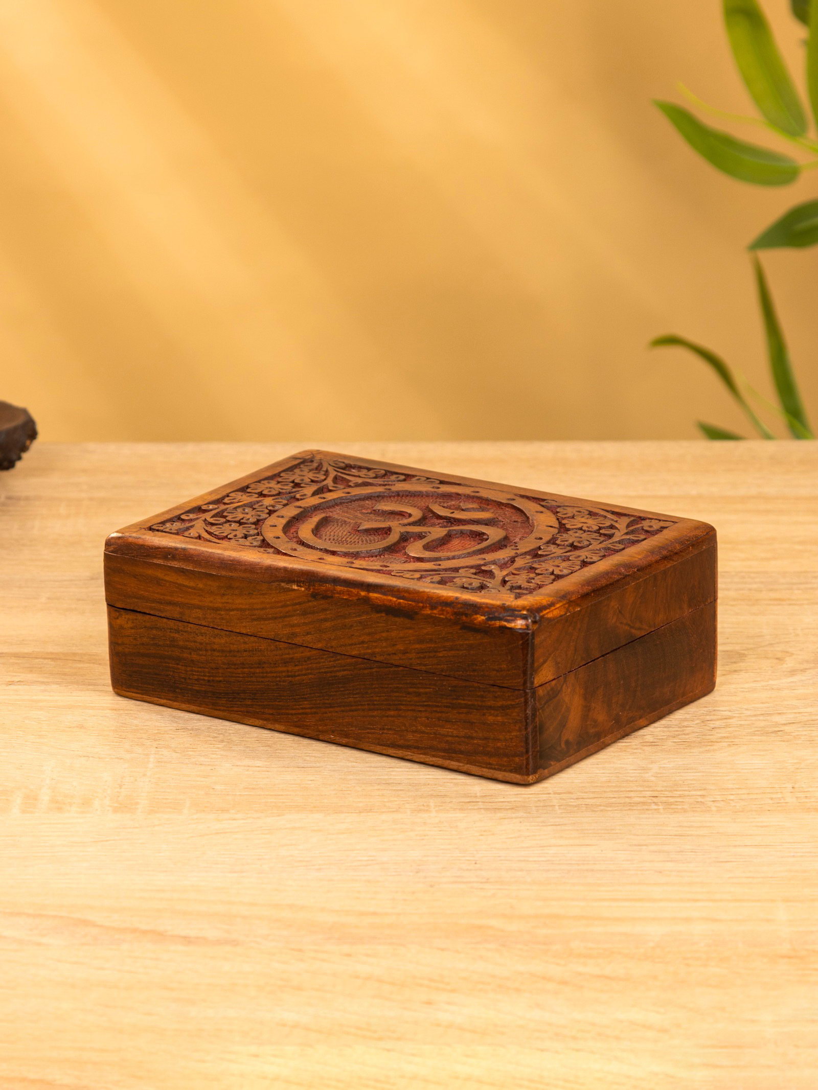 Шкатулка резная "Ом", 18x13x6 см, дерево шишам, 13x18x6 см., Индия