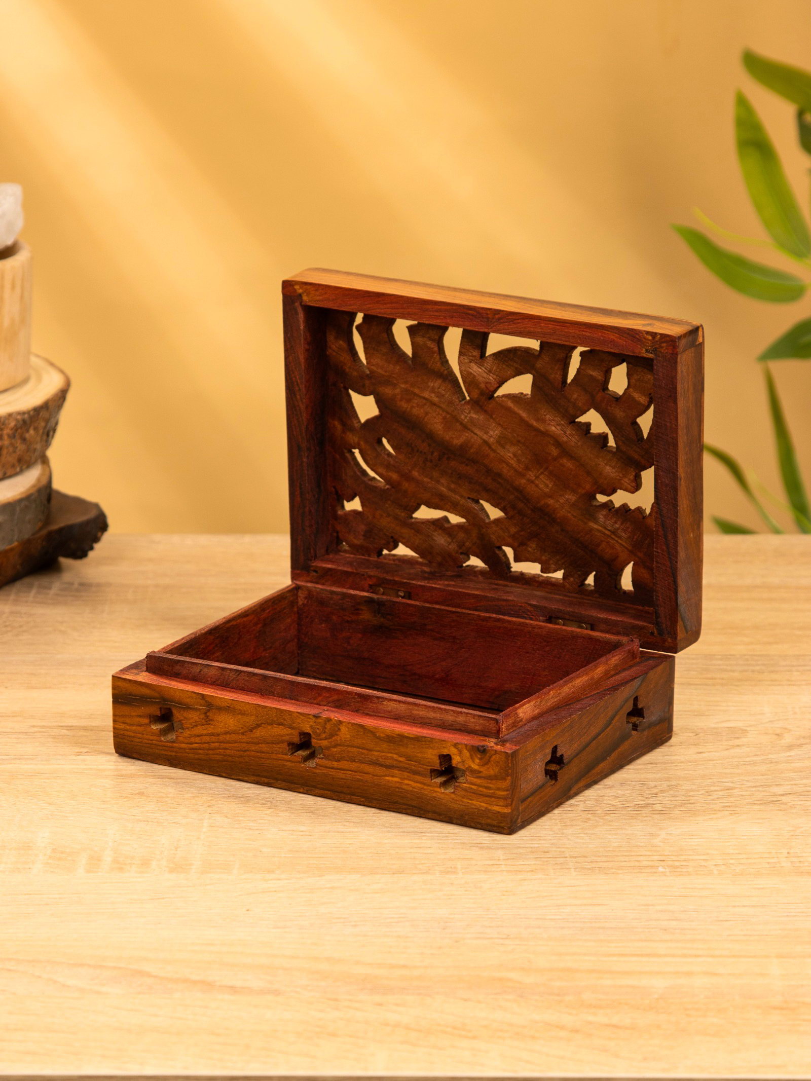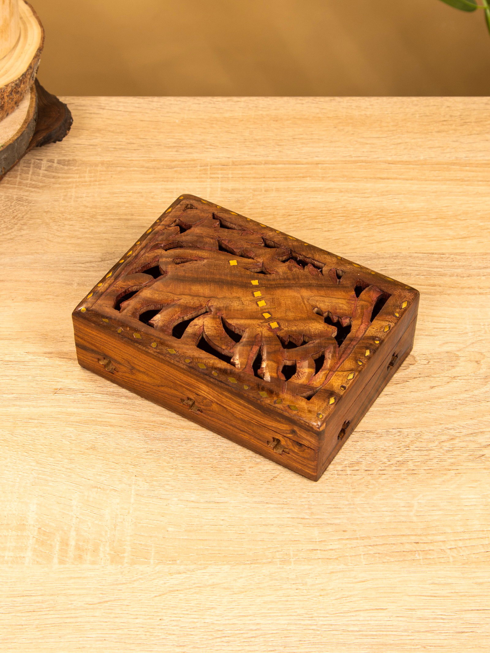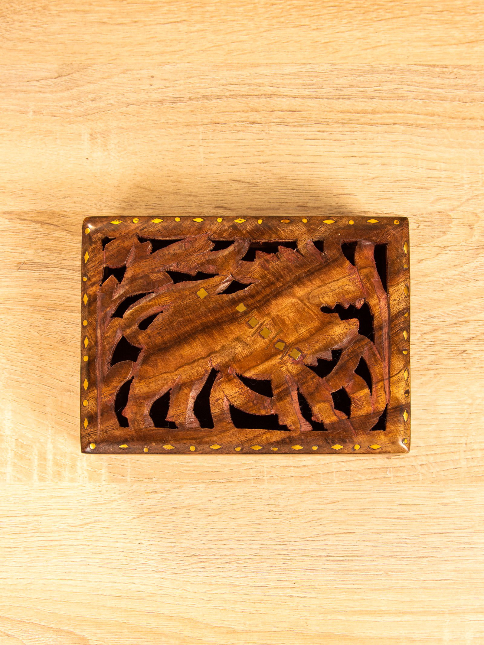 Шкатулка резная "Хранитель", 18x13x6 см, дерево шишам, 13x18x6 см., Индия