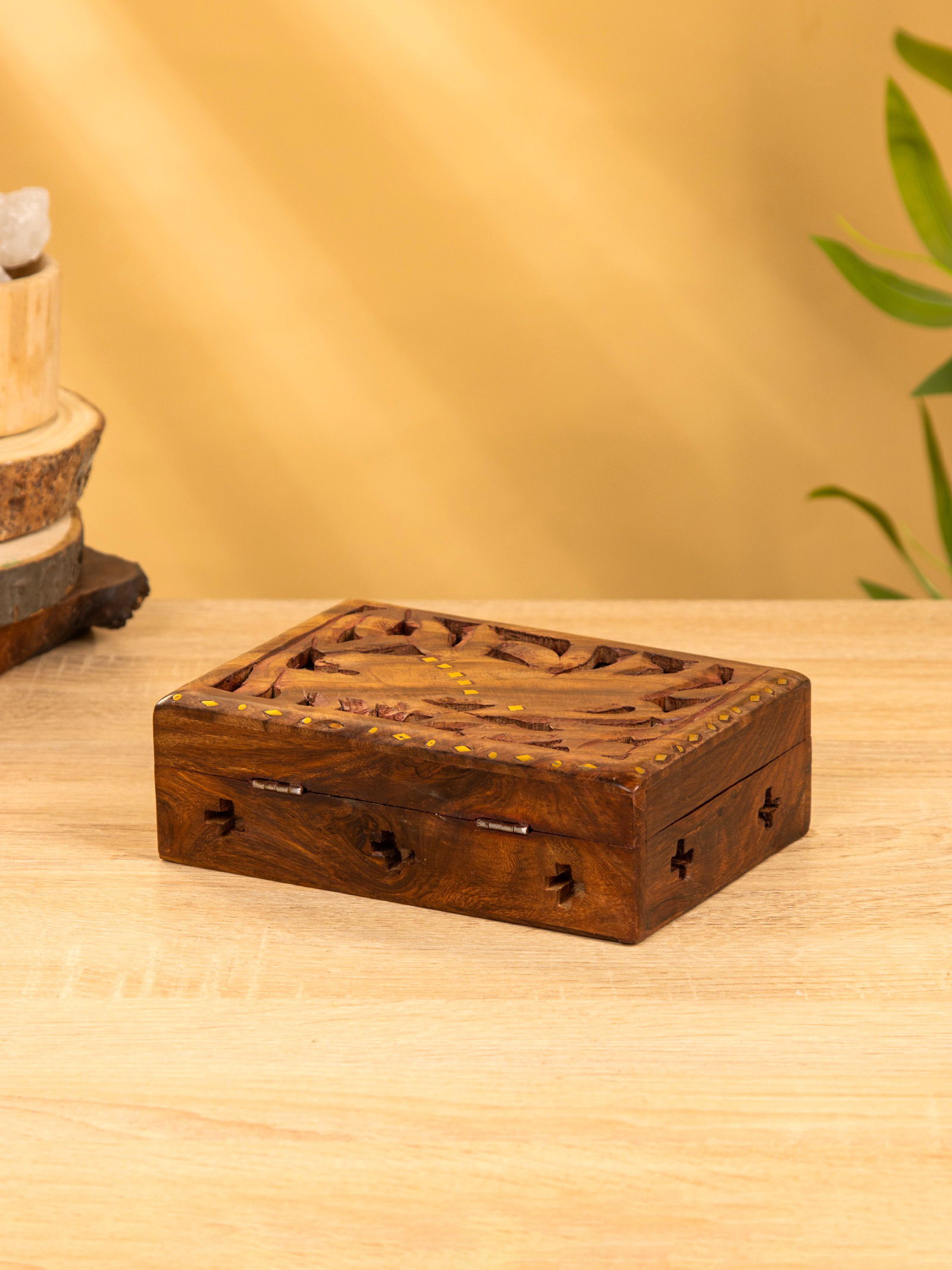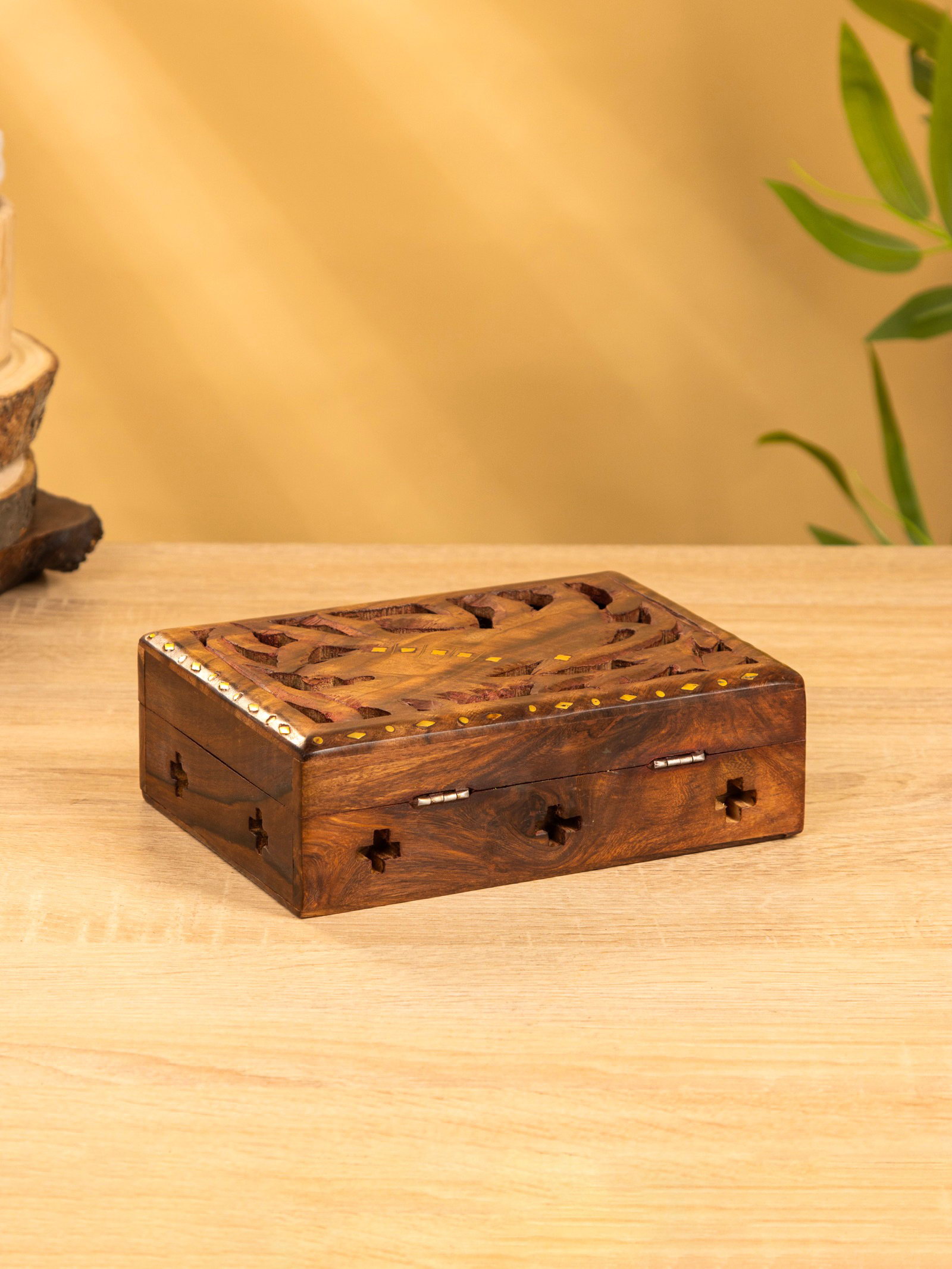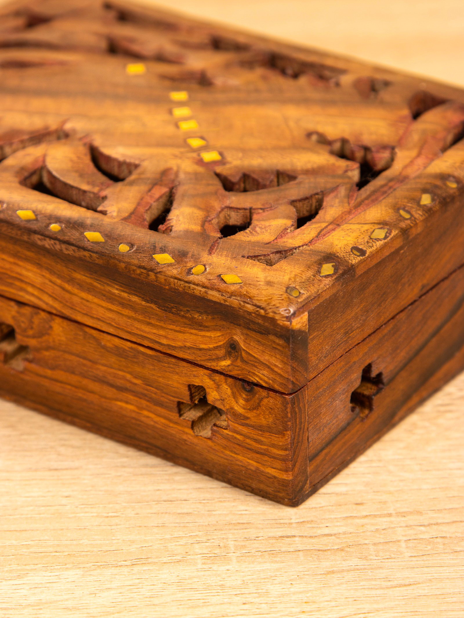 Шкатулка резная "Хранитель", 18x13x6 см, дерево шишам, 13x18x6 см., Индия