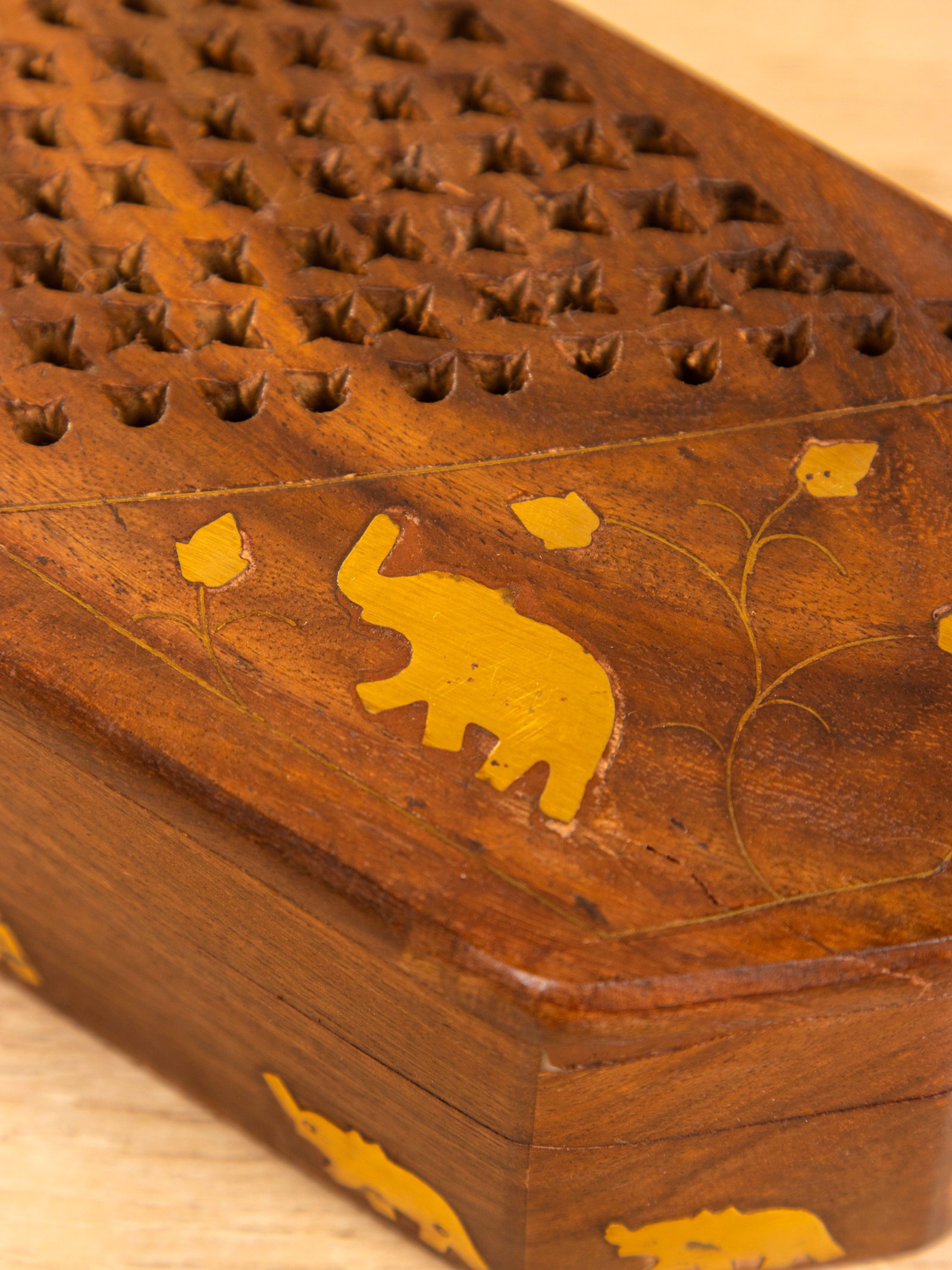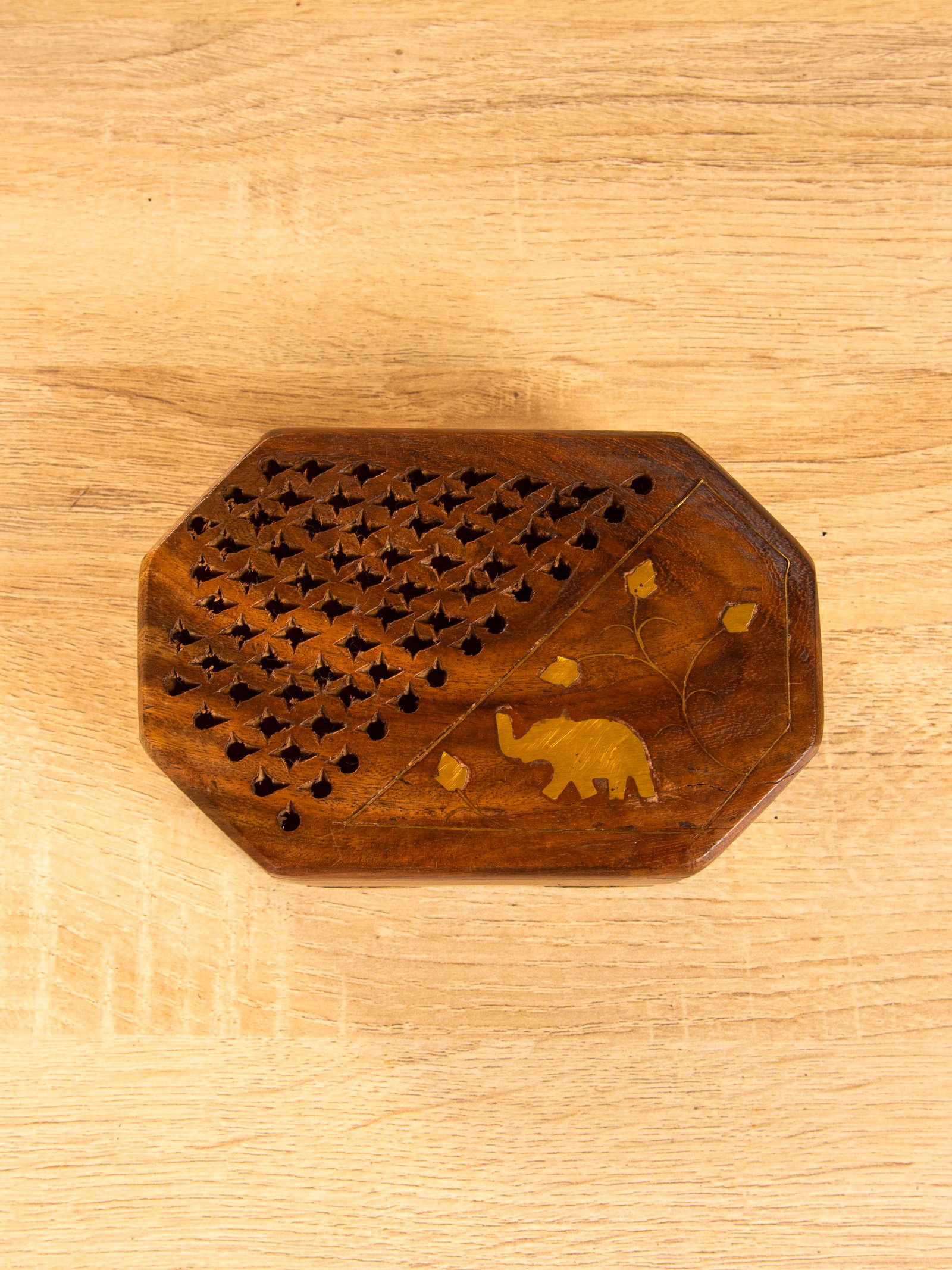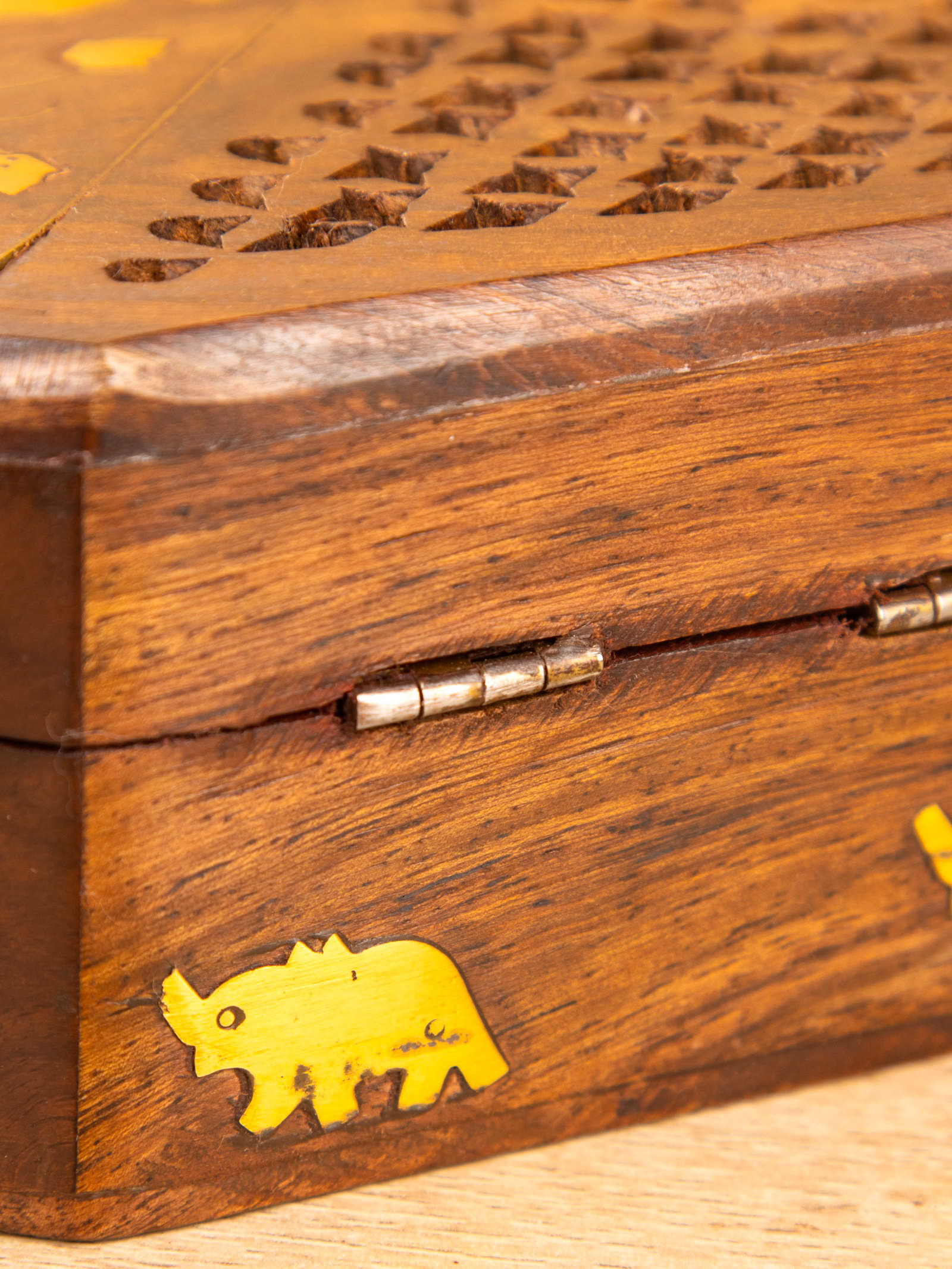 Шкатулка резная "Слоник в саду", 15x10x5 см, дерево шишам, 10x15x5 см., Индия