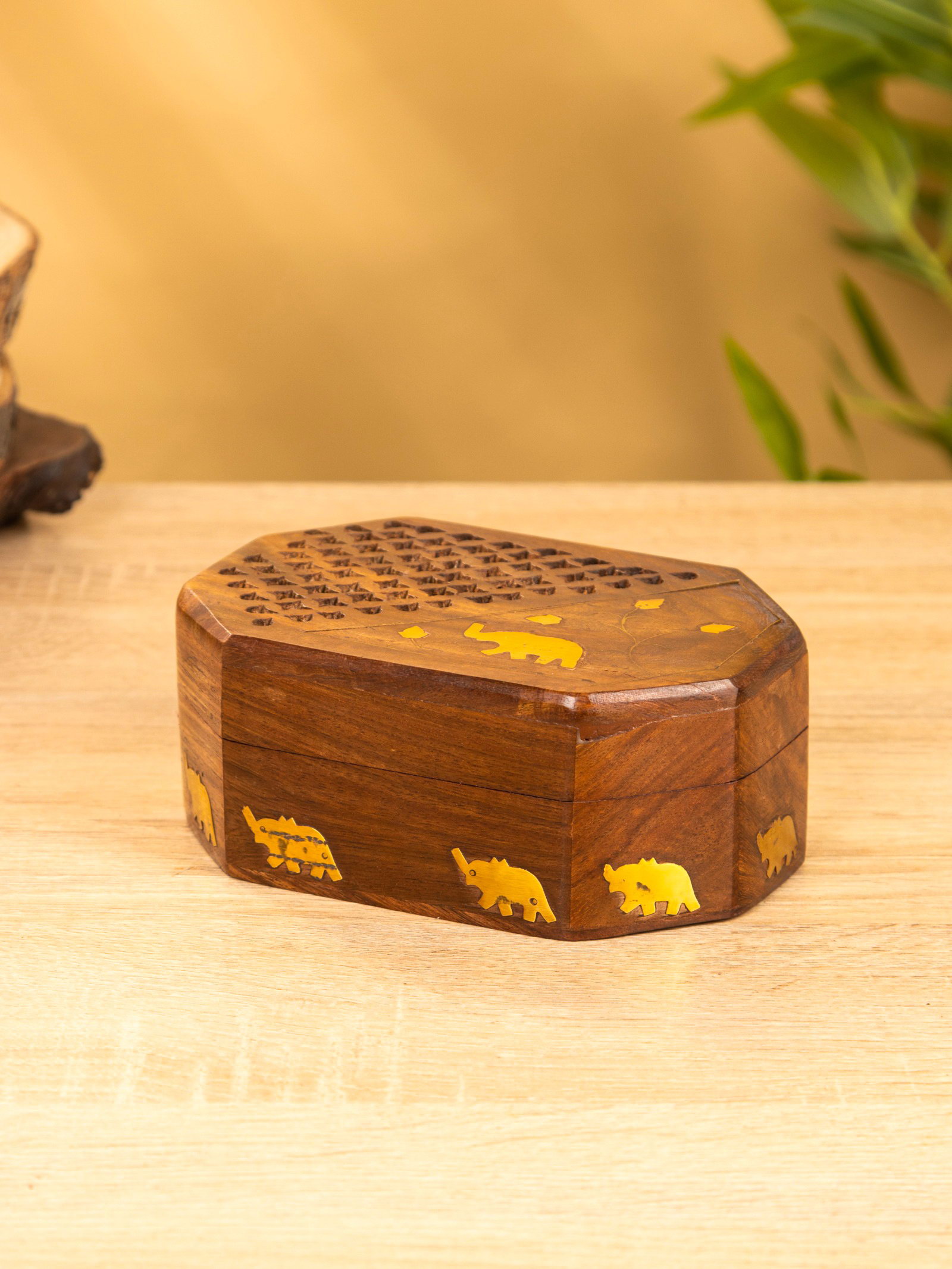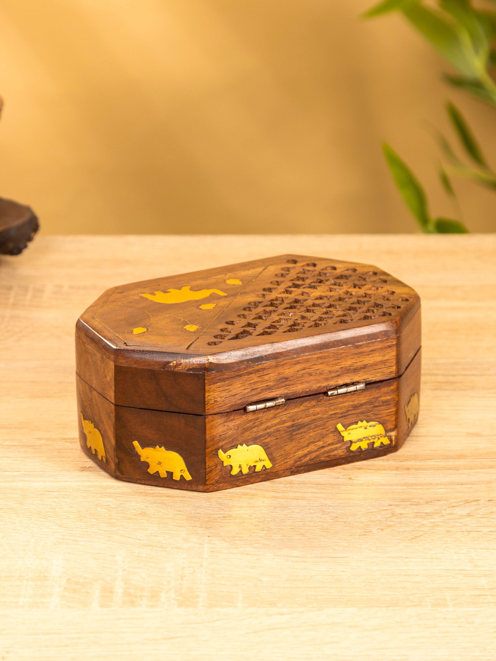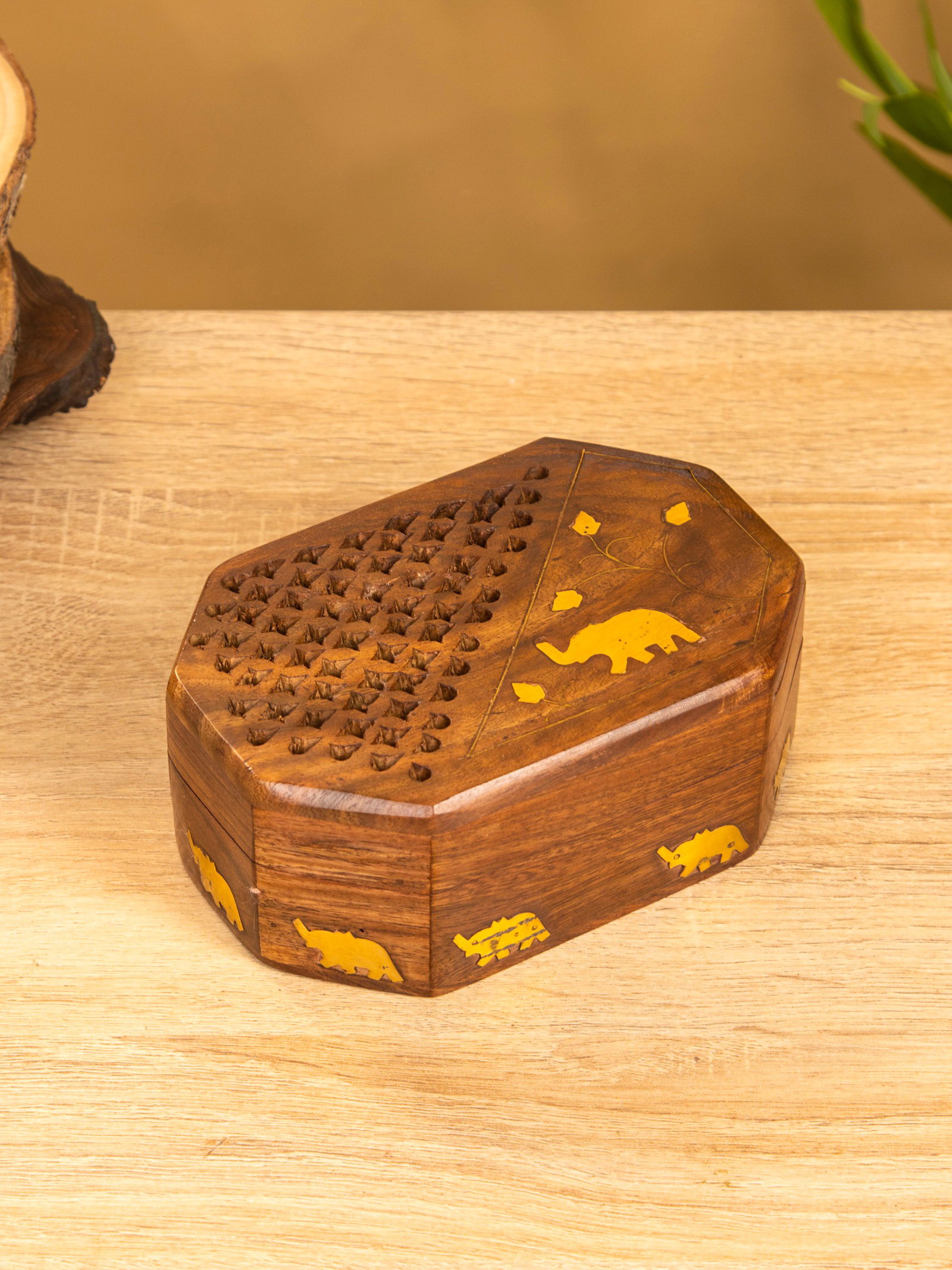 Шкатулка резная "Слоник в саду", 15x10x5 см, дерево шишам, 10x15x5 см., Индия