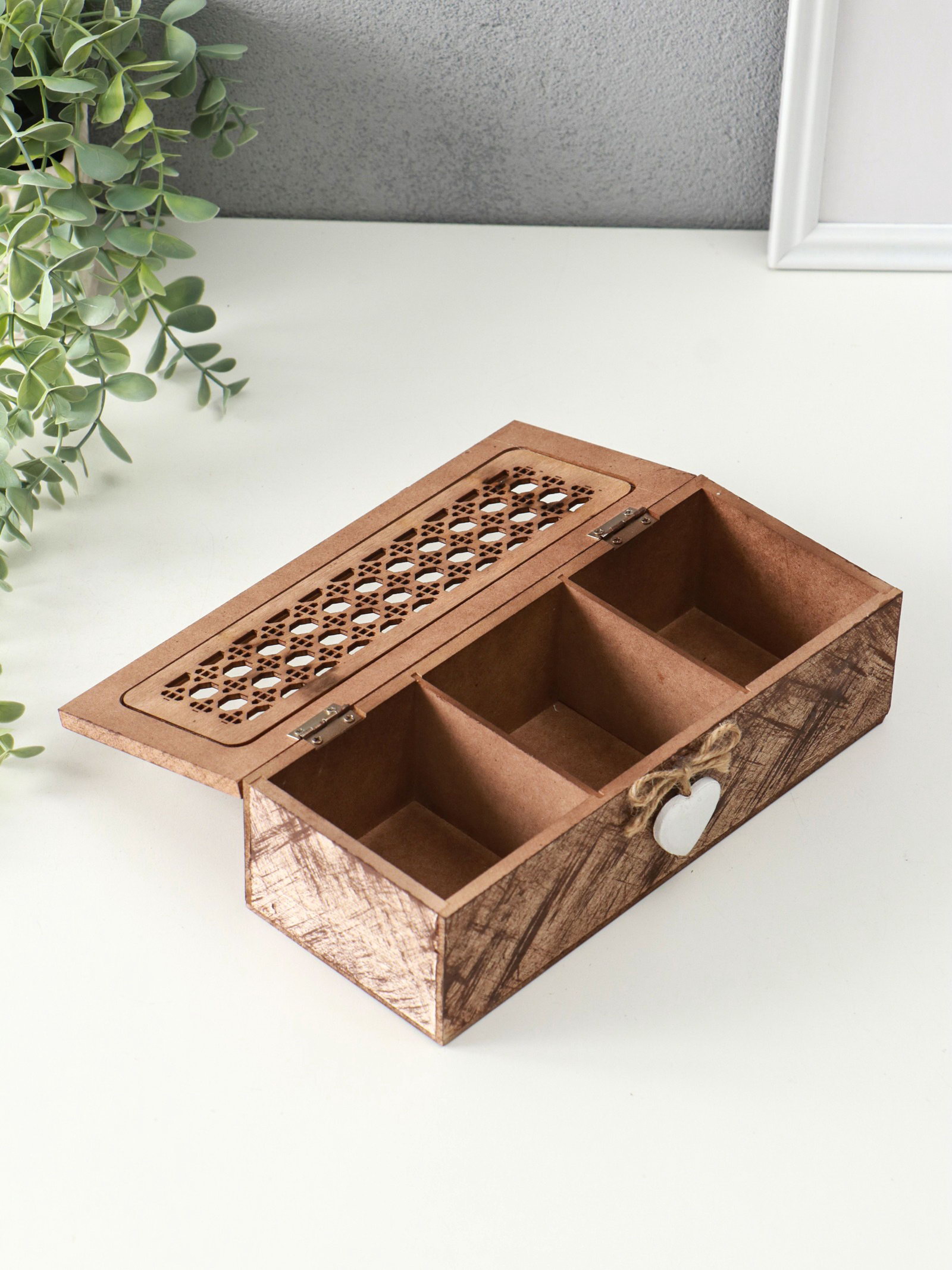 Шкатулка для украшений "Сердце там где ты", для чая, 3 деления, дерево, 9.7x24x7 см, 24x9.7x7 см., Китай