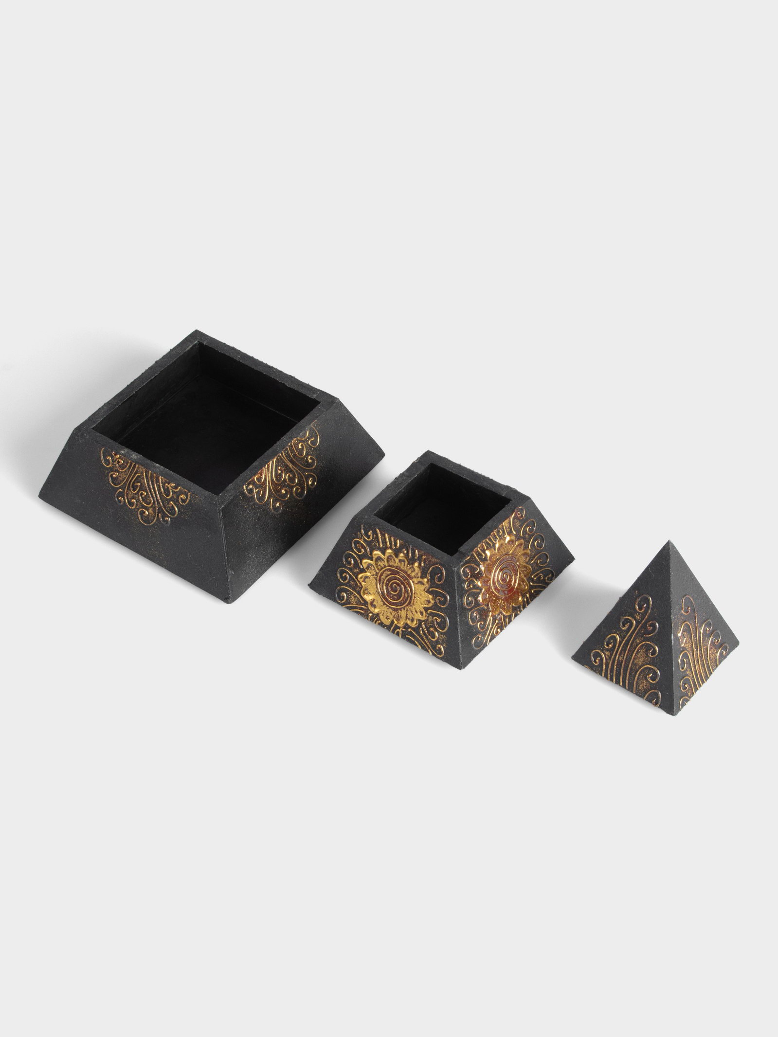 Шкатулка "Пирамидка", 15x15x20 см, МДФ, чёрная, 15x15x20 см., Индонезия