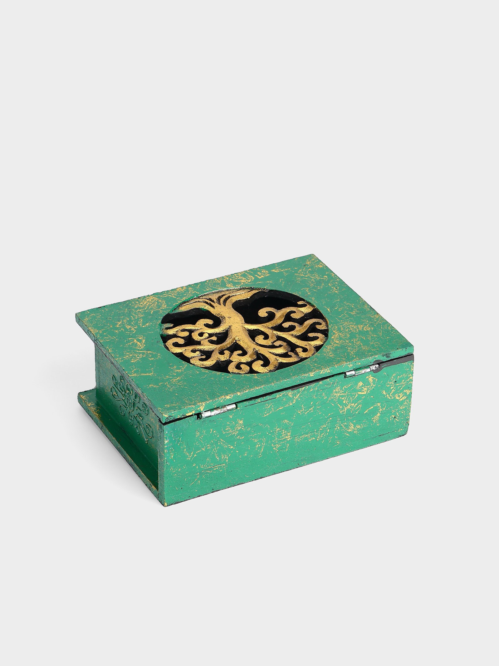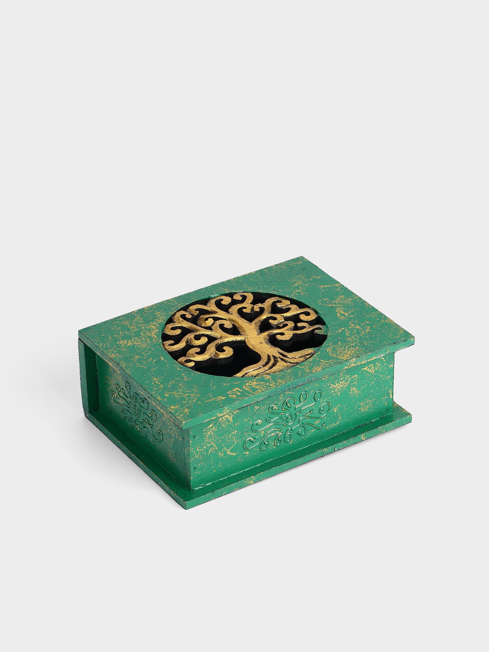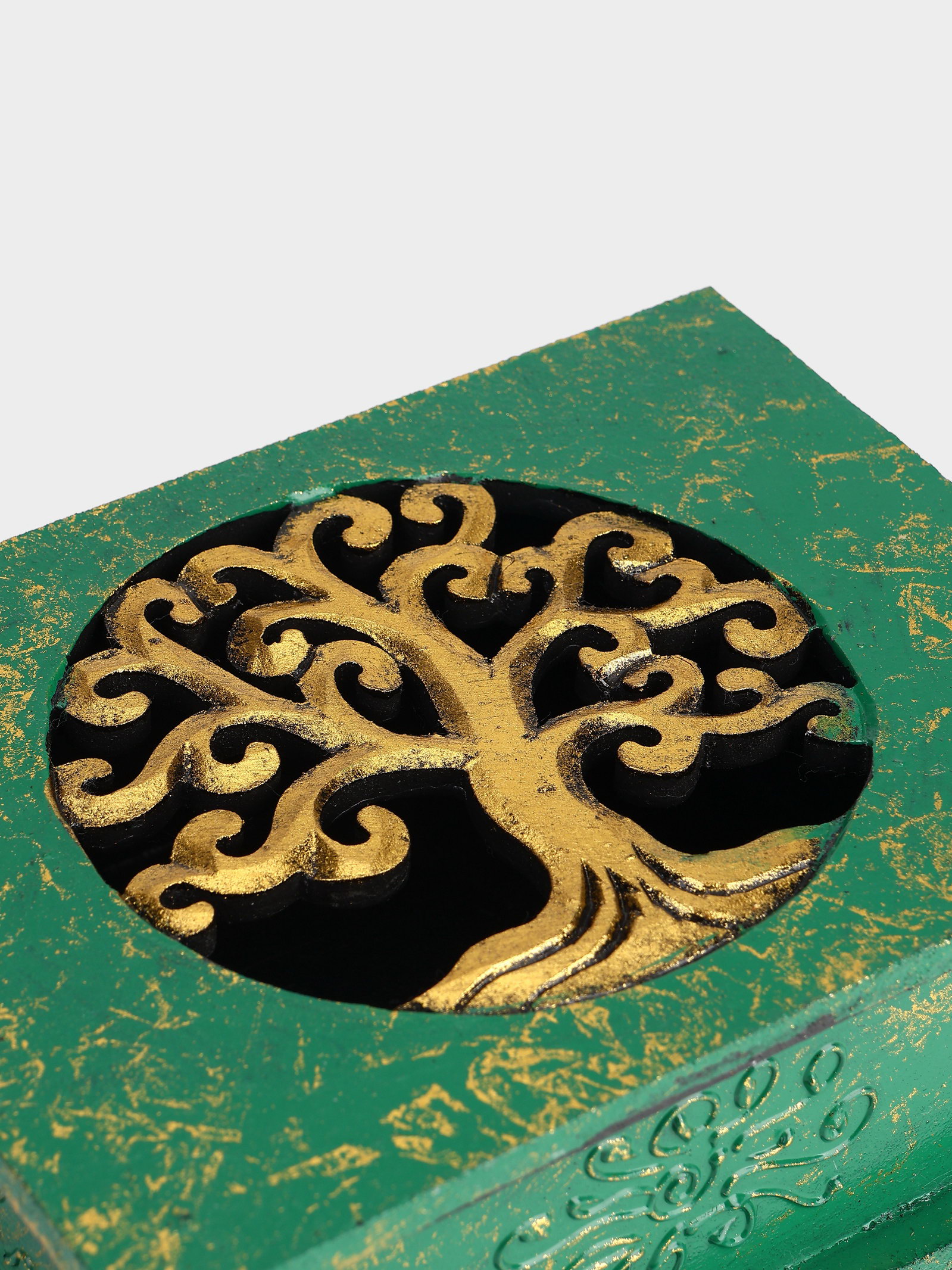 Шкатулка "Древо", 19x14x7 см, МДФ, зелёная, 15x19x7 см., Индонезия