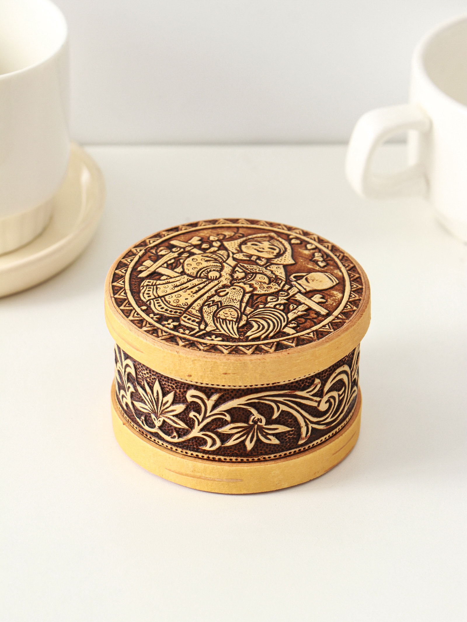 Шкатулка круглая "Машенька", 8.5х5см, береста, Россия