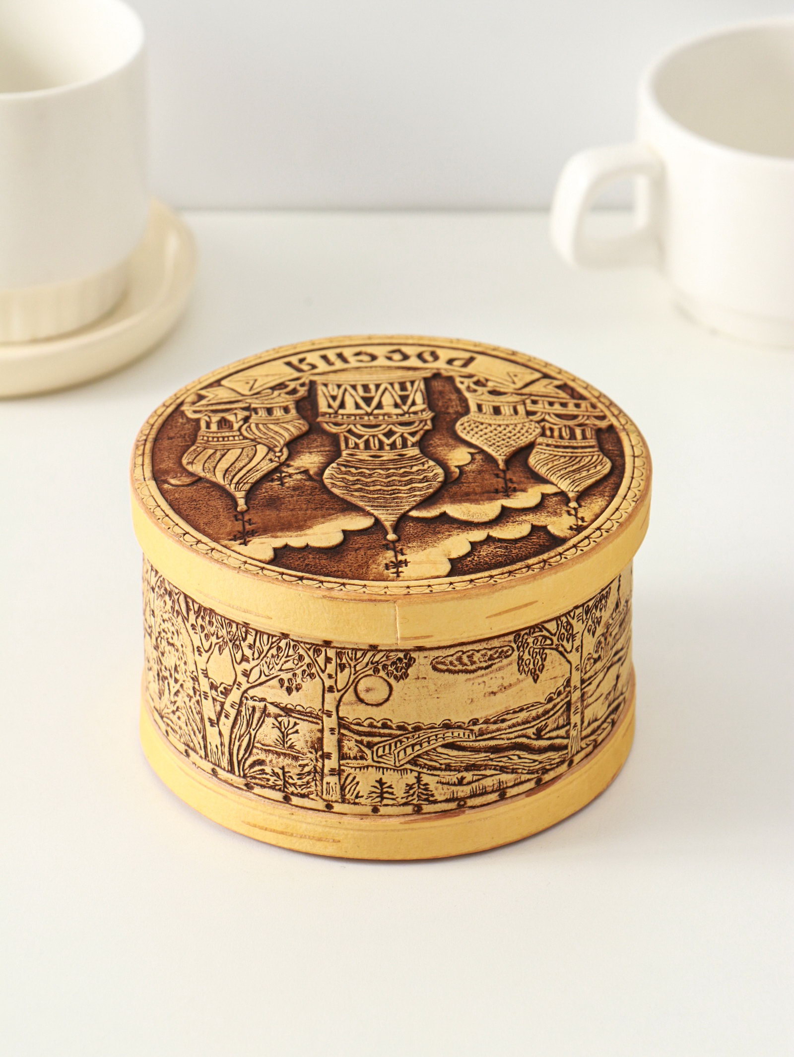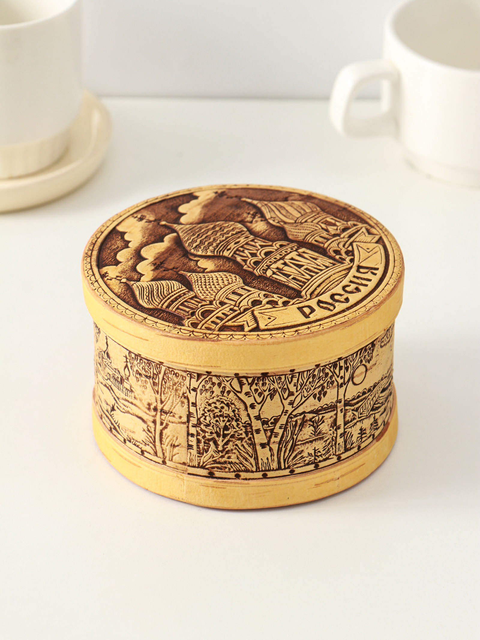 Шкатулка круглая "Россия", 12х7см, береста, Россия