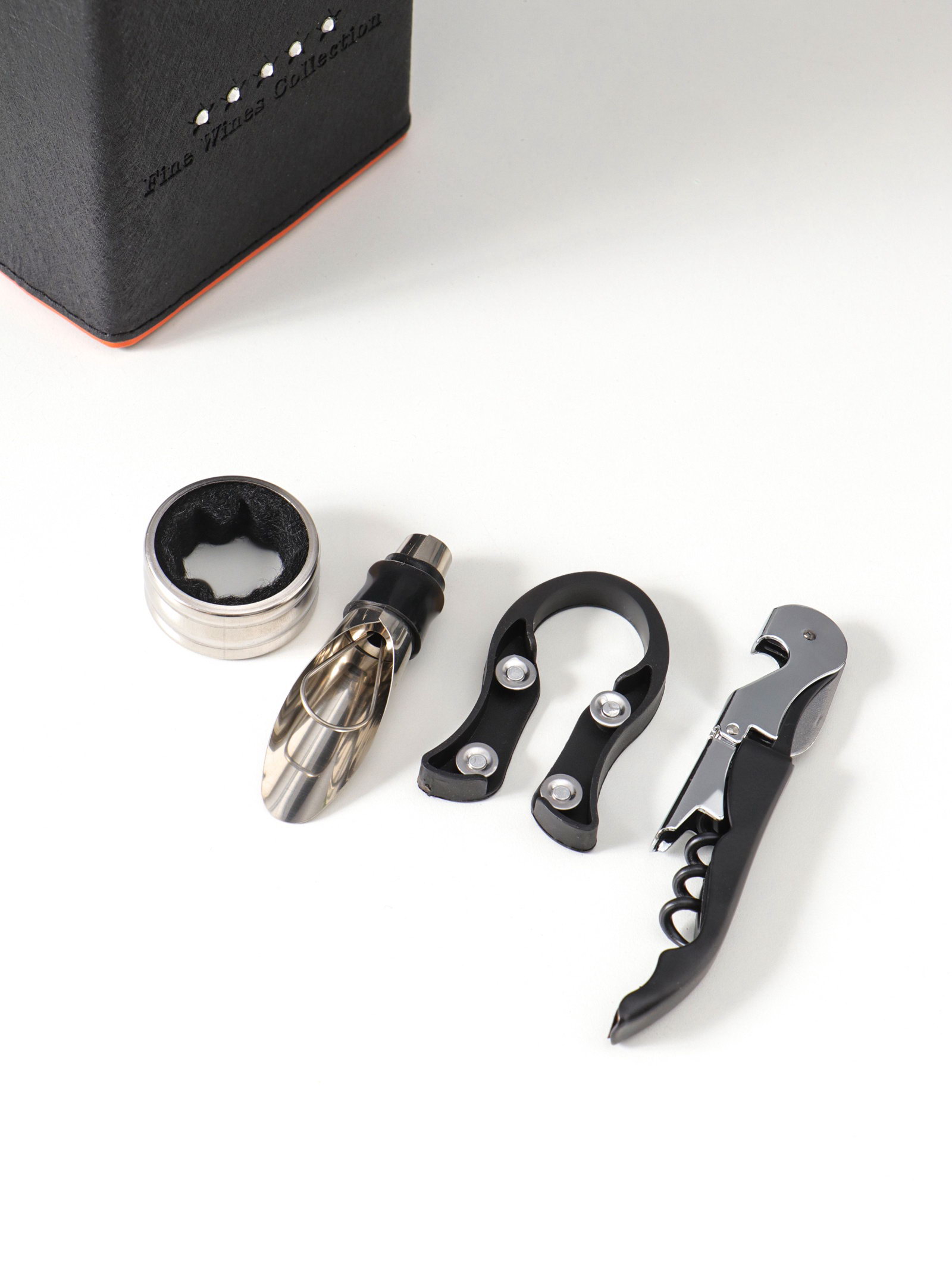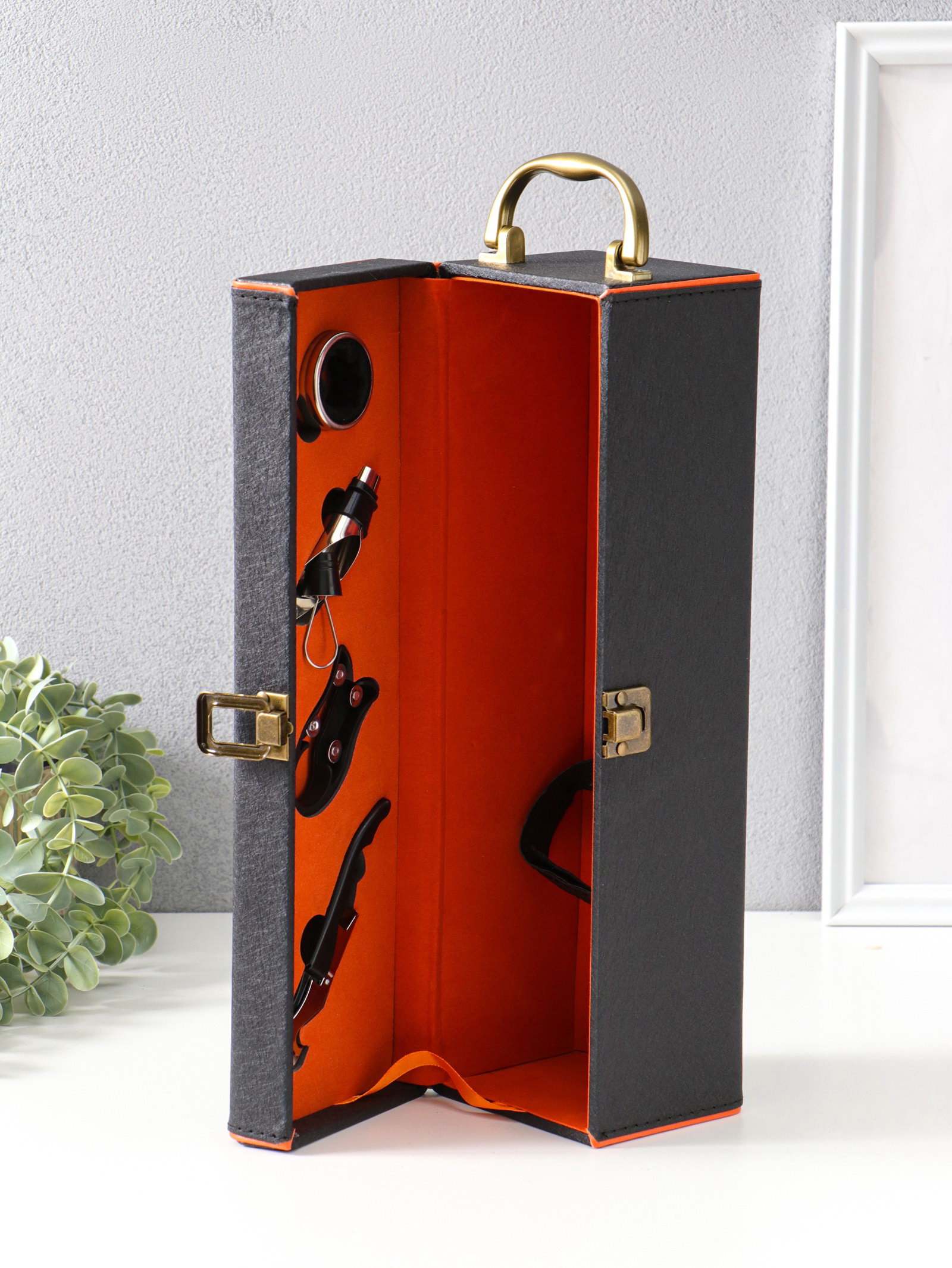 Готовое решение для подарка Набор избавляет от необходимости искать упаковку и аксессуары отдельно. Всё упаковано в стильную шкатулку, которая после вручения становится практичным органайзером для бара или сервировки. Чёрный цвет с контрастной оранжевой деталью делает презент запоминающимся, подчёркивая внимание к деталям и хороший вкус дарителя. | ||