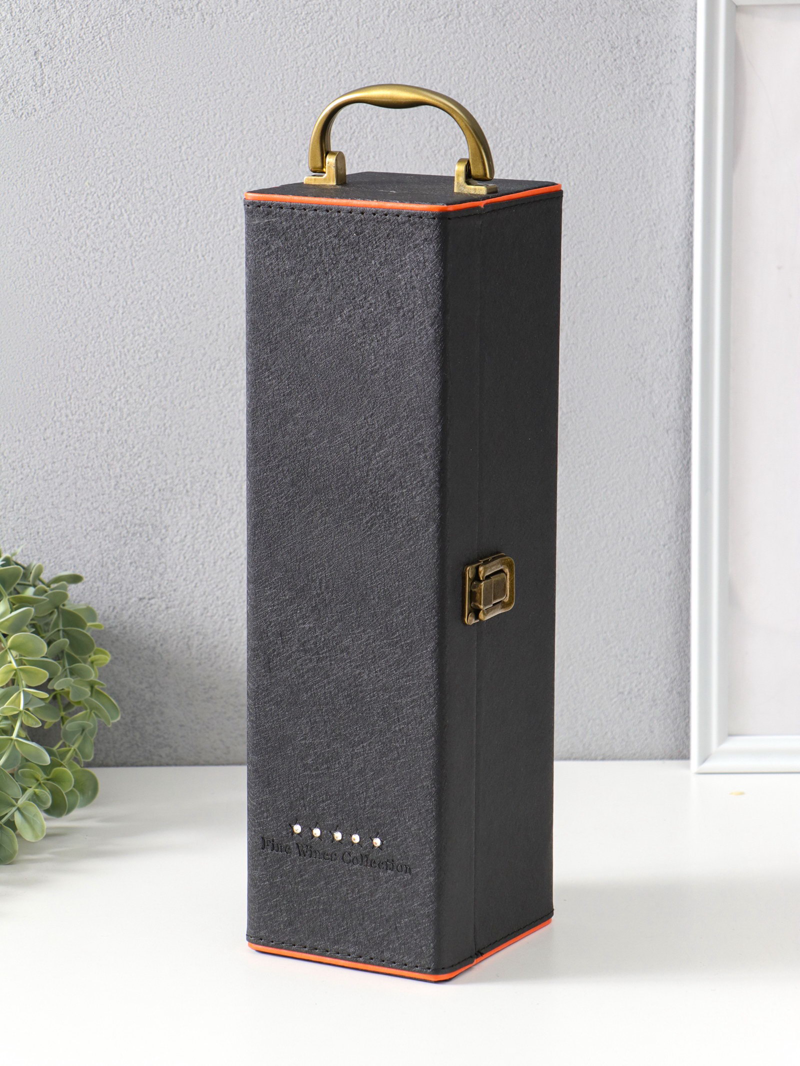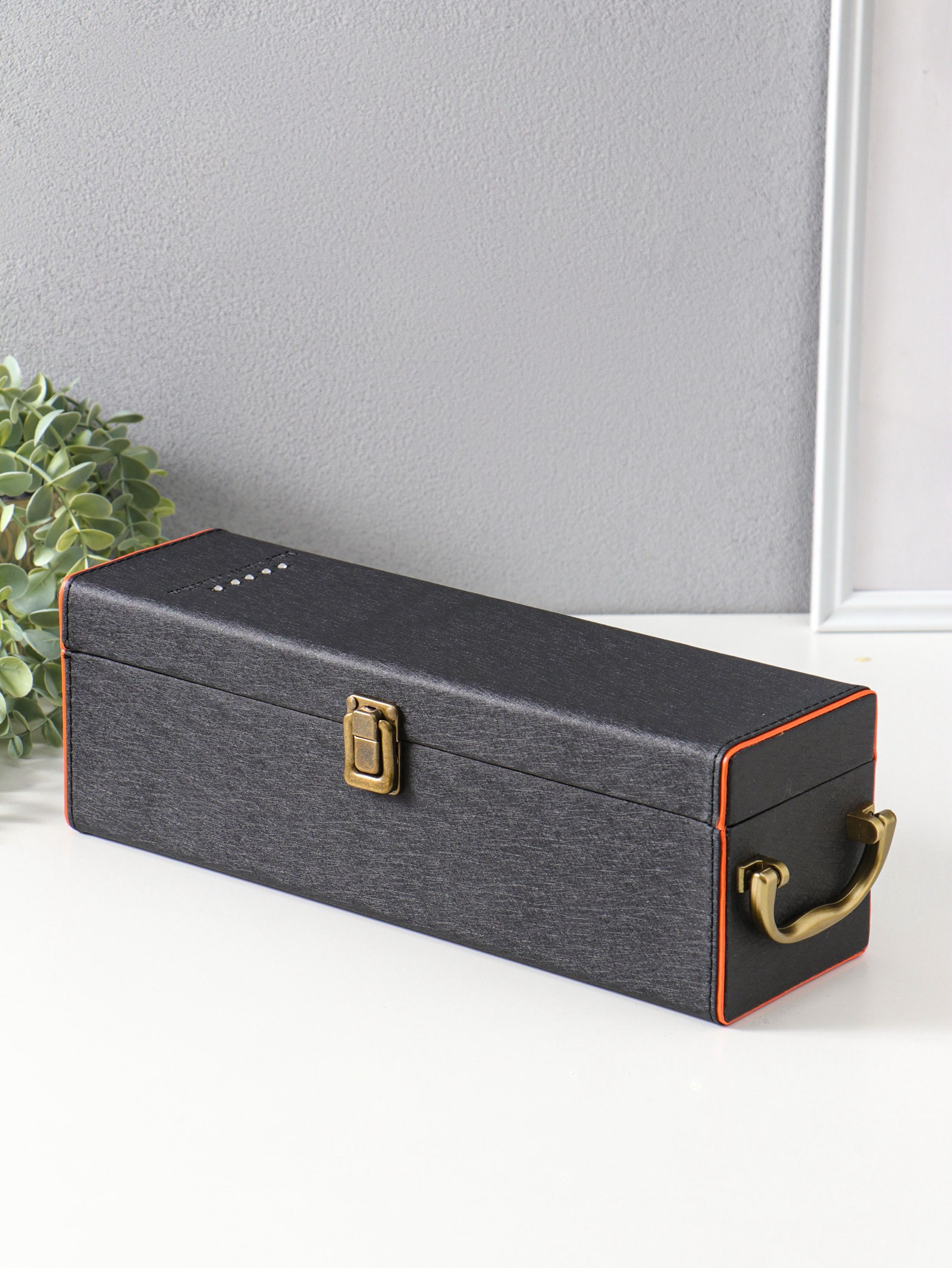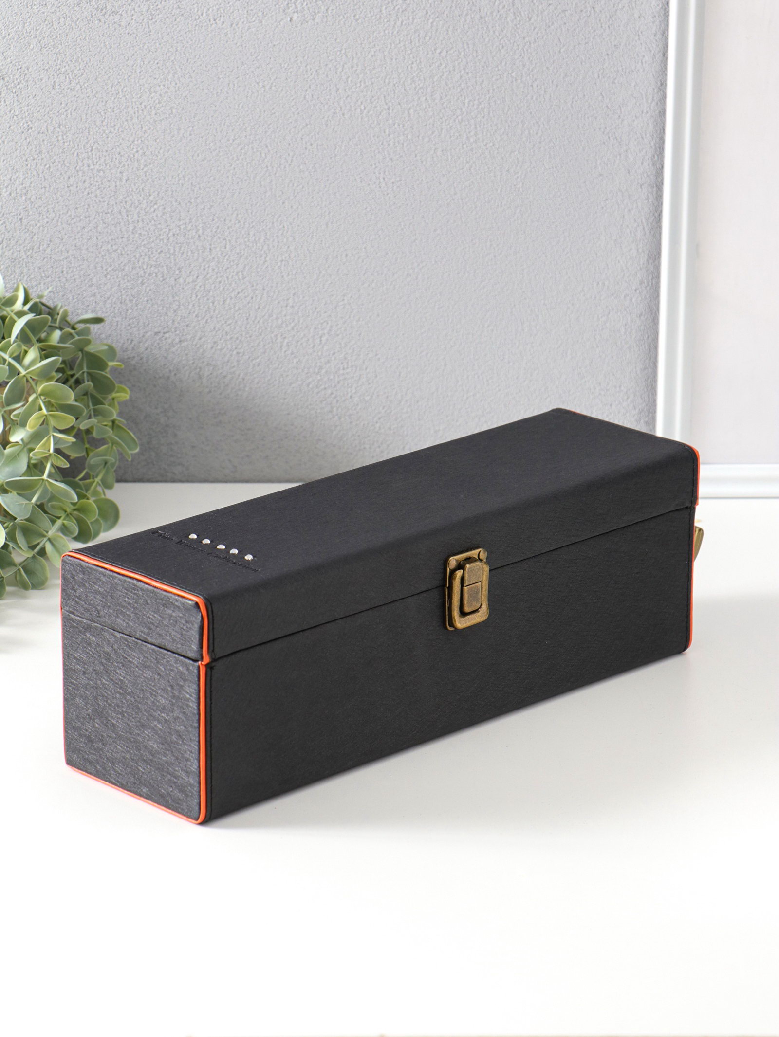 Шкатулка подарочная под бутылку "Чёрная с оранжевой вставкой", и набор 4 предмета, 35x10x11.5 см, 10x35x11.5 см., Китай