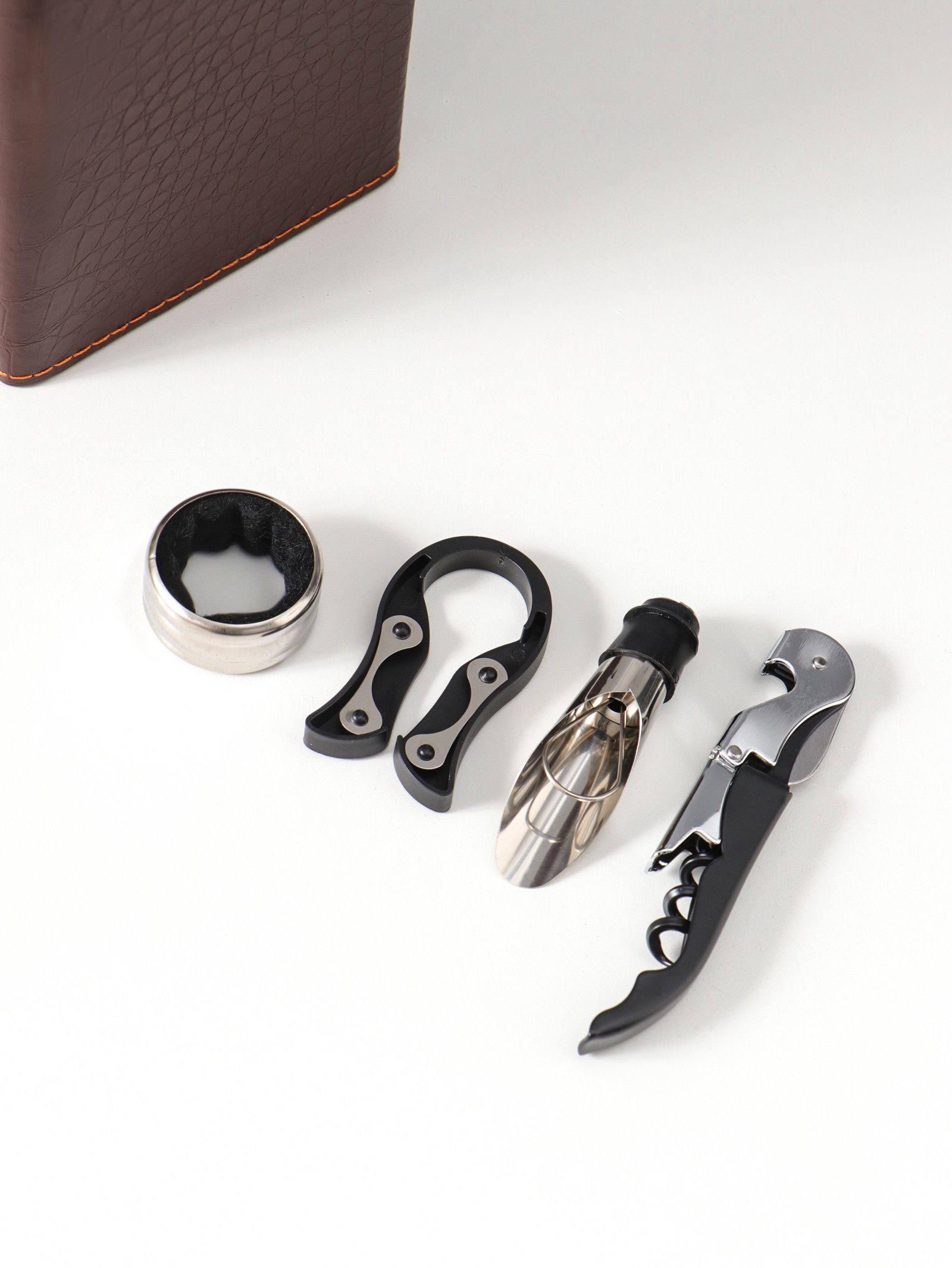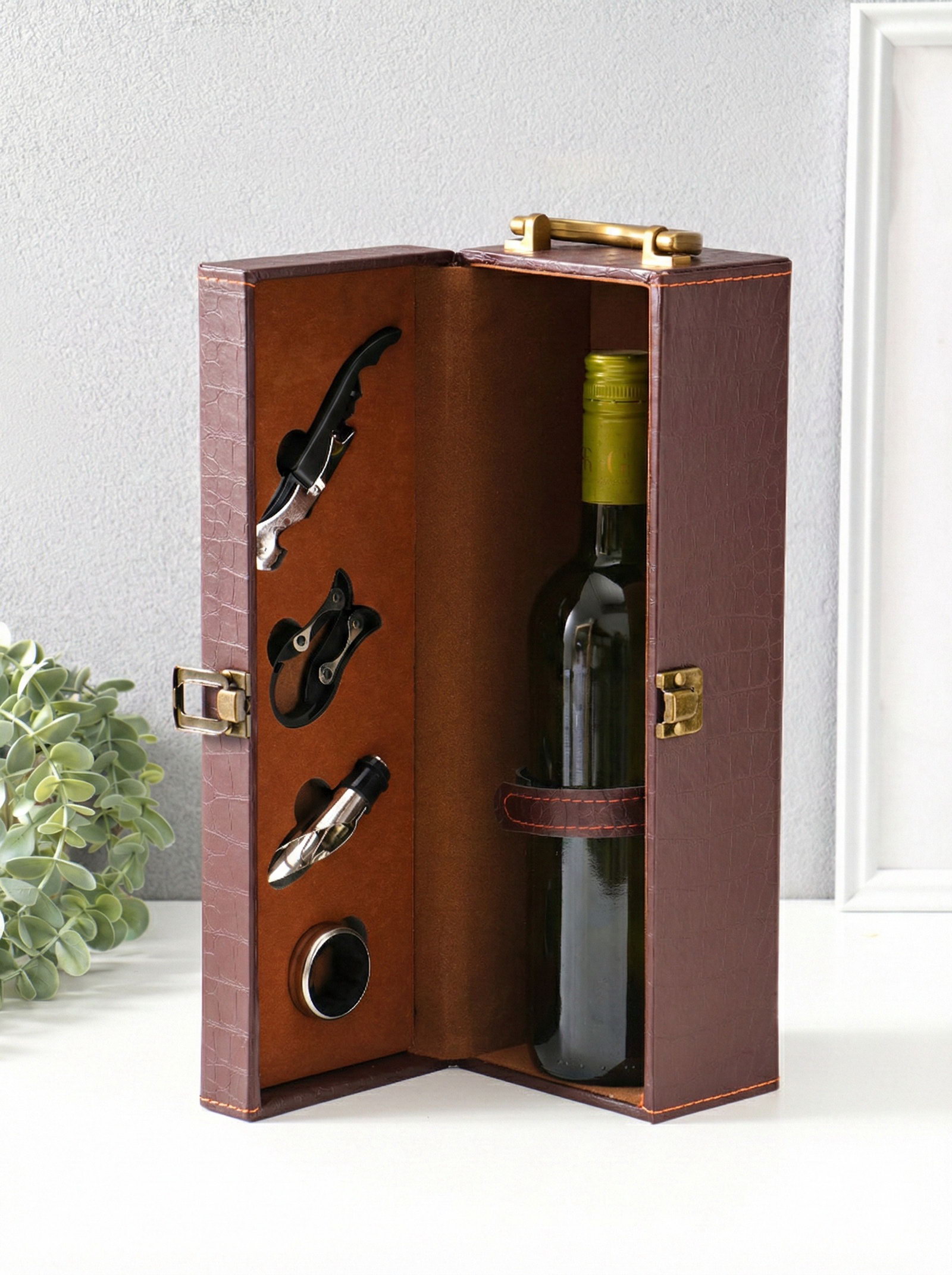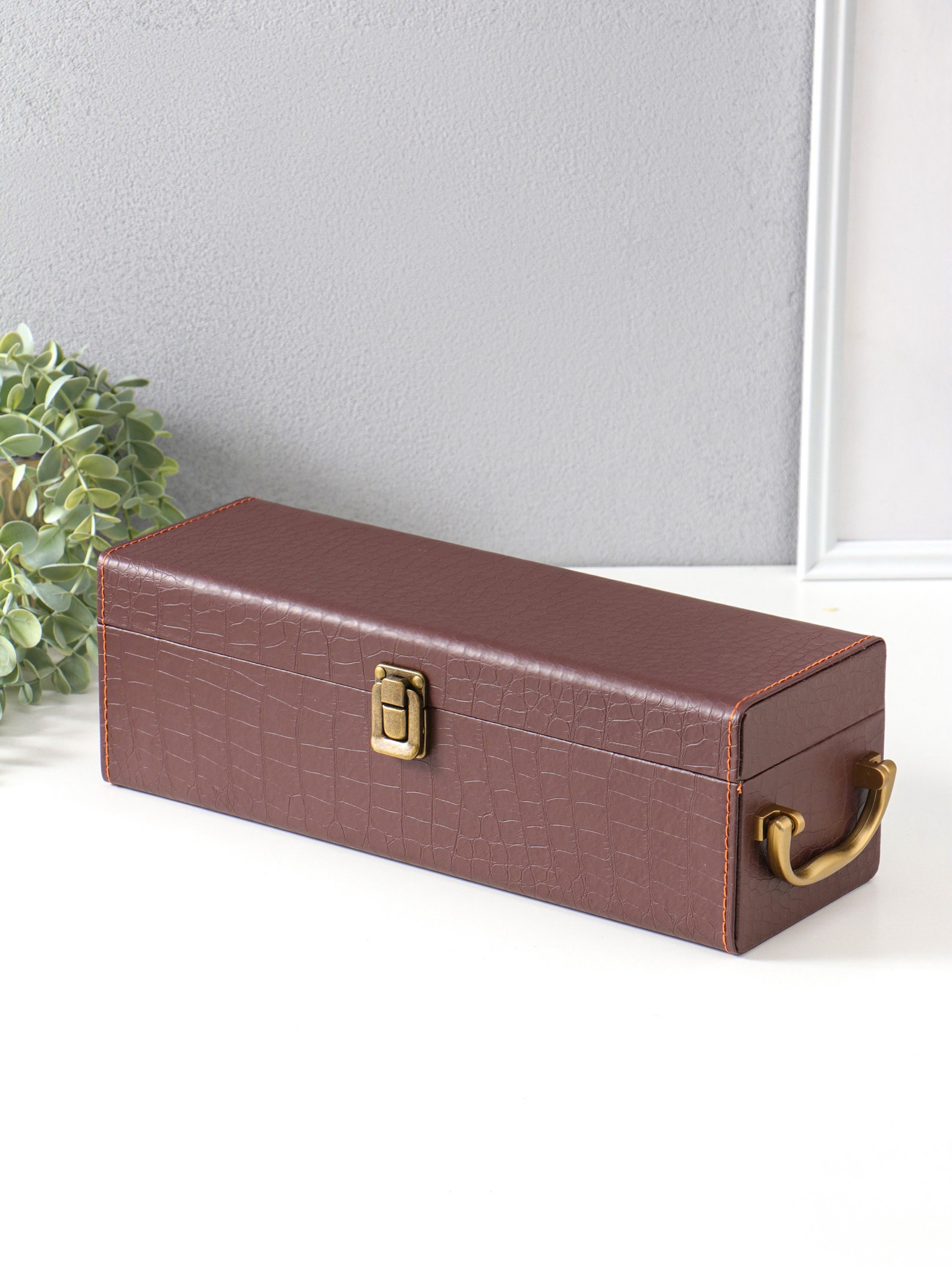 Шкатулка подарочная под бутылку "Кожа питона" и набор 4 предмета, коричневая, 35x11x12 см, 11x35x12 см., Китай