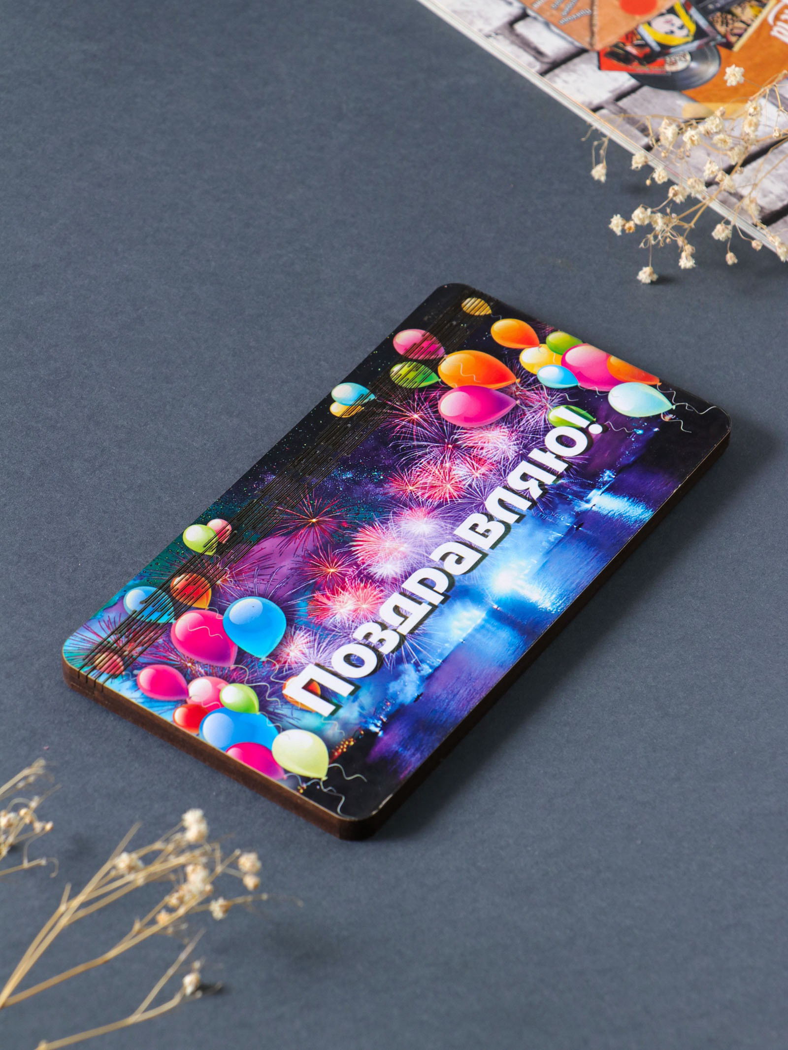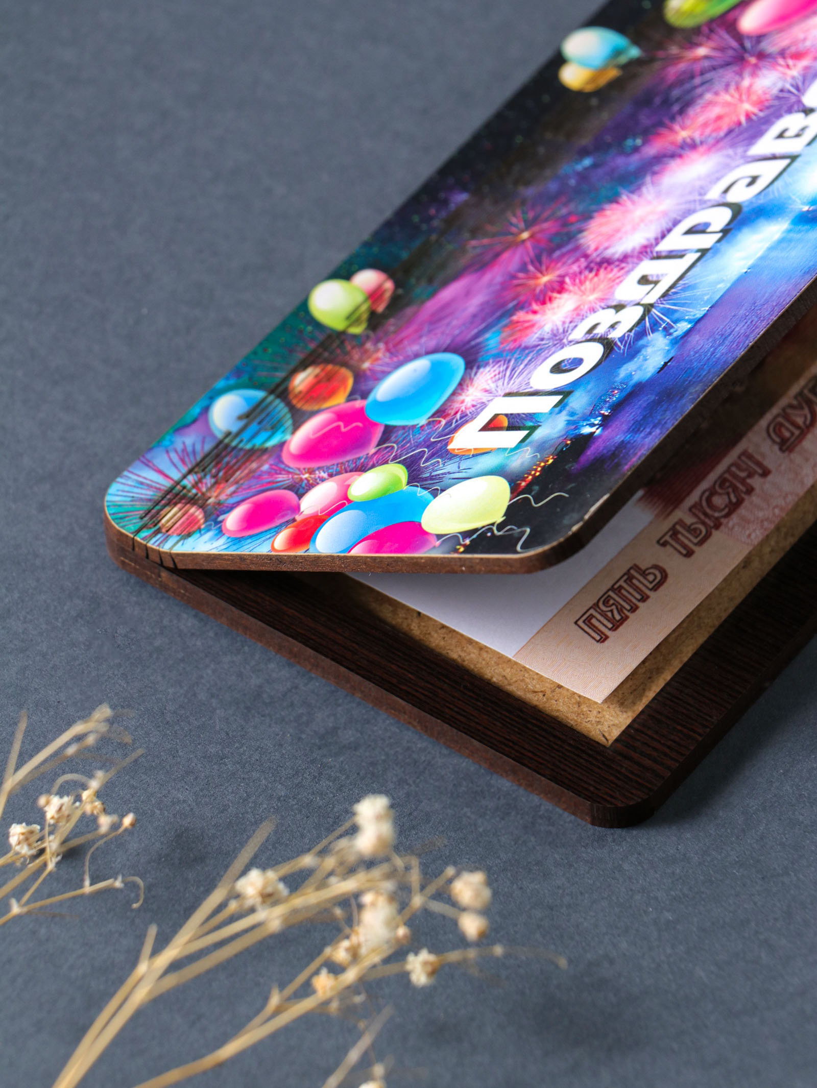 Купюрница подарочная, открытка "Поздравляю: шары", шкатулка для денег, карточек, сертификатов, 19x9.5x0.7 см, Россия