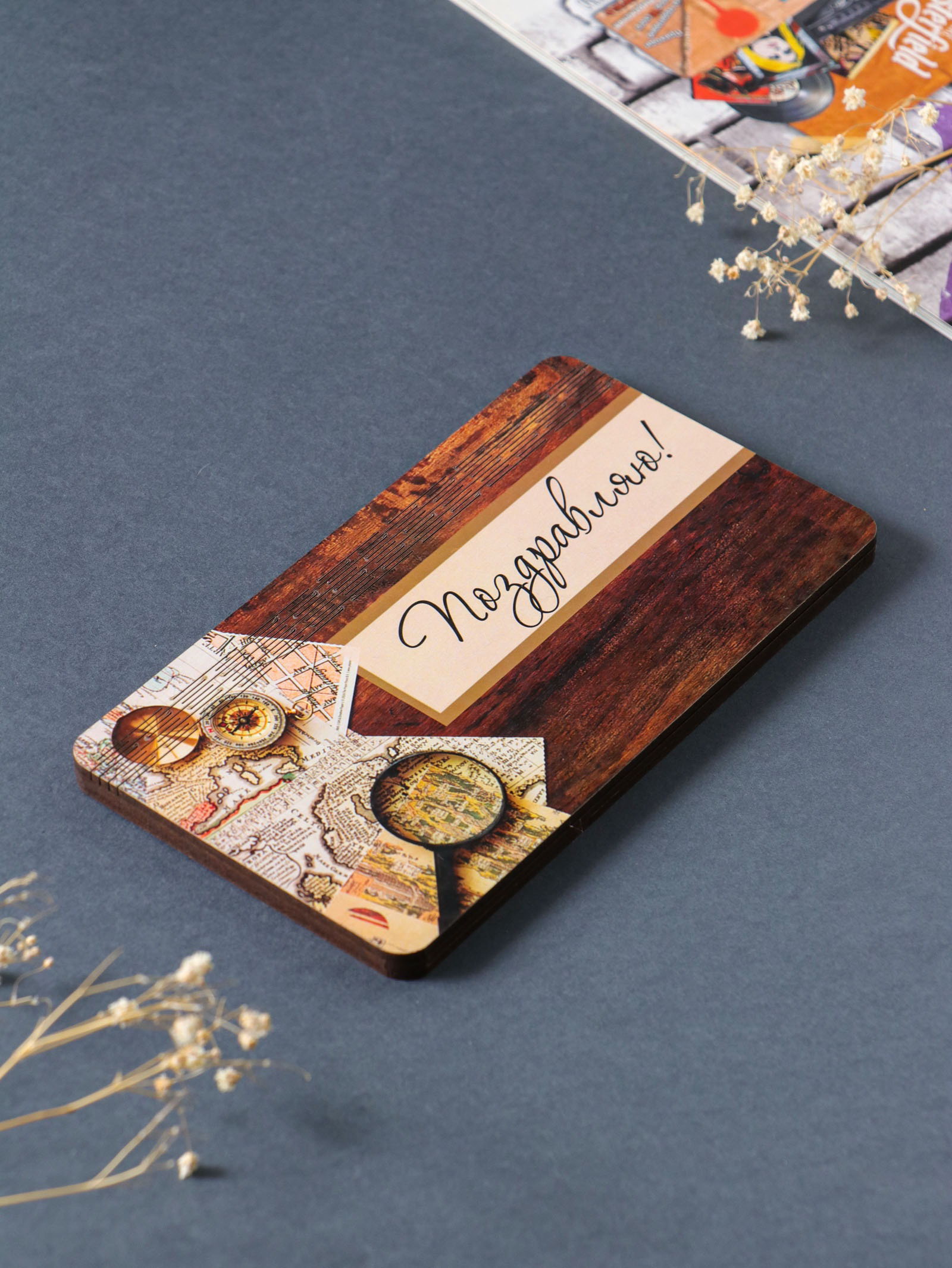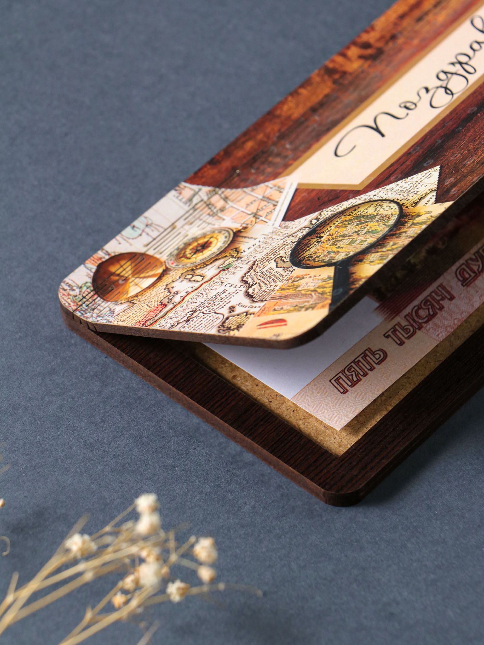 Купюрница подарочная, открытка "Поздравляю: карта", шкатулка для денег, карточек, сертификатов, 19x9.5x0.7 см, Россия