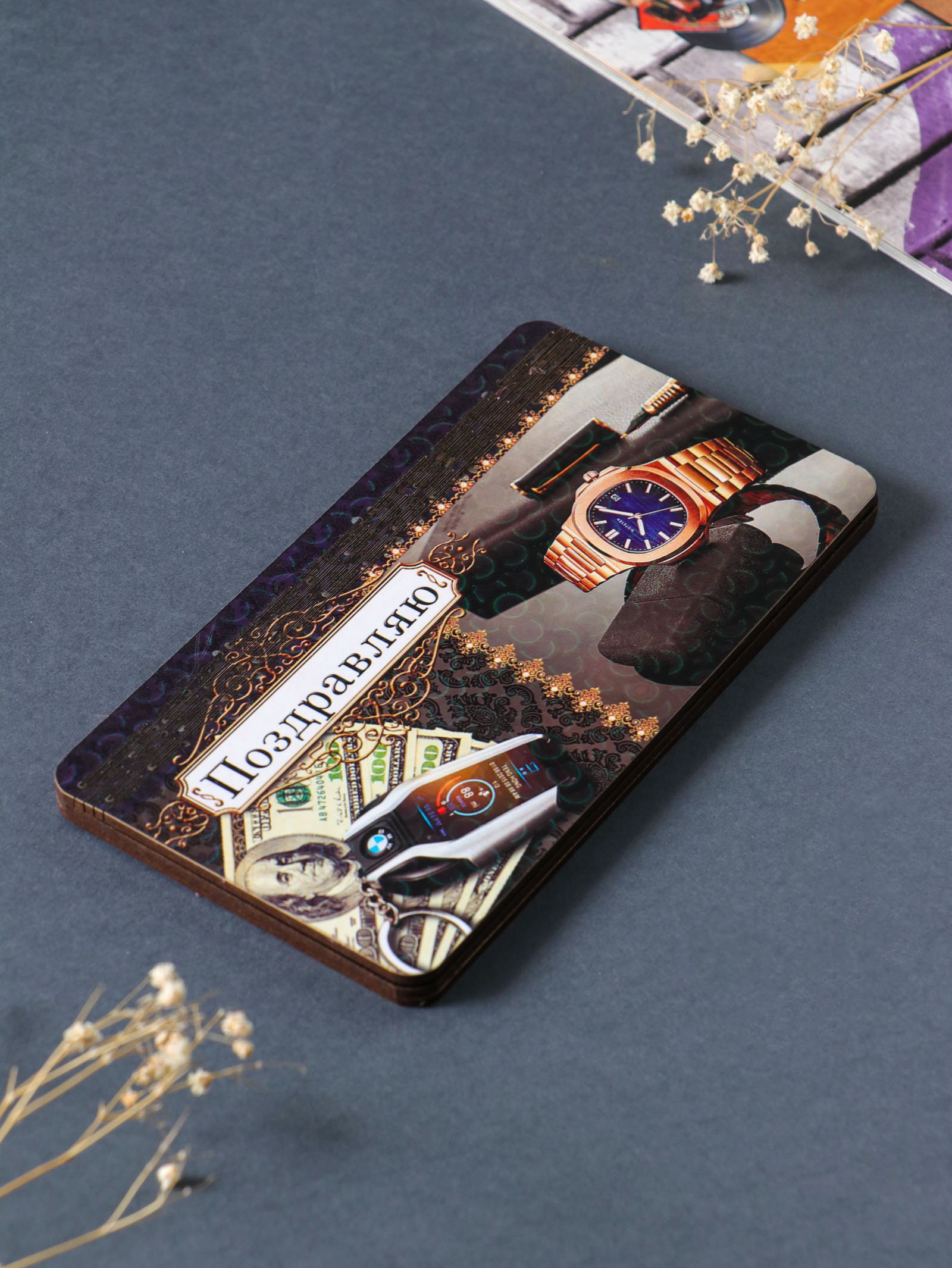 Тематика праздника: 23 Февраля, День отца, Профессиональные праздники, Универсальная тематика Тематика: Мужская, Надписи, цифры, буквы Размер упаковки: 9.5 x 0.8 x 18 см. tnved: 4420910000 Температурное ограничение: Нет Ширина, см: 9.5 Вид дерева: ХДФ Цвет: Коричневый Набор: Нет Высота, см: 0.7 Длина, см: 19 Особенности шкатулки: Для денег Форма: Прямоугольная Покрытие: Ламинированная плёнка Эта подарочная шкатулка для денег стильный и значимый жест. Она создана, чтобы вручать денежный подарок с особым вниманием, превращая его в запоминающийся символический презент. Прямоугольная форма с лаконичными графичными элементами делает акцент на поздравлении, а прочный корпус надёжно сохранит вложенные купюры, подарочные карты или сертификаты. Ключевые детали