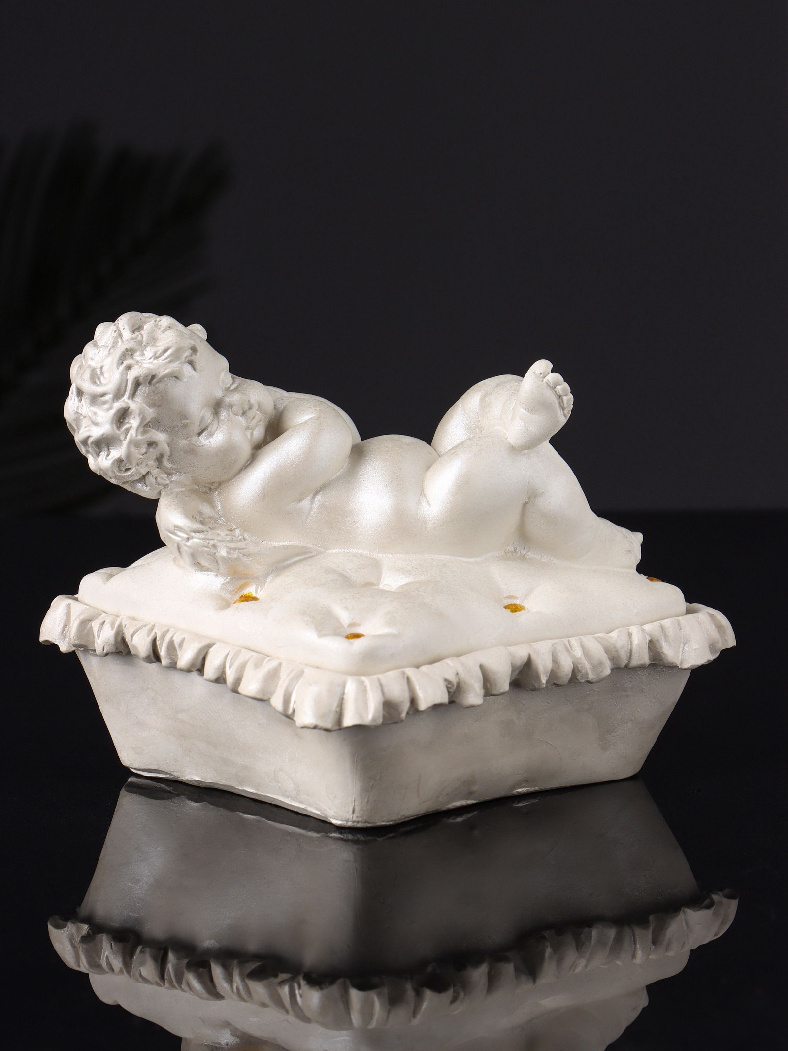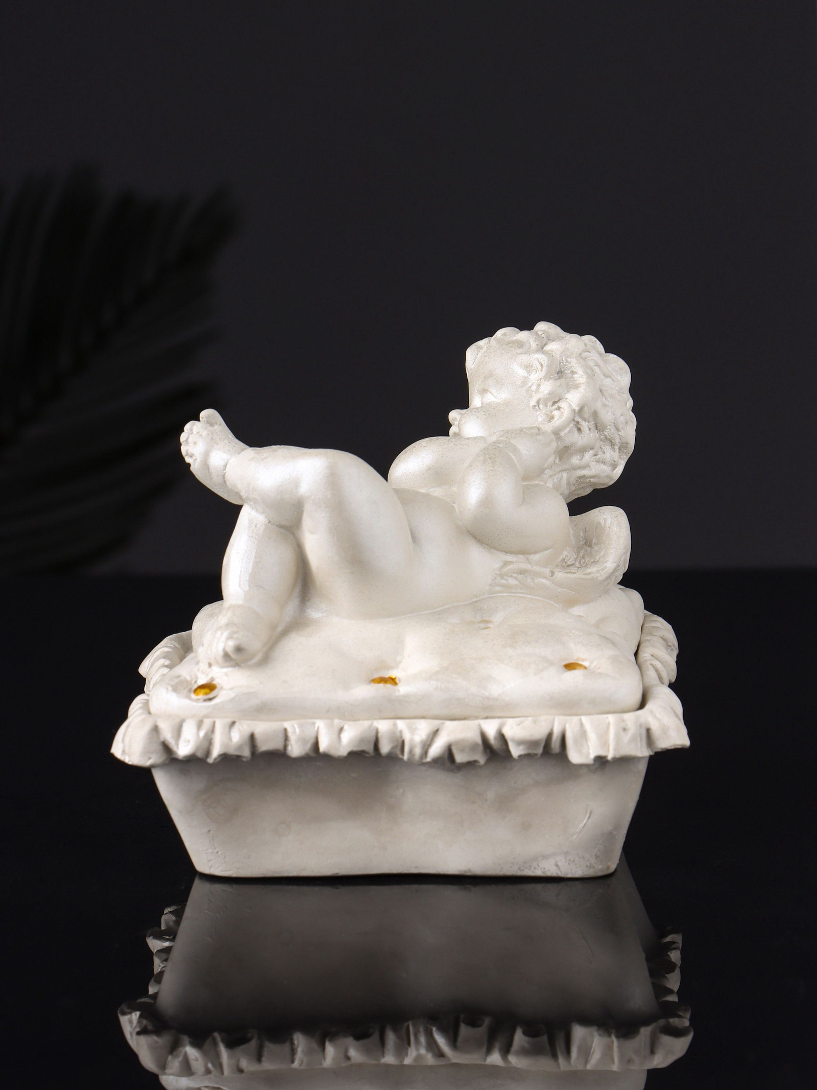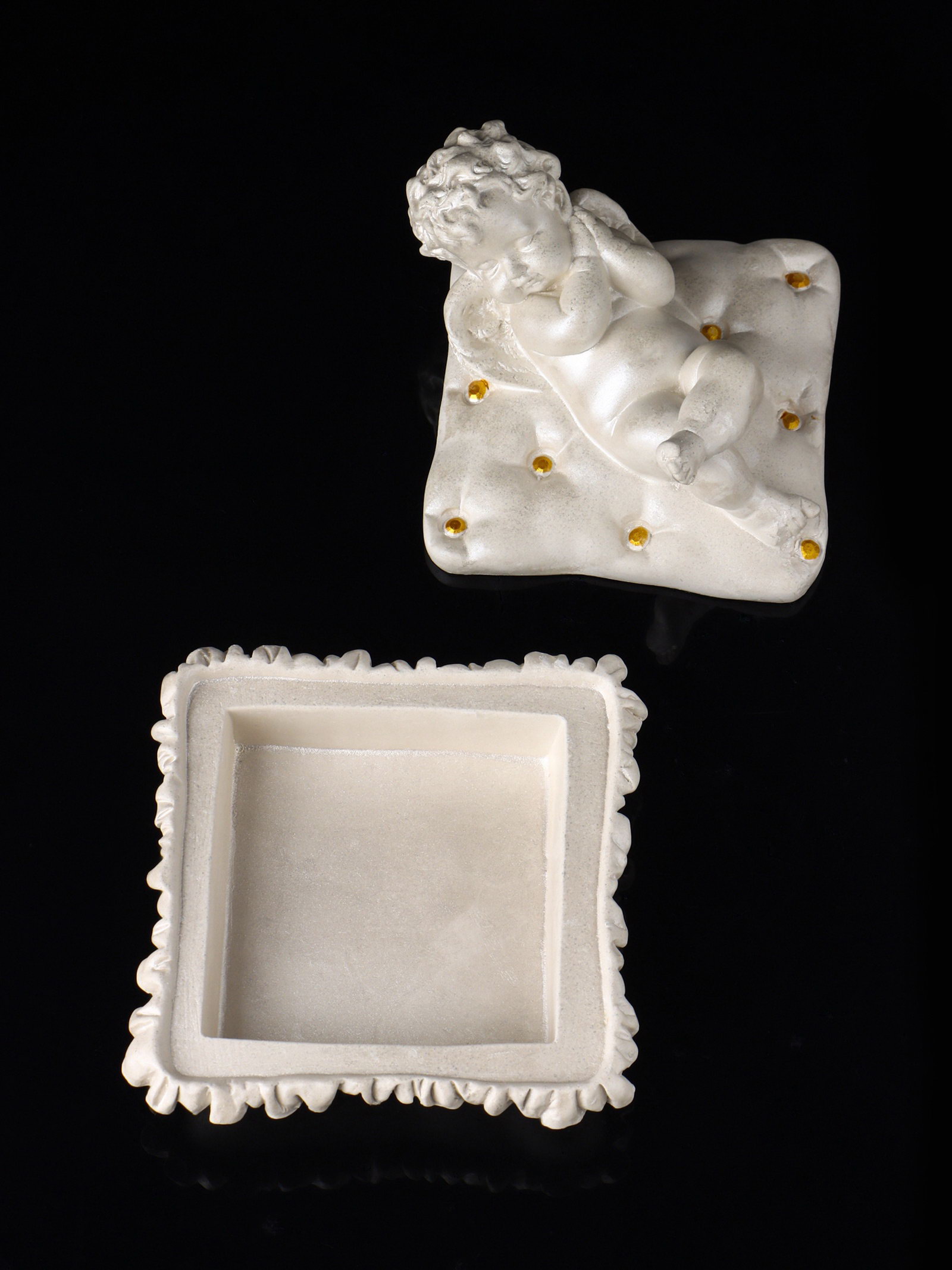 Шкатулка для украшений "Ангел лежит на животе", гипс, 9x9x9 см, перламутр, Хорошие сувениры, РОССИЯ