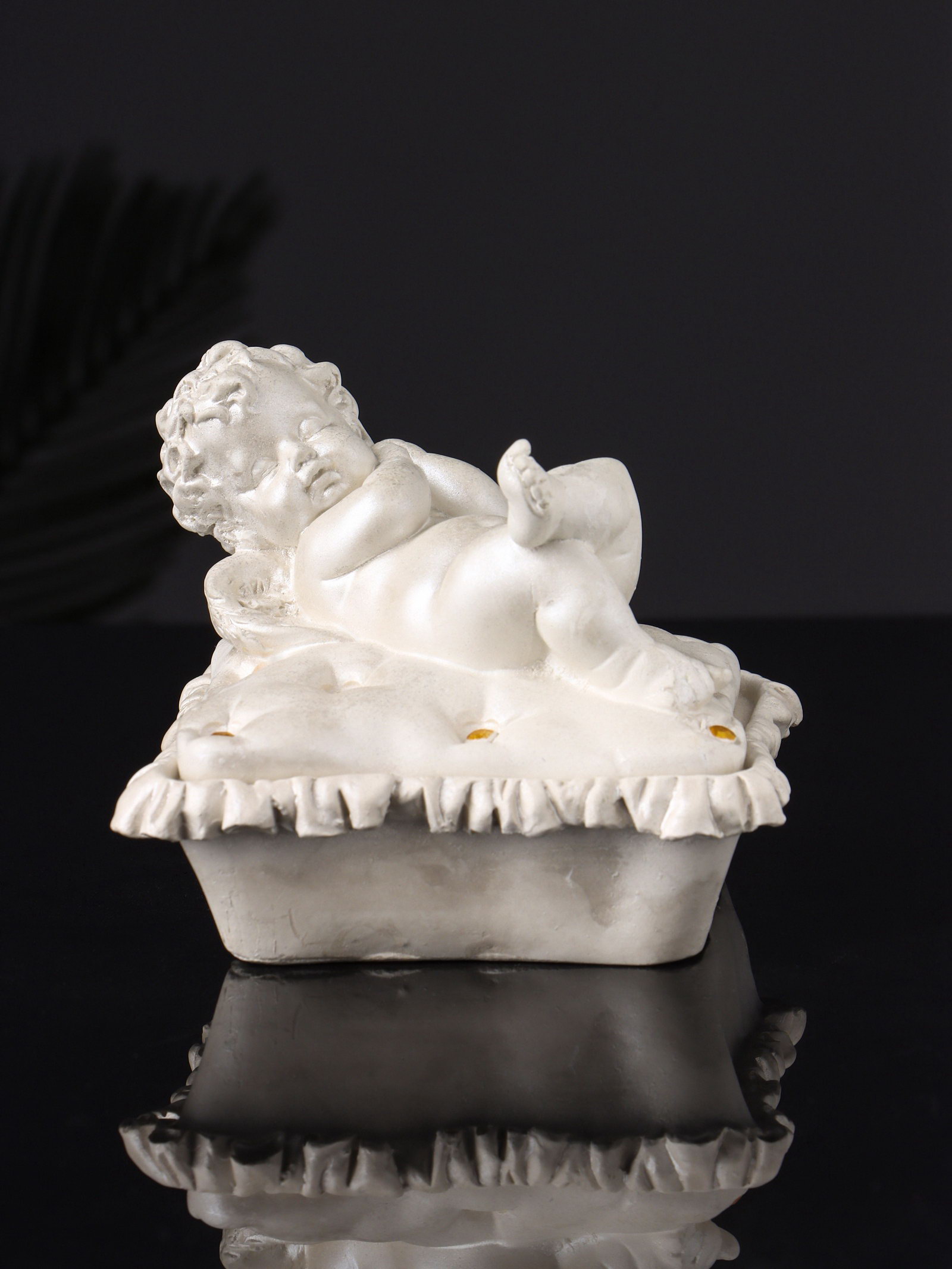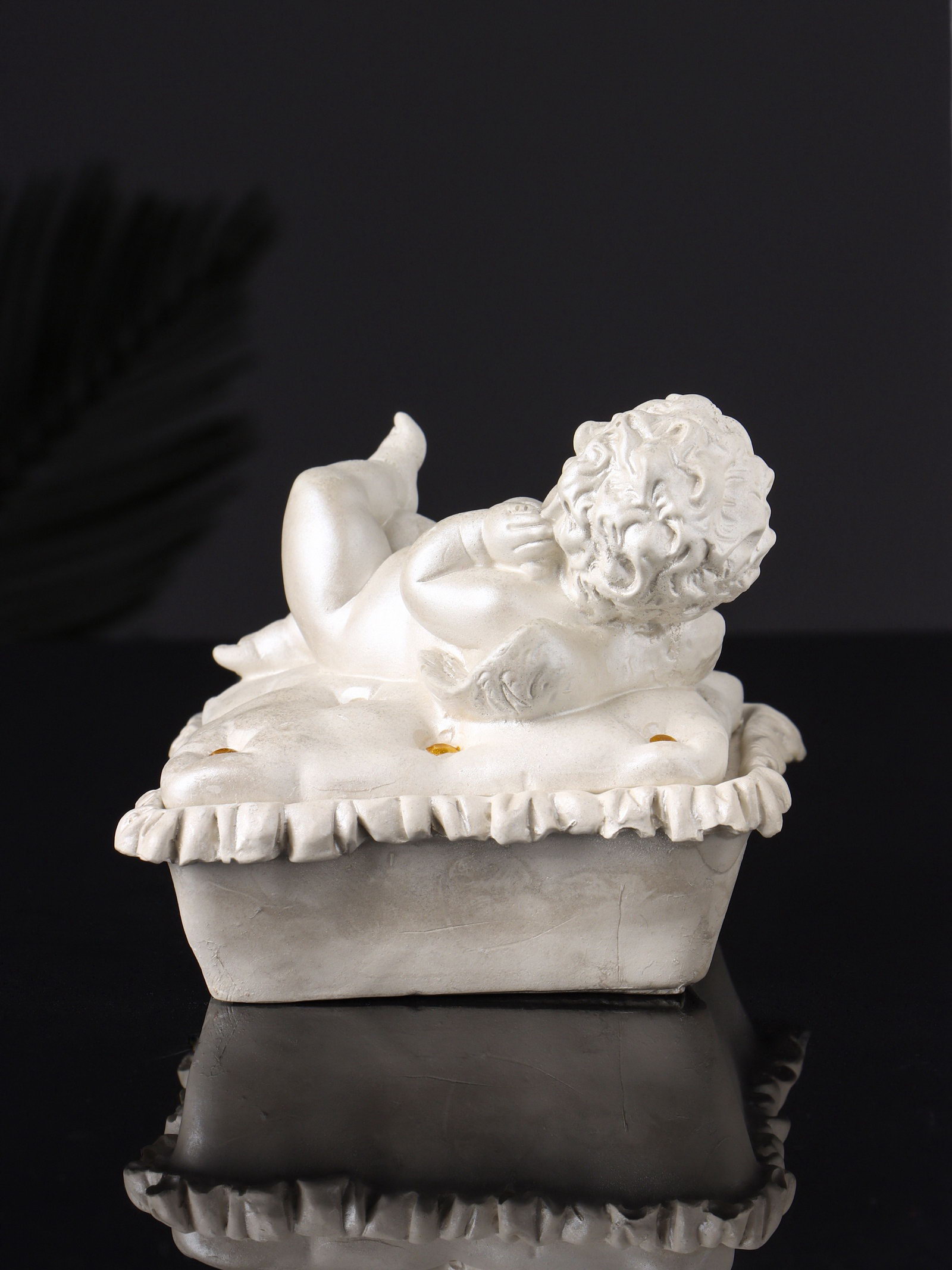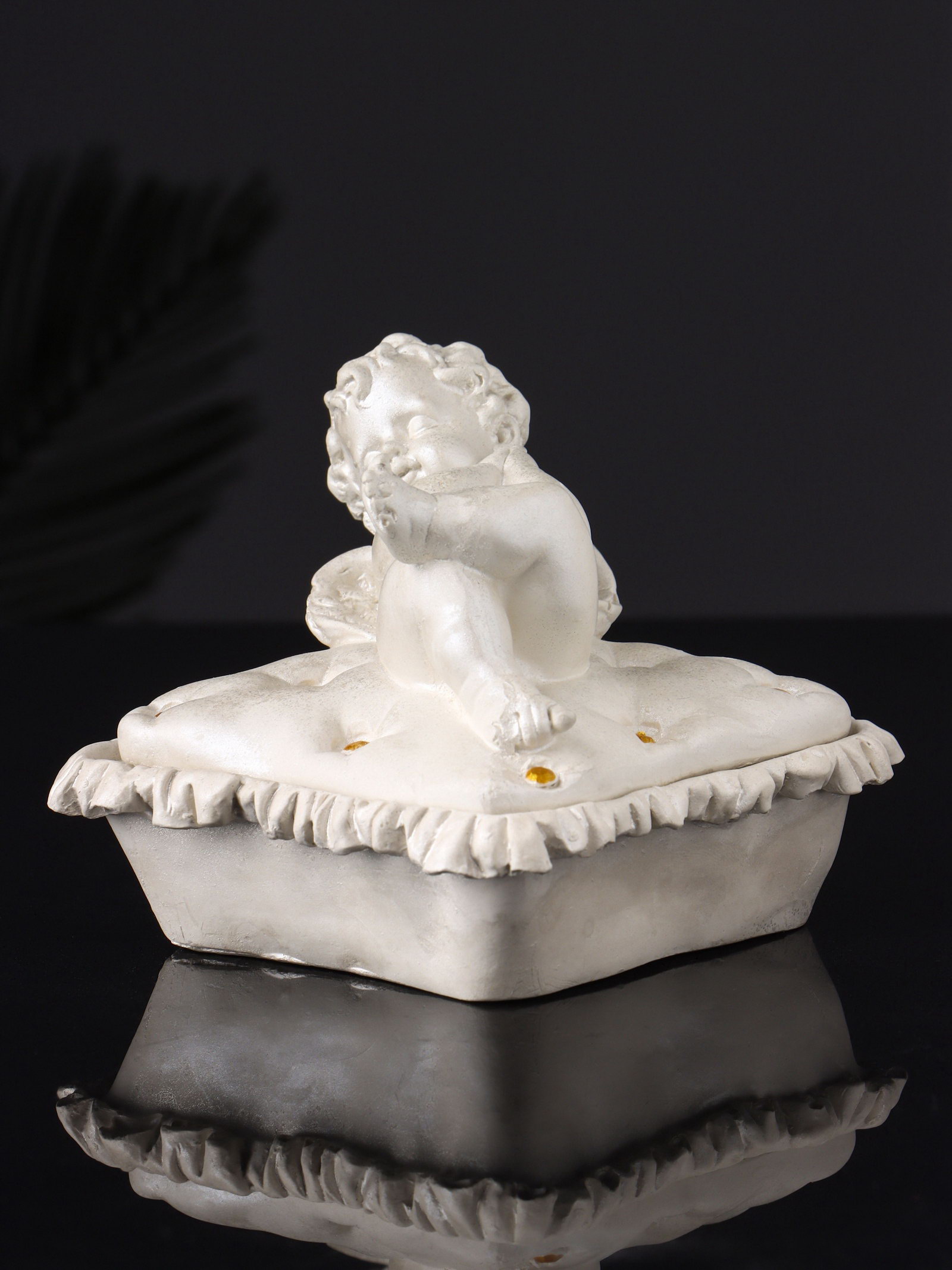 Шкатулка для украшений "Ангел лежит на животе", гипс, 9x9x9 см, перламутр, Хорошие сувениры, РОССИЯ