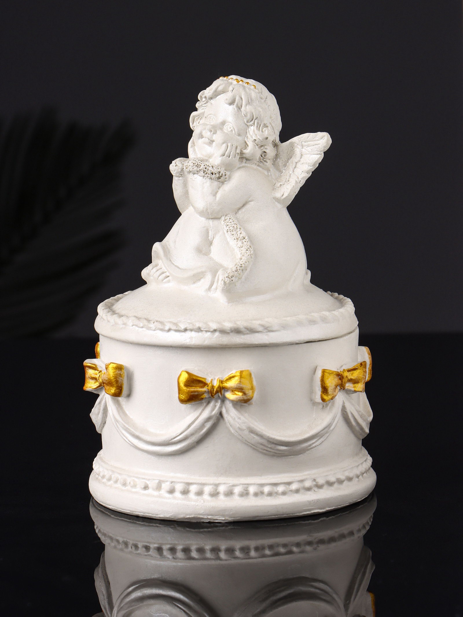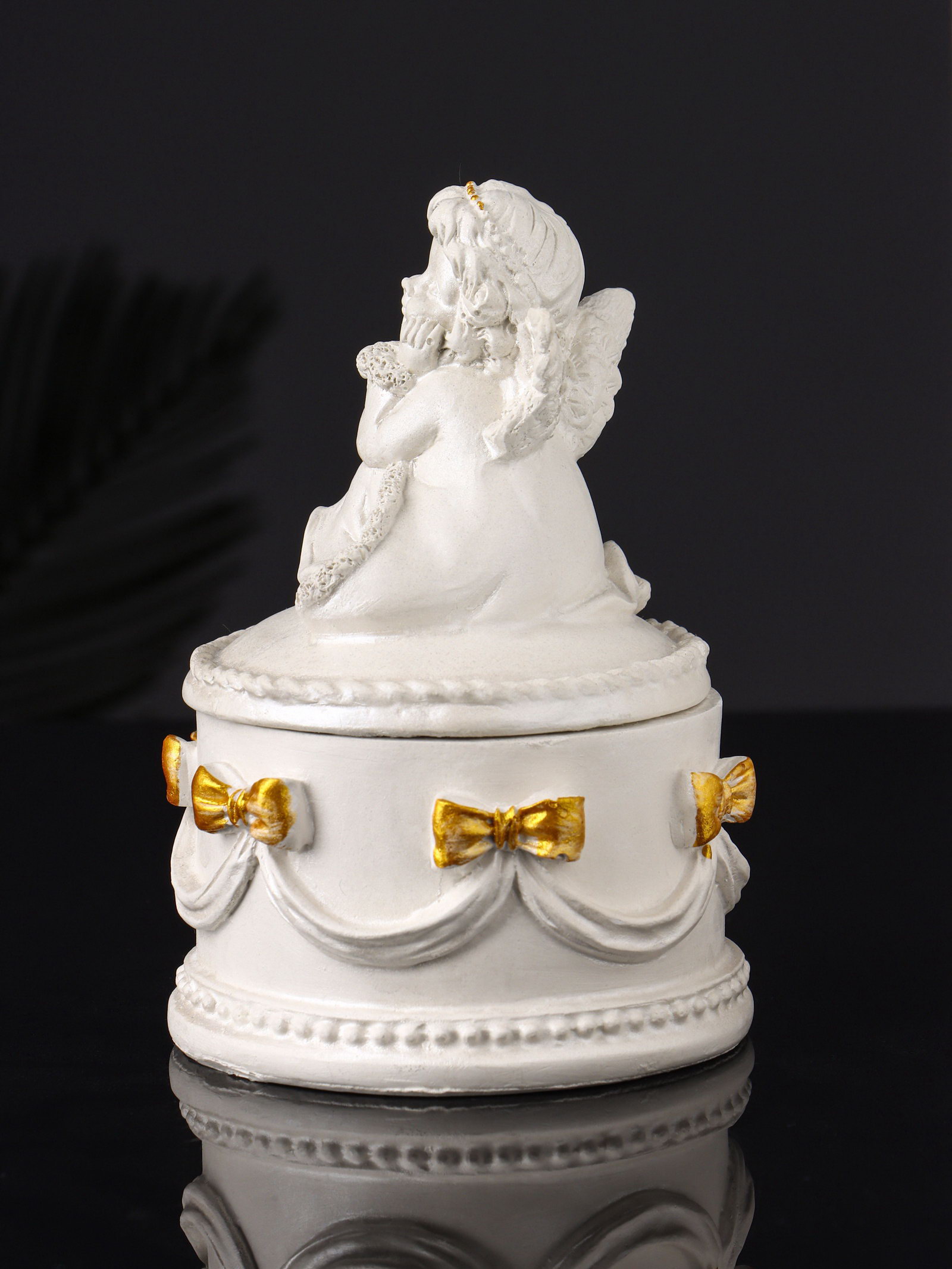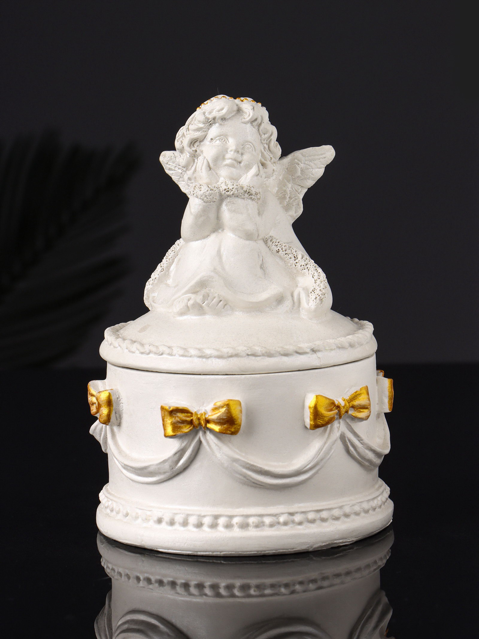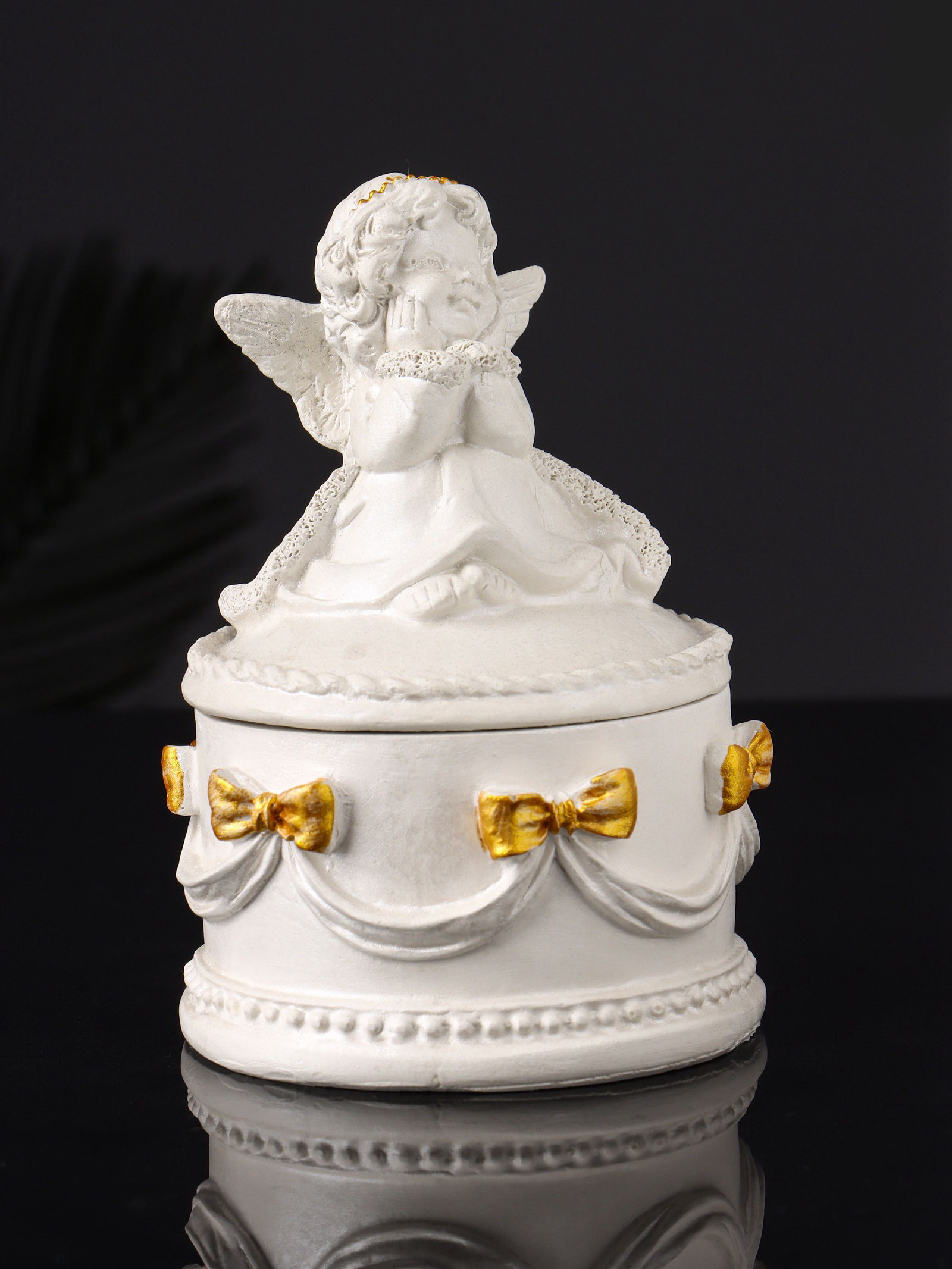 Шкатулка для украшений "Ангел", гипс, 12x9 см, перламутр, Хорошие сувениры, РОССИЯ