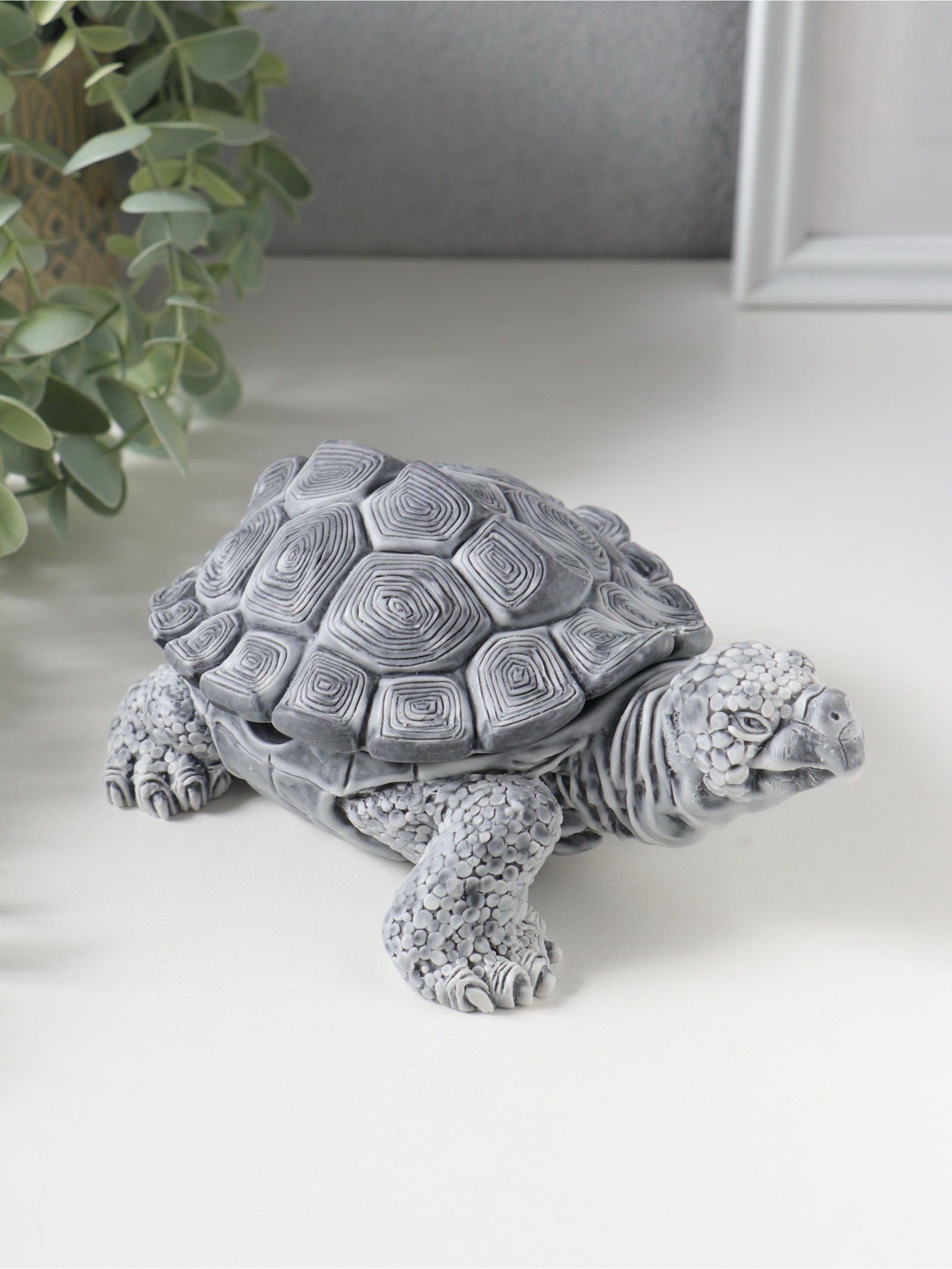 Размер упаковки: 17 x 12 x 6.5 см. tnved: 6810990000 Температурное ограничение: Нет Высота, см: 7.5 Особенности шкатулки: Фигурная Тематика: Животный мир Тематика праздника: Универсальная тематика Покрытие: Без покрытия Форма: Фигурная Цвет: Серый Эта фигурная шкатулка в виде черепахи стильный и практичный способ хранить самые ценные мелочи. Её натуральная текстура и сдержанный серый цвет создают ощущение спокойствия и гармонии, делая её универсальным аксессуаром для любого интерьера. Особенности
