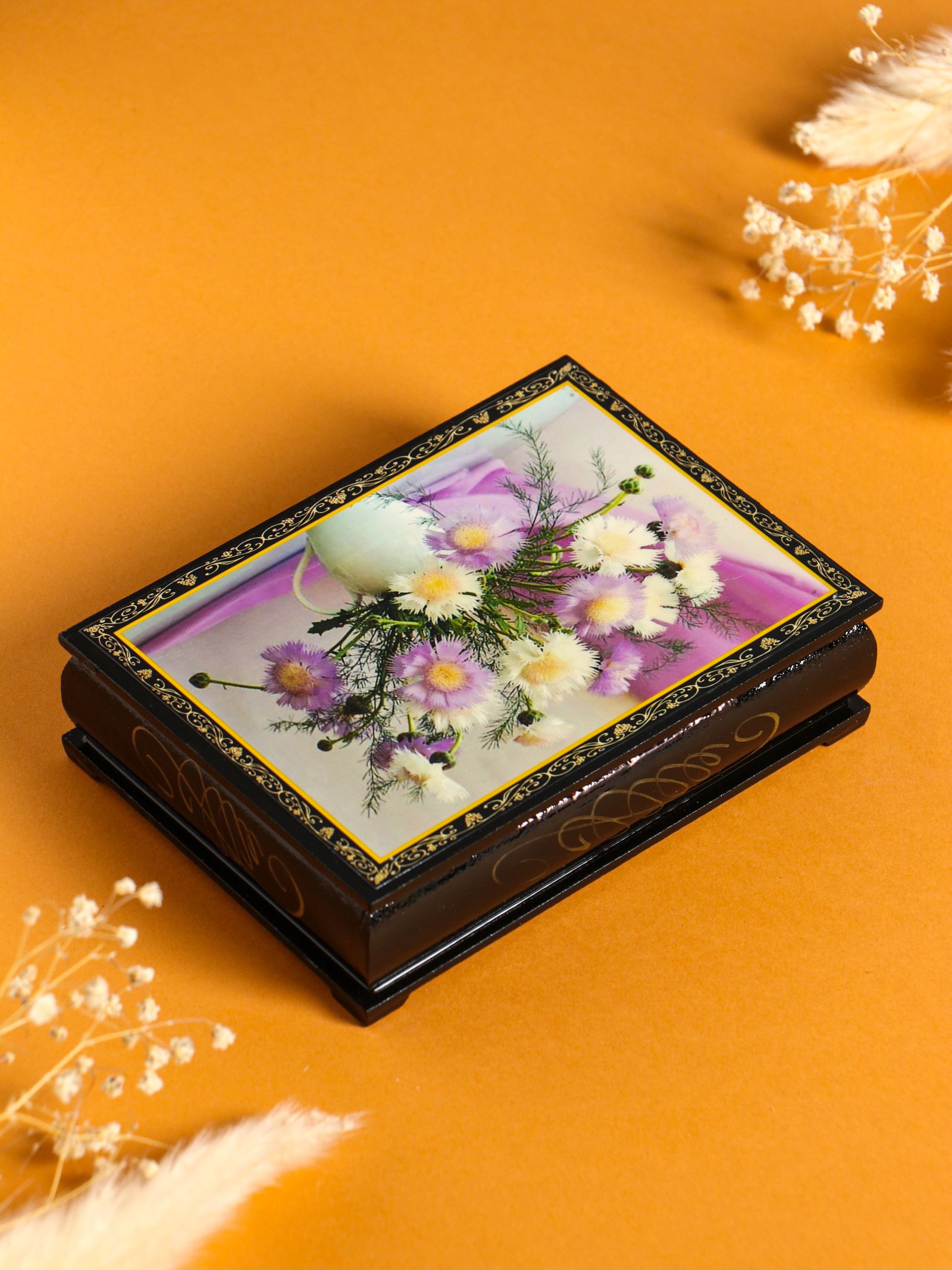 Шкатулка "Цветы в кувшине", 10x14 см, лаковая миниатюра, Россия