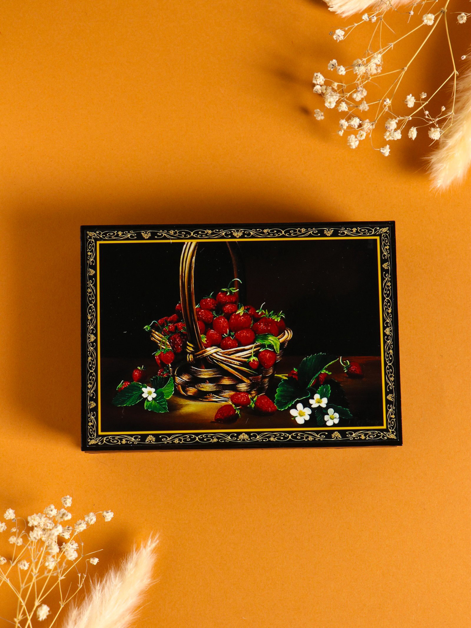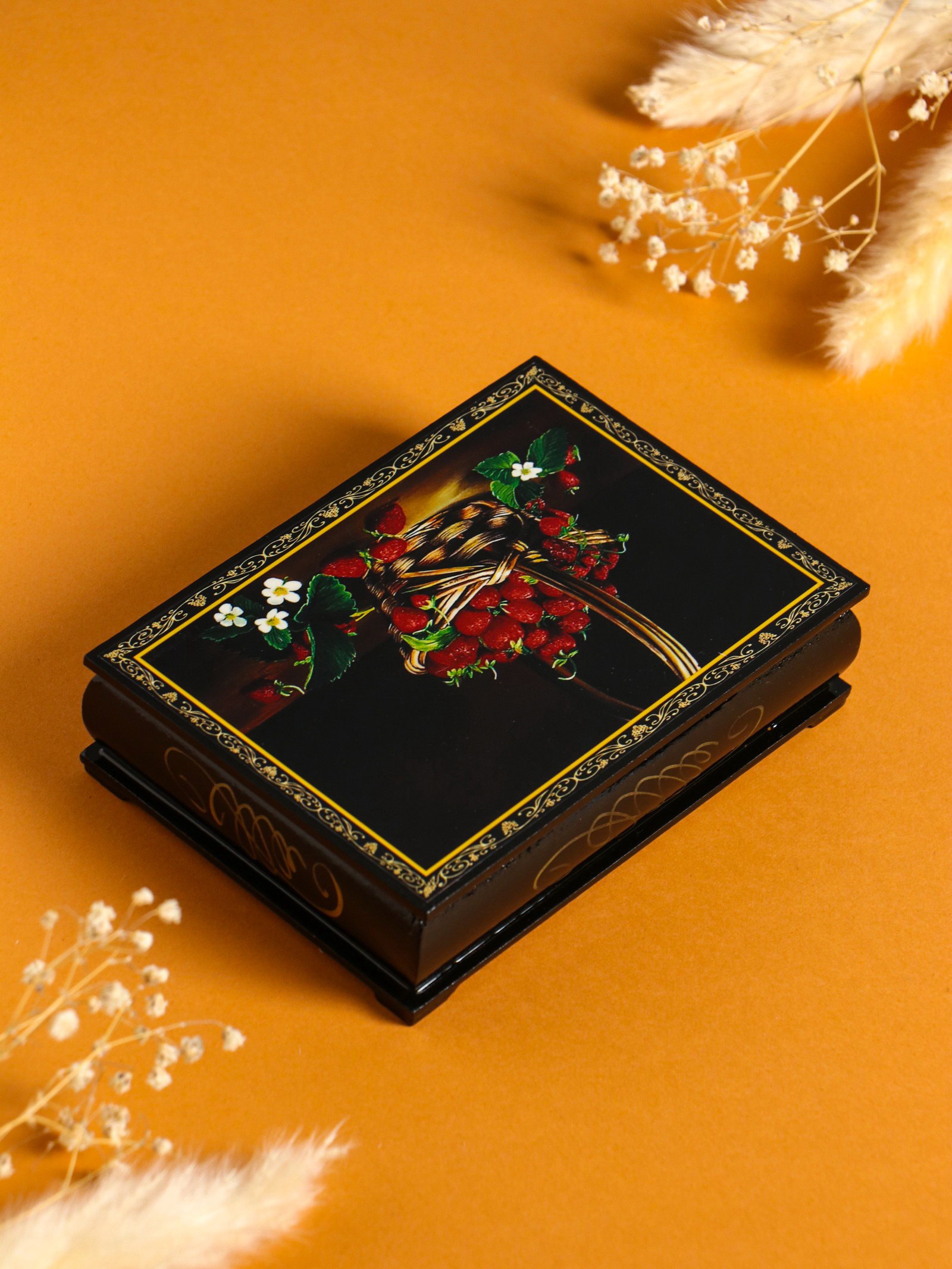 Шкатулка "Ягоды", 10x14 см, лаковая миниатюра, Россия