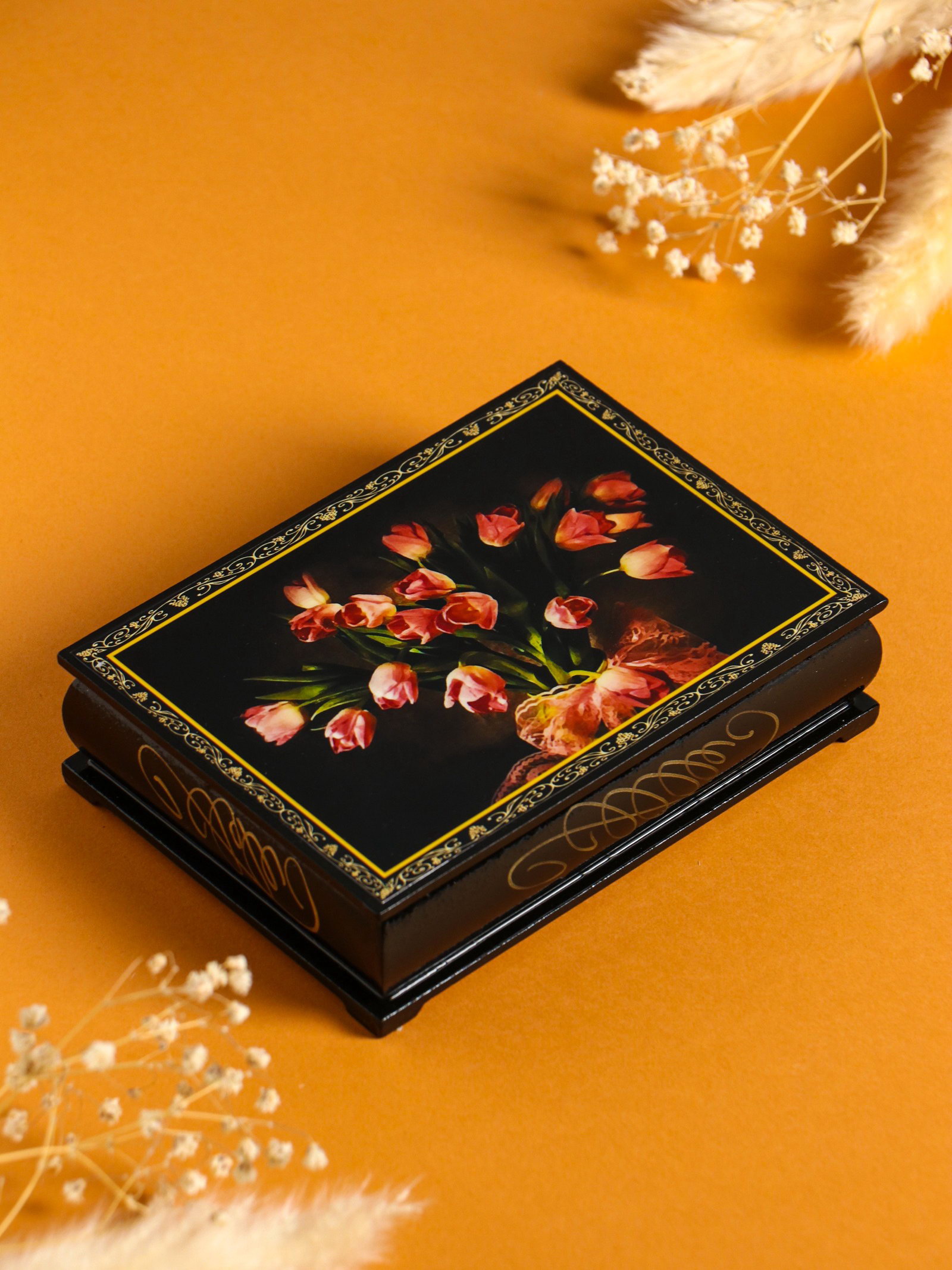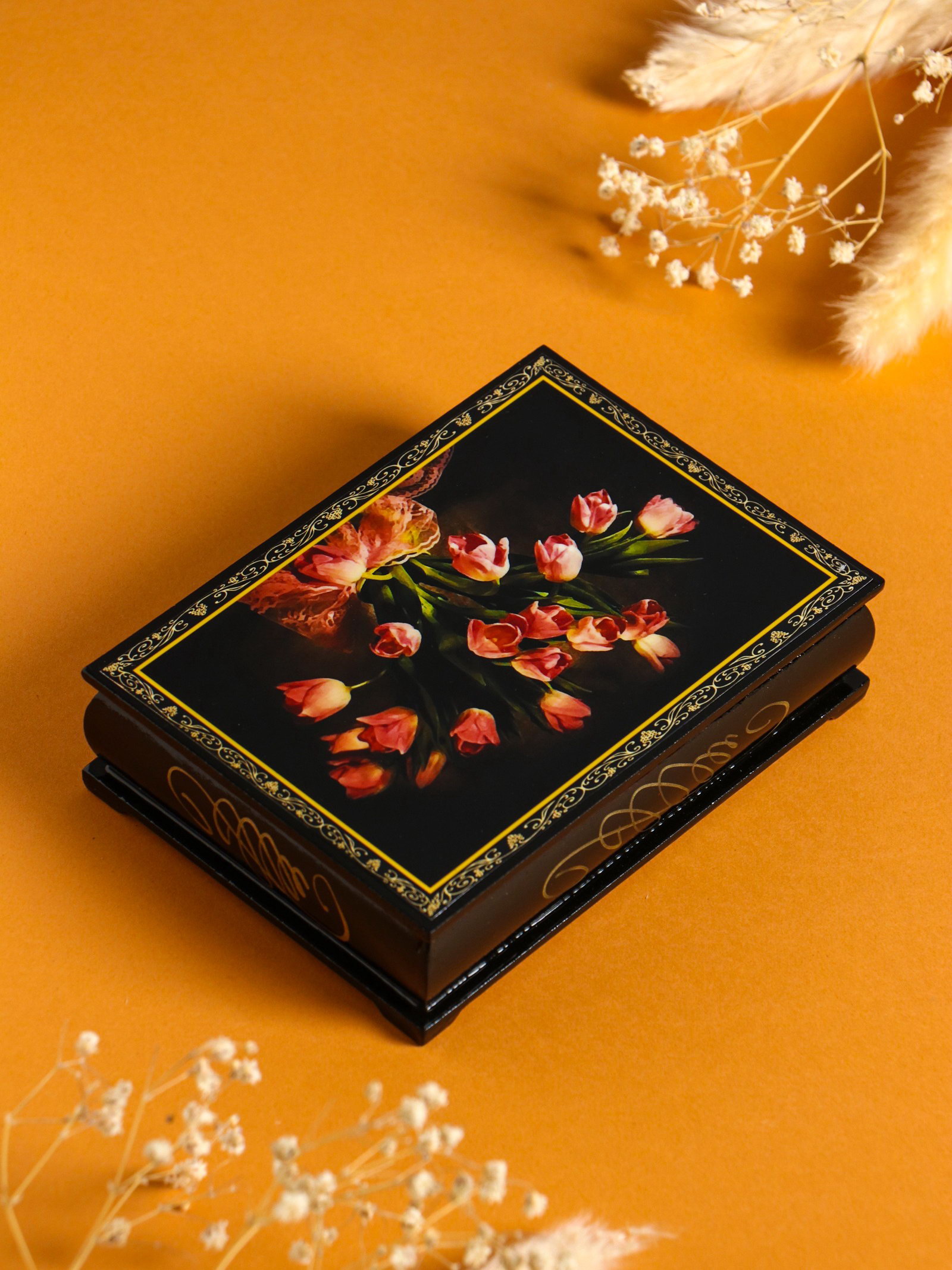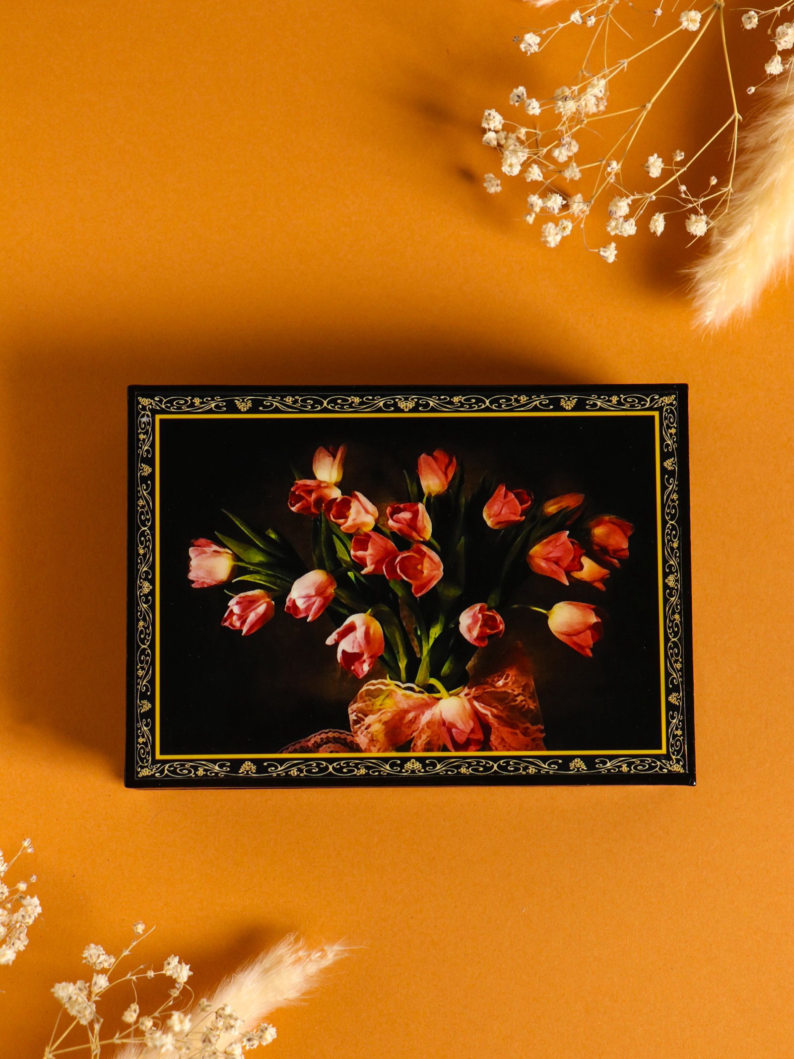 Шкатулка "Тюльпаны", 10x14 см, лаковая миниатюра, Россия