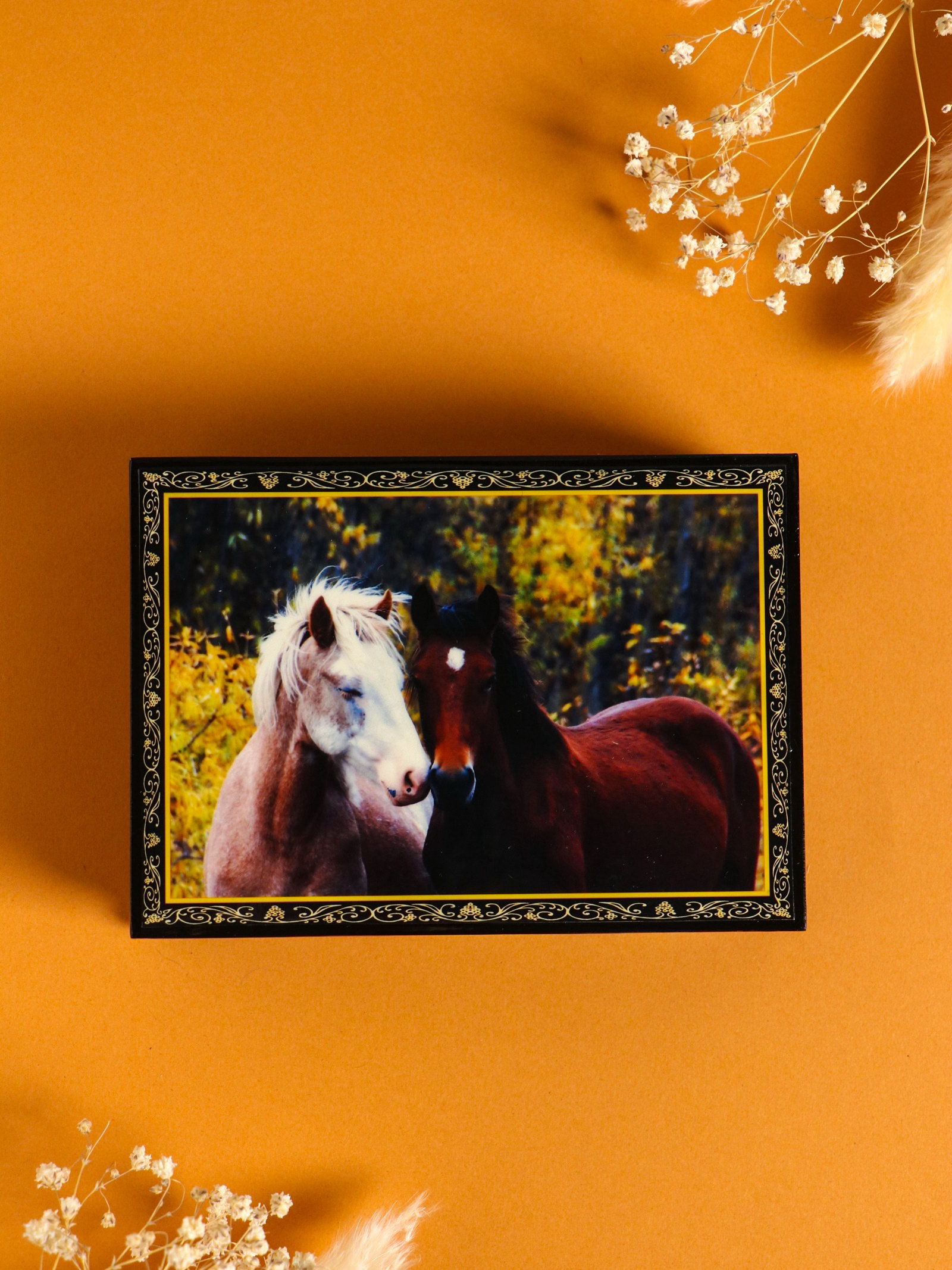 Шкатулка для украшений "Пара лошадей", 10x14 см, лаковая миниатюра, Россия