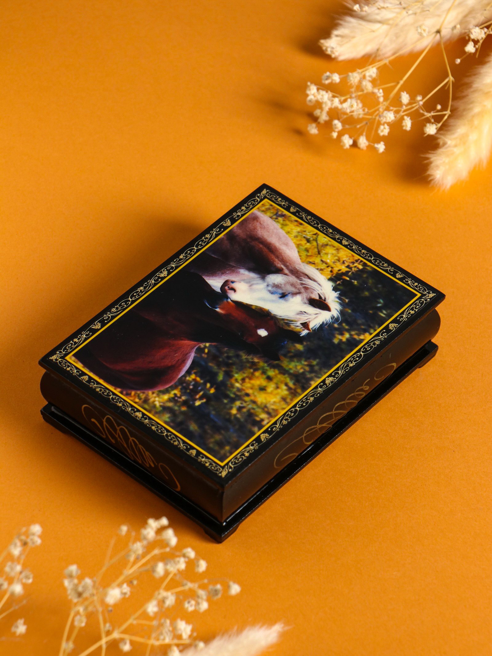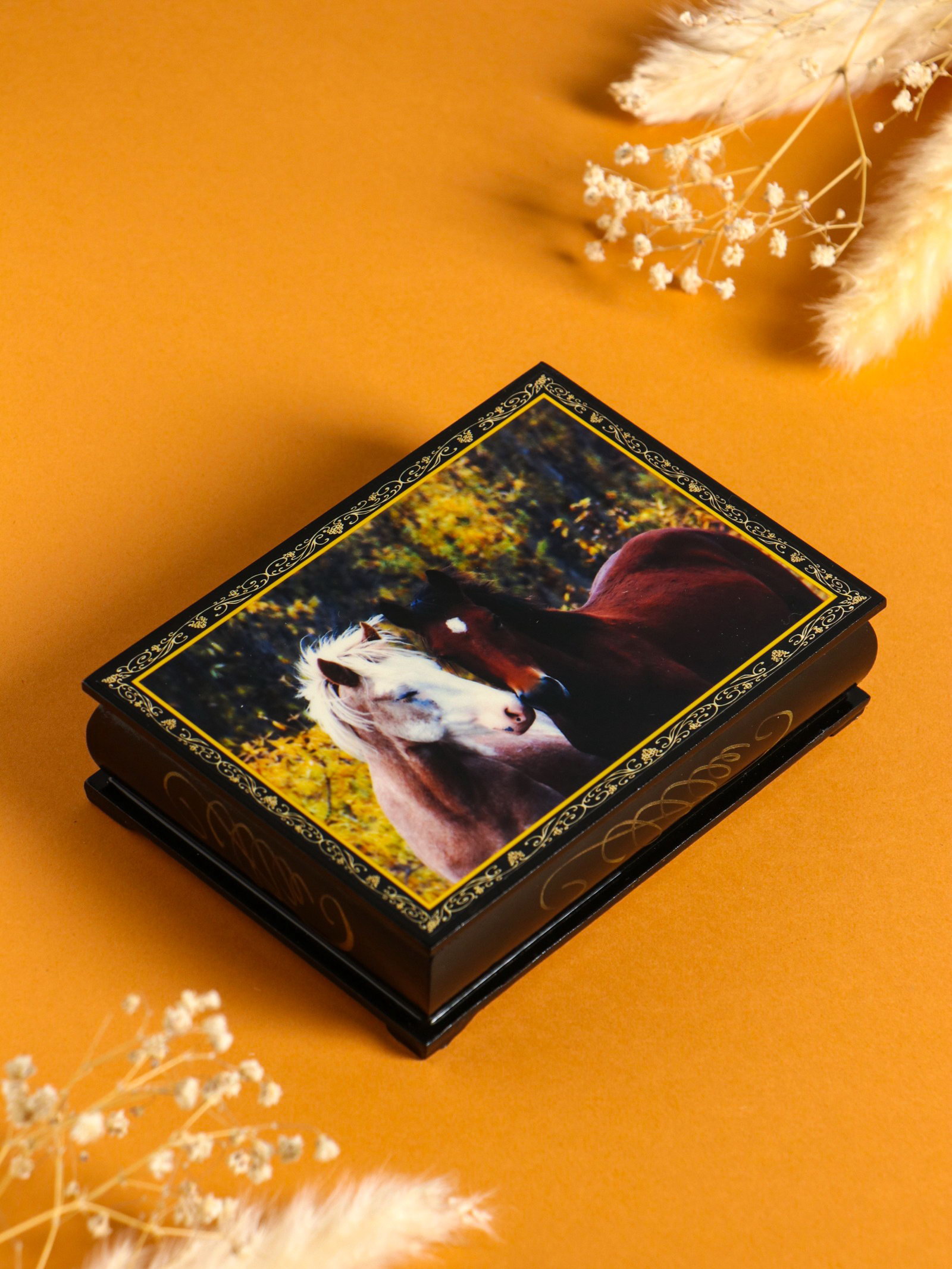 Шкатулка "Пара лошадей", 10x14 см, лаковая миниатюра, Россия