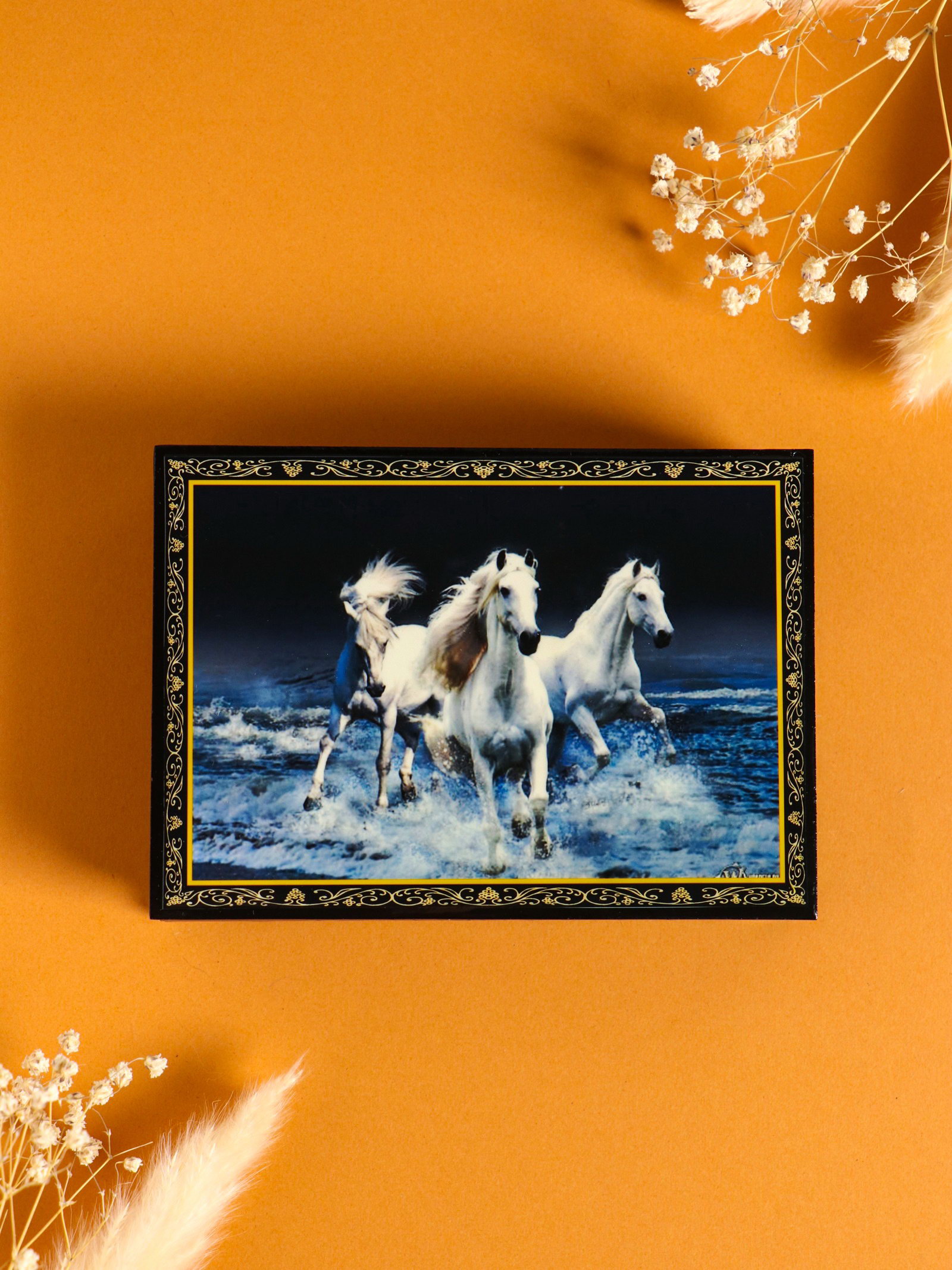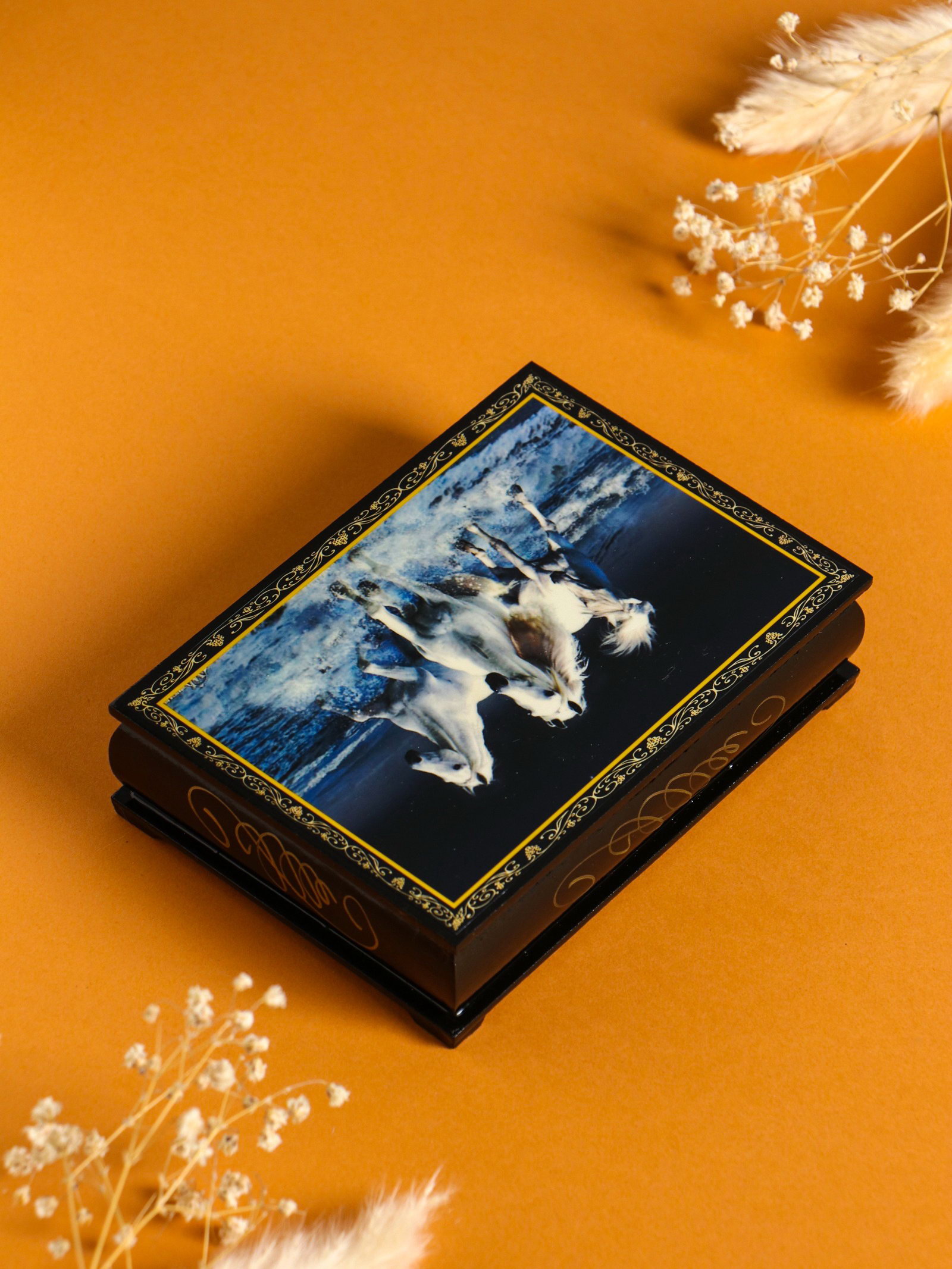 Шкатулка "Три коня", 10x14 см, лаковая миниатюра, Россия