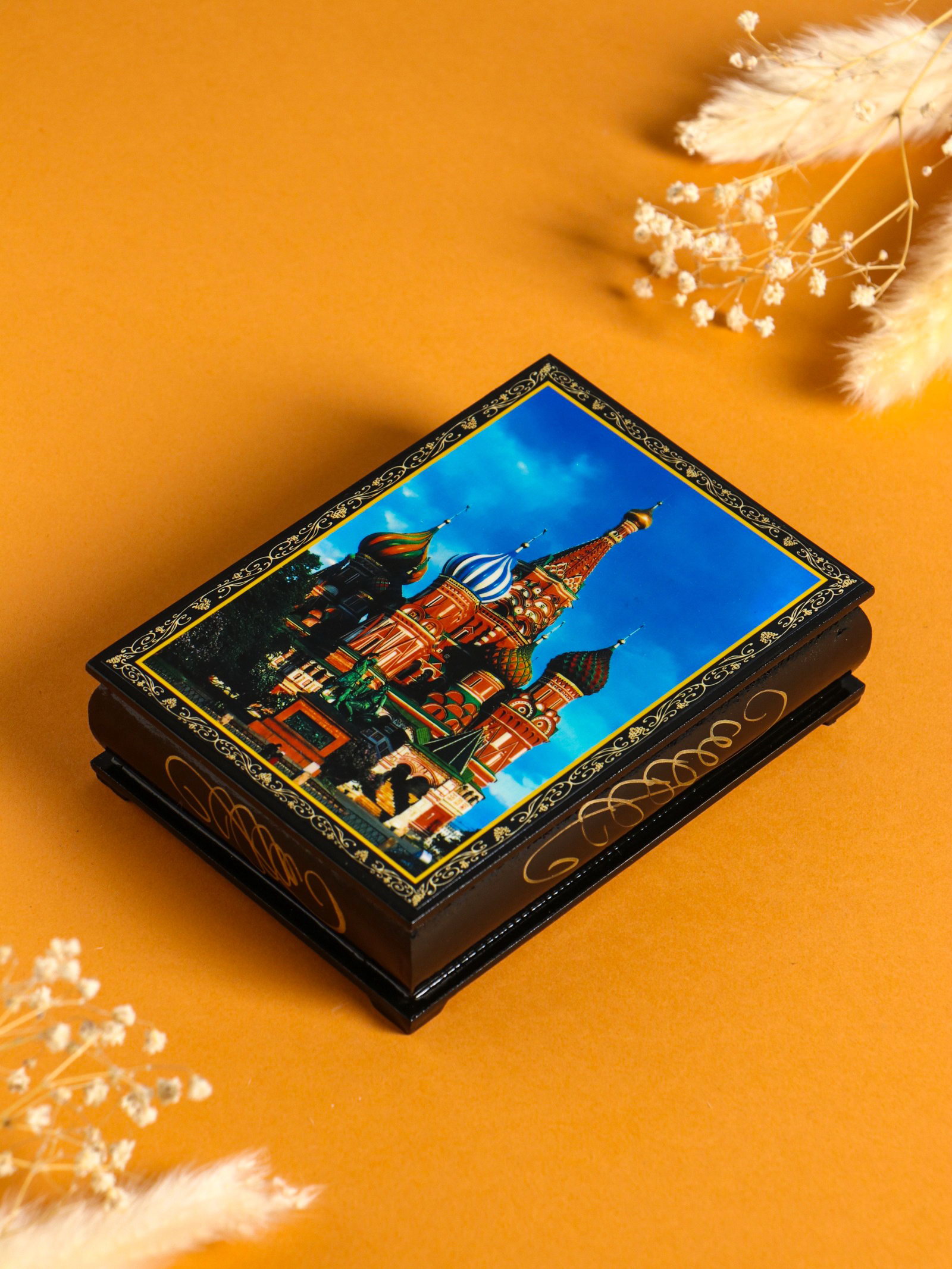 Шкатулка "Москва. Собор", 10x14 см, лаковая миниатюра, Россия