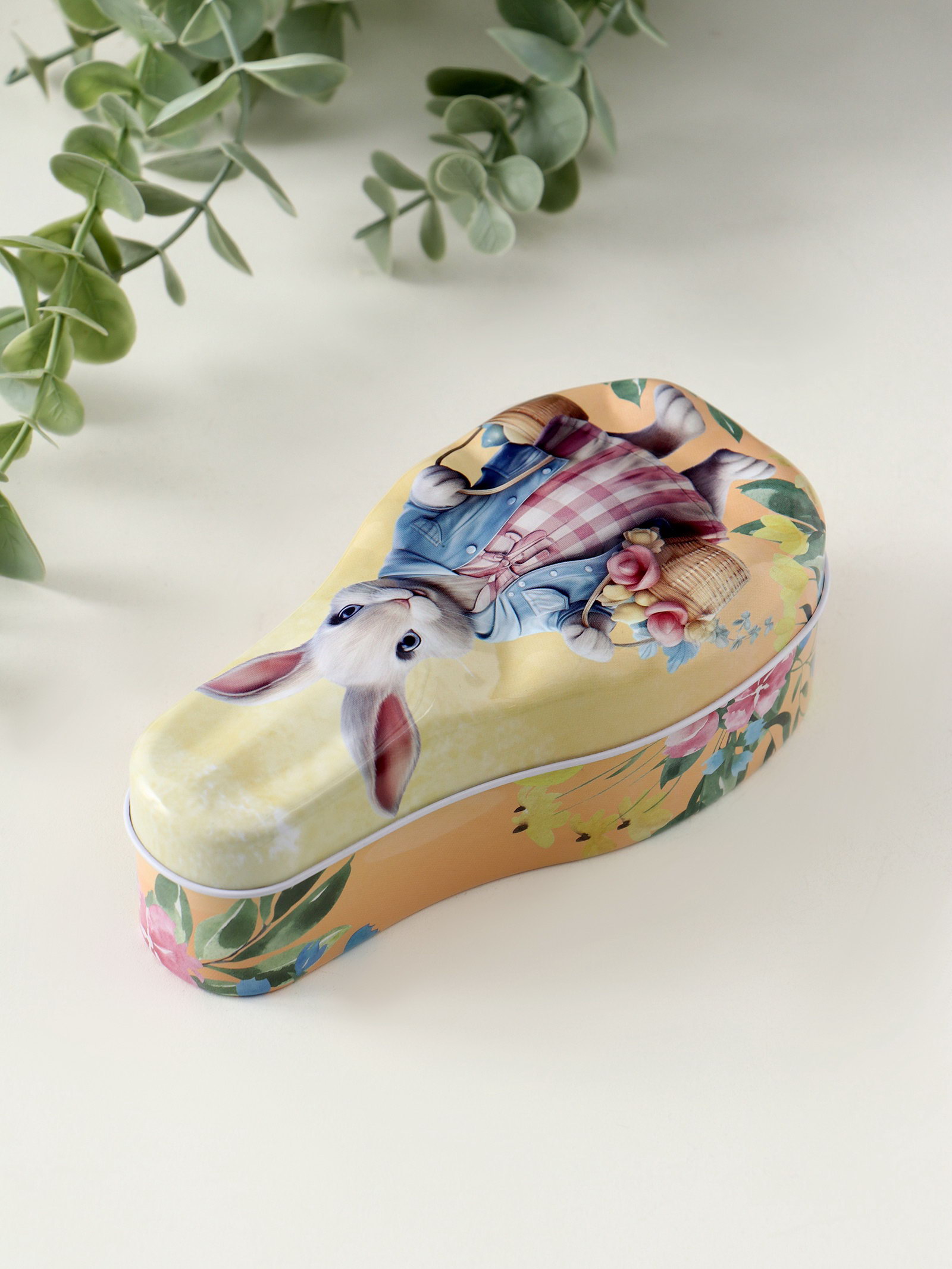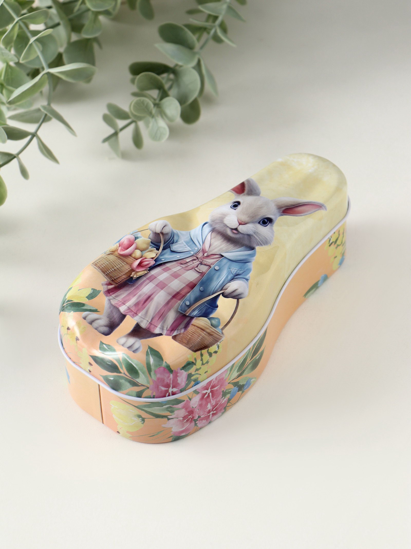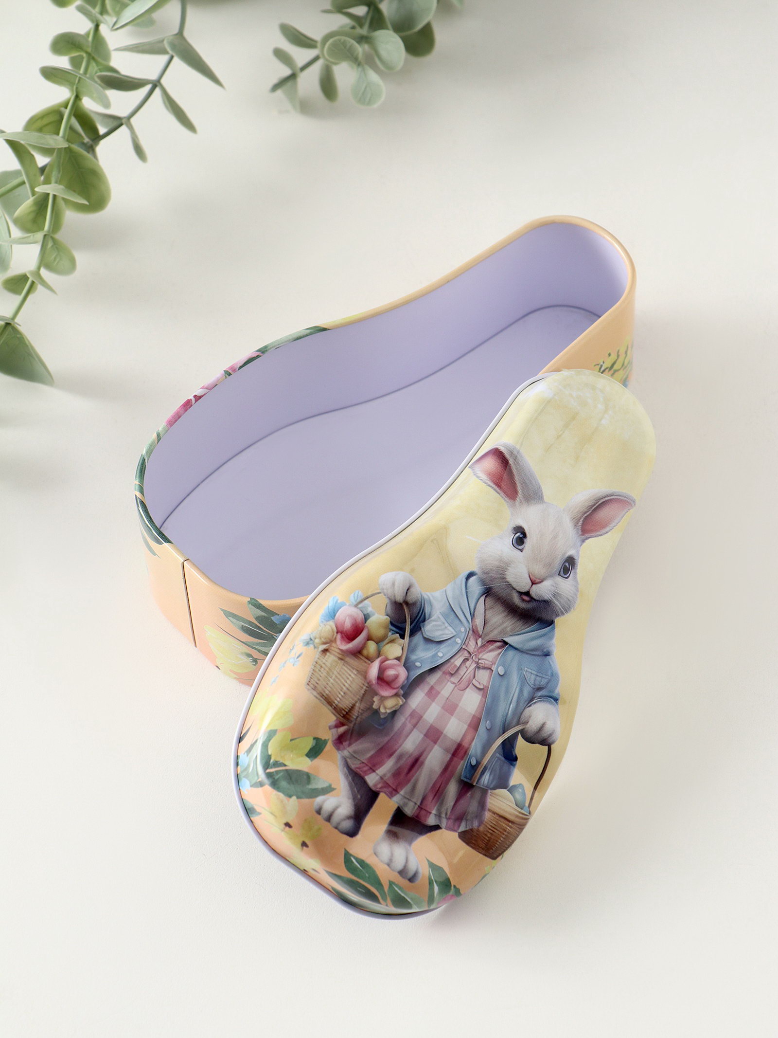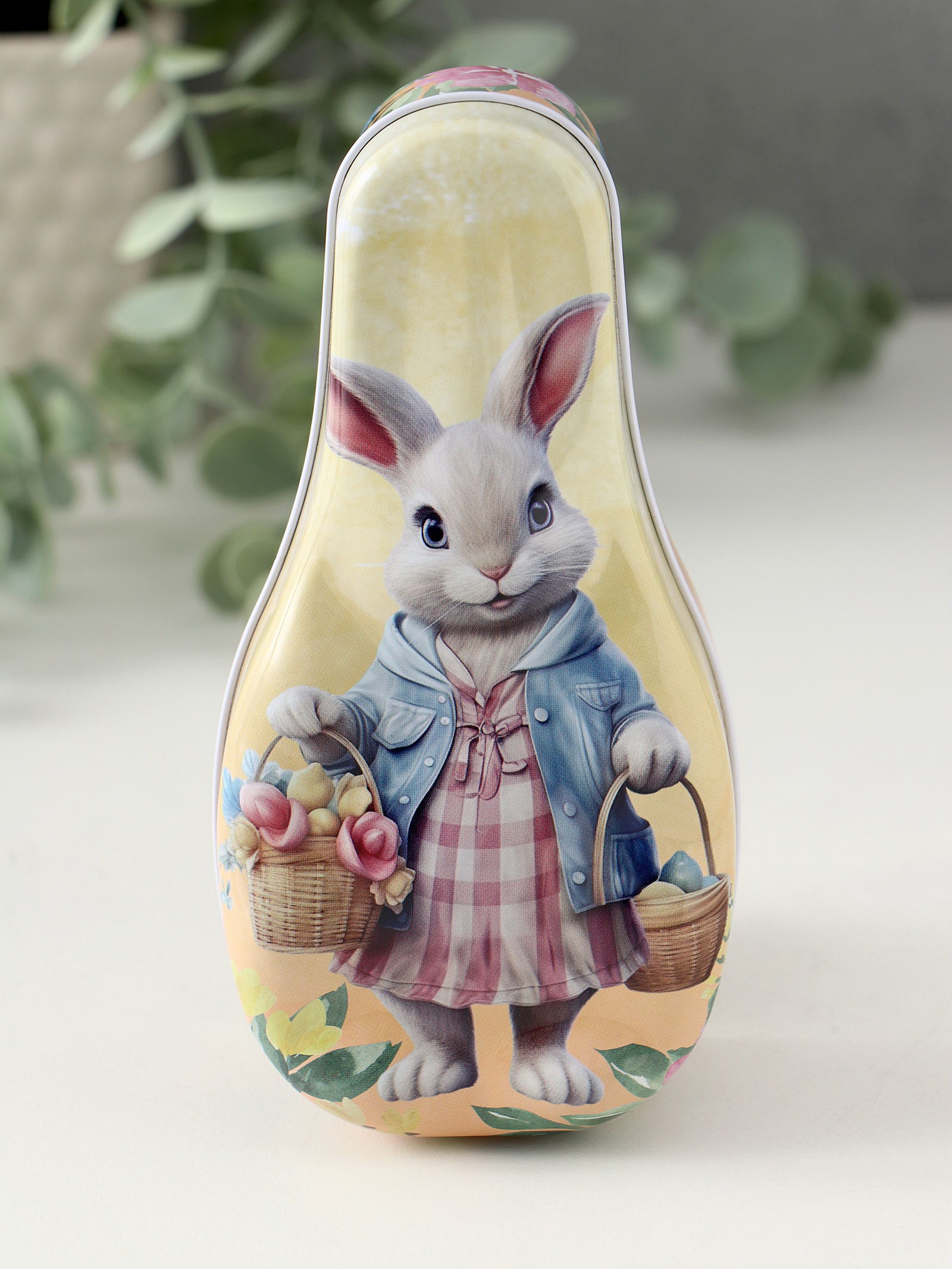 Шкатулка для хранения мелочей, украшений "Зайка с корзинками с цветами и яичками", металл, 4.6x7x14.3 см, 7x4.6x14.3 см., Китай