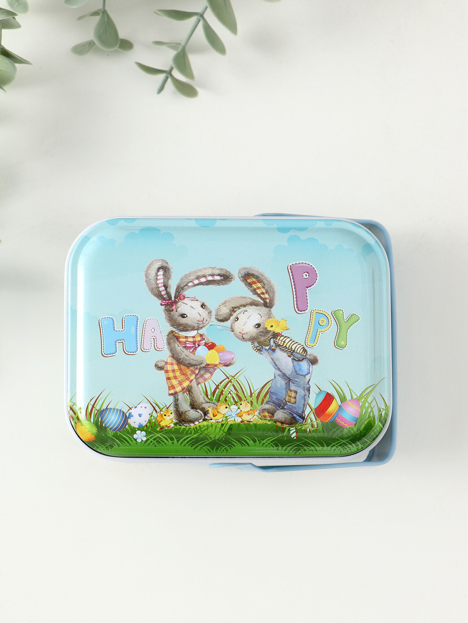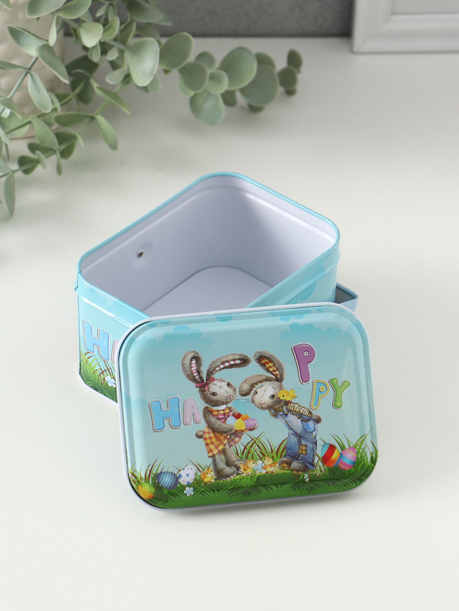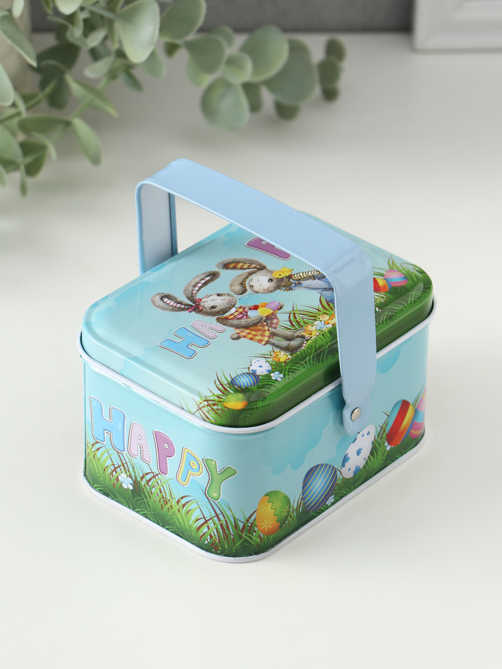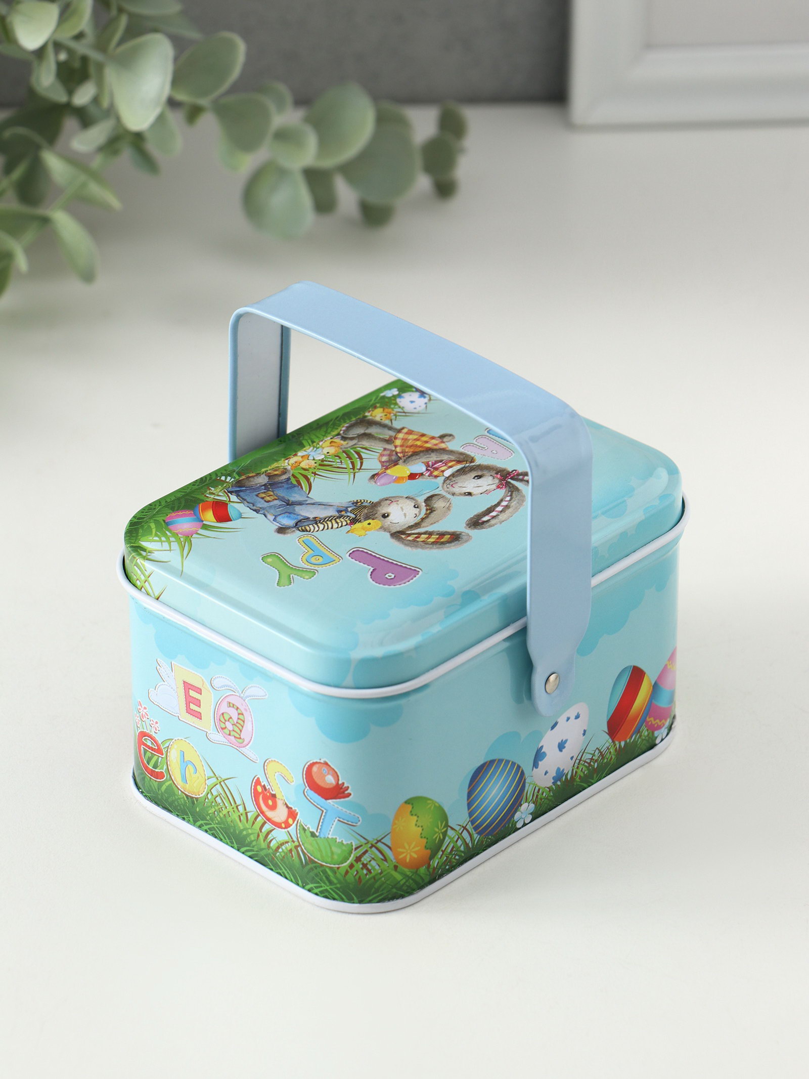 Шкатулка для хранения мелочей, украшений с ручкой "Крольчата с яичками", металл, 6x10.5x8 см, 8x10.5x6 см., Китай