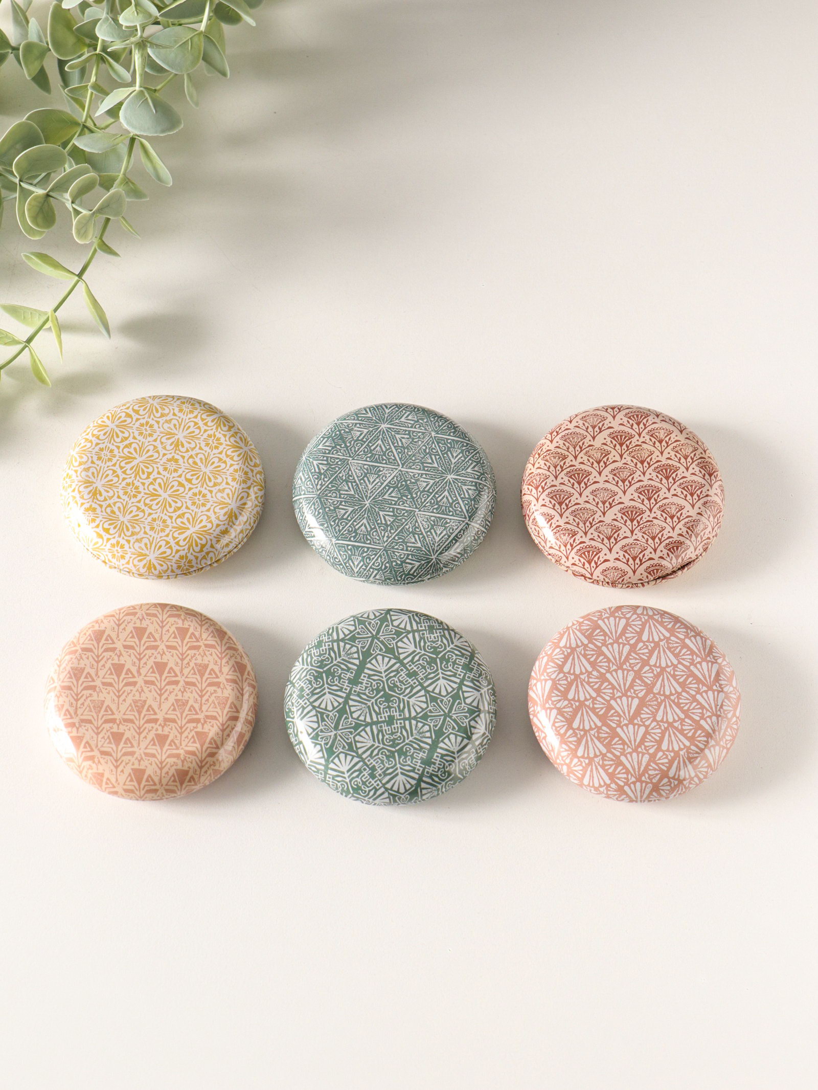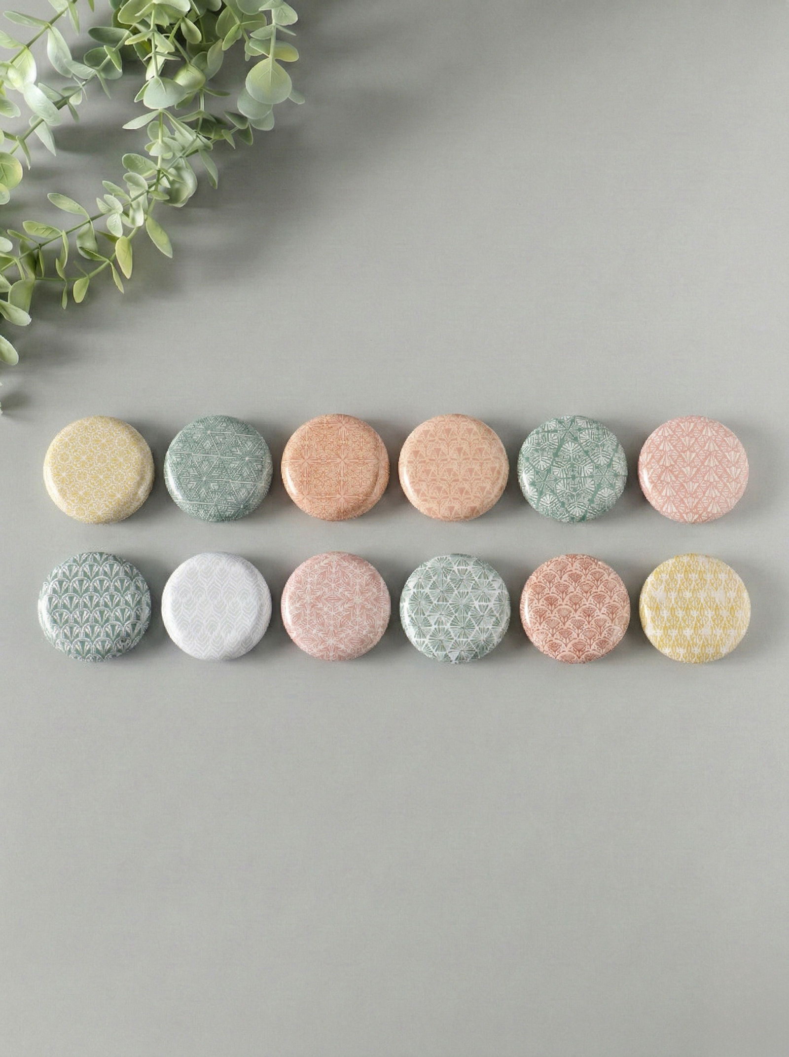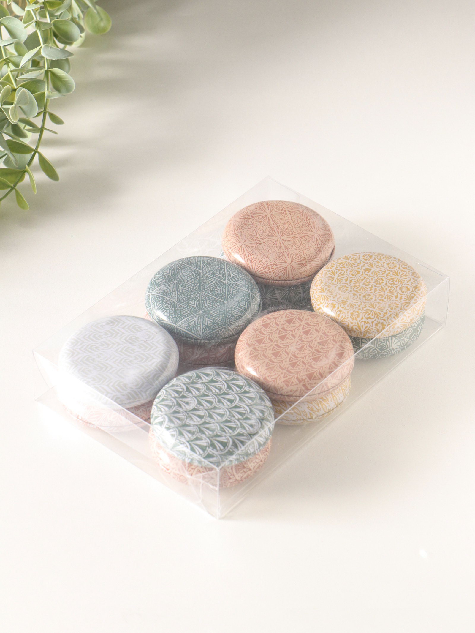 Набор шкатулок для украшений "Геометрические рисунки", 12 шт., мини, металл, круглая, 6.8x6.8x1.7 см, 6.8x6.8x1.7 см., Китай