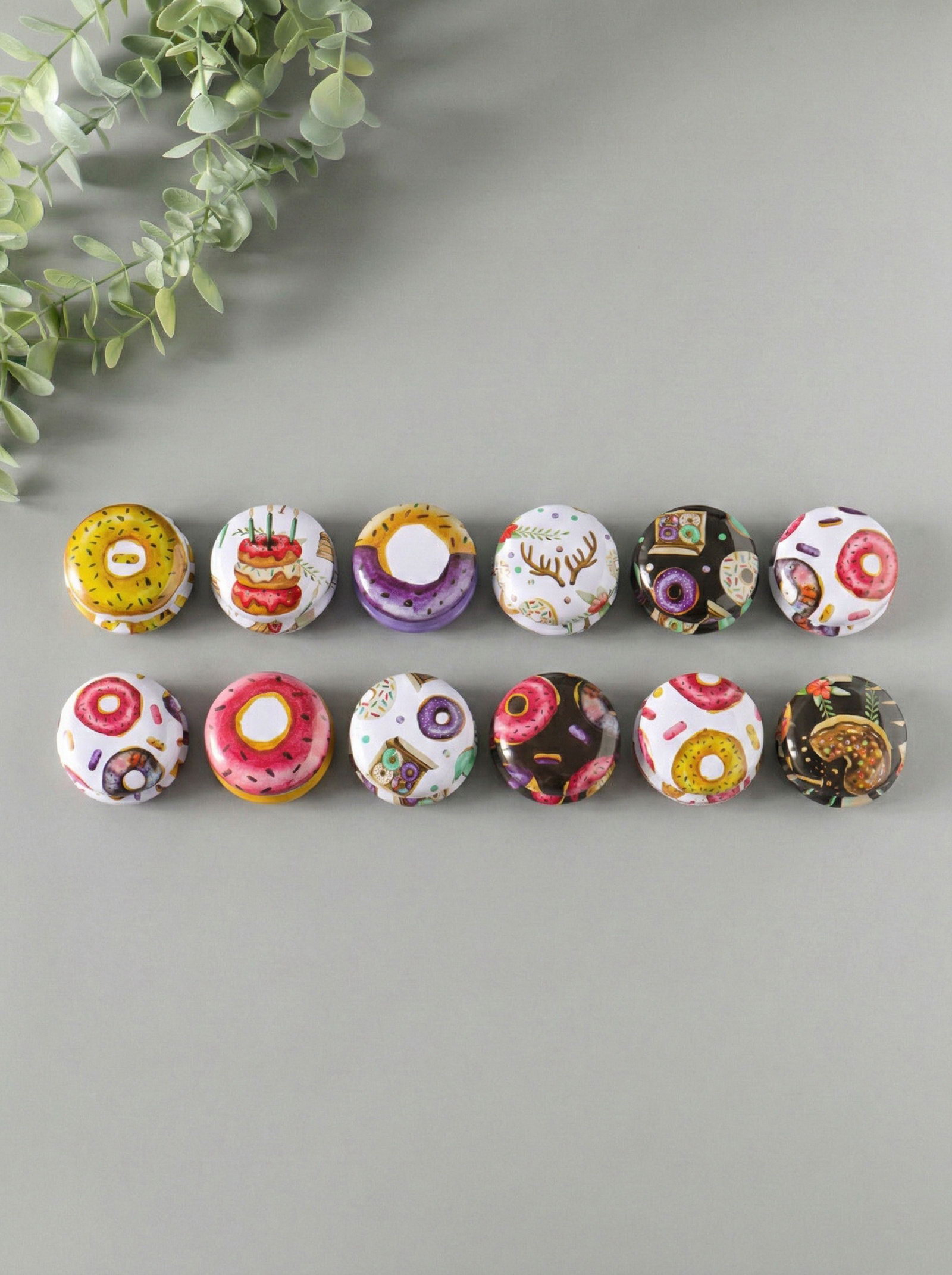 Набор шкатулок для украшений "Пончики", 12 шт., мини, металл, круглая, 4x4x2 см, 4x4x2 см., Китай
