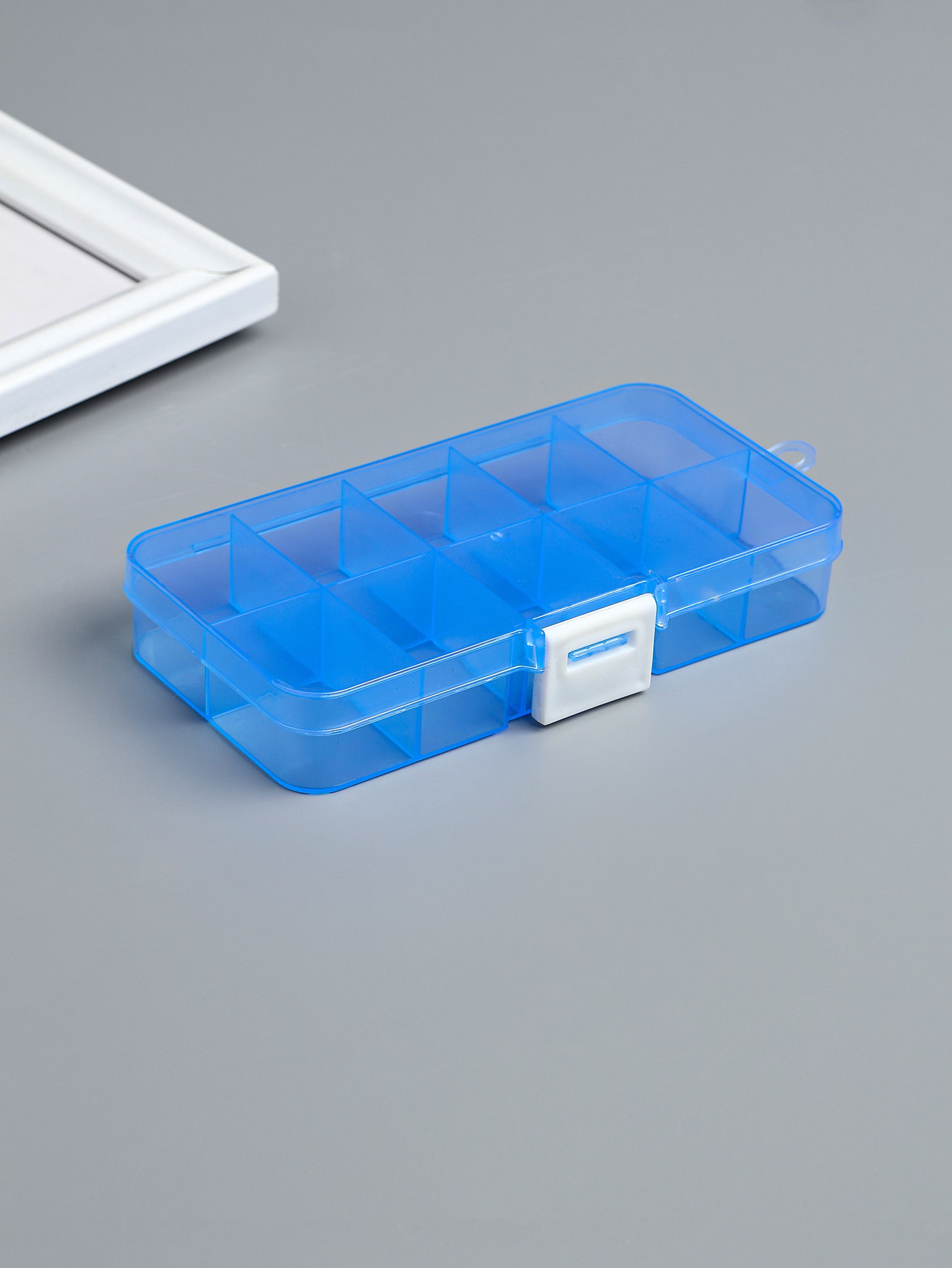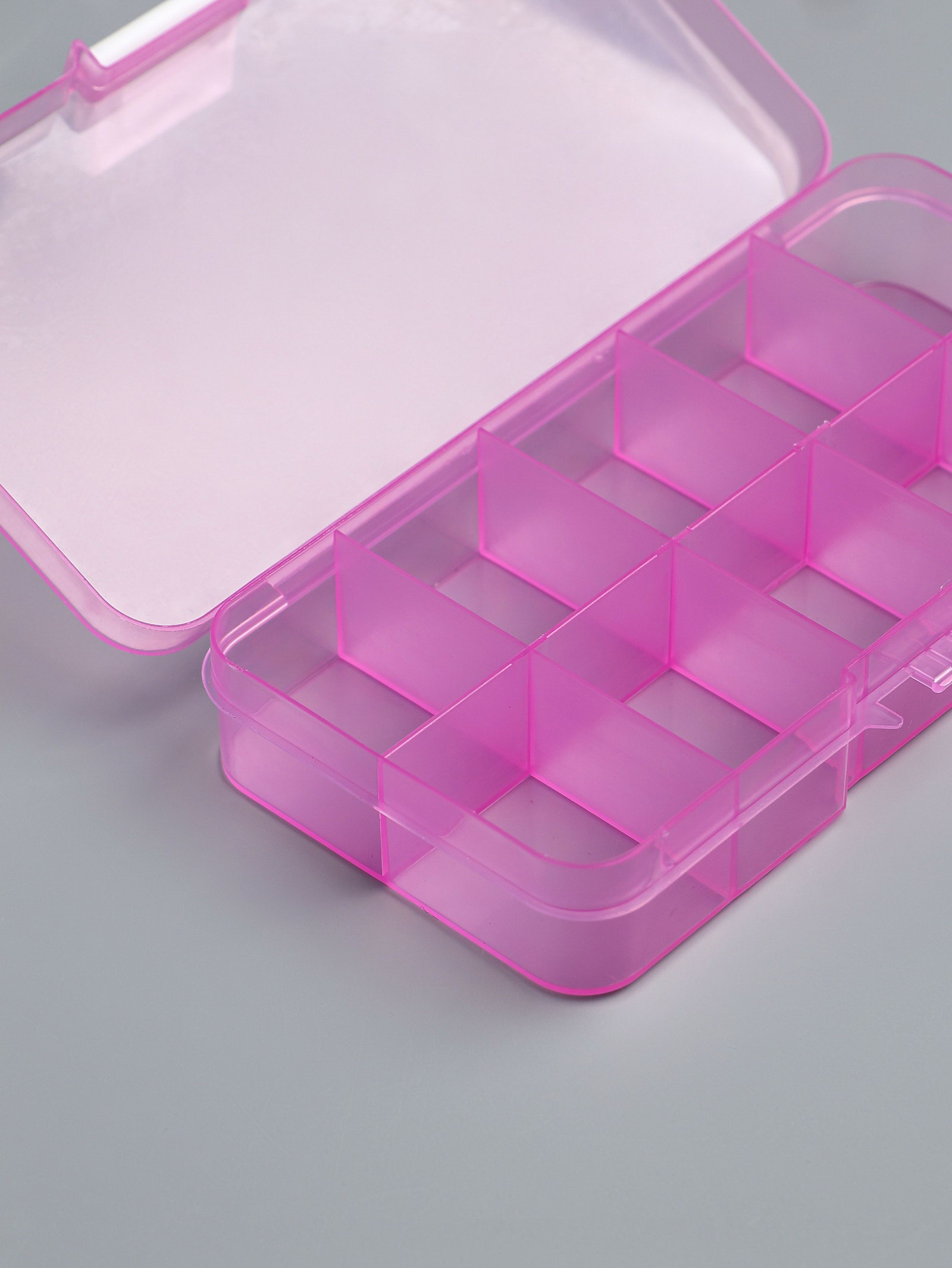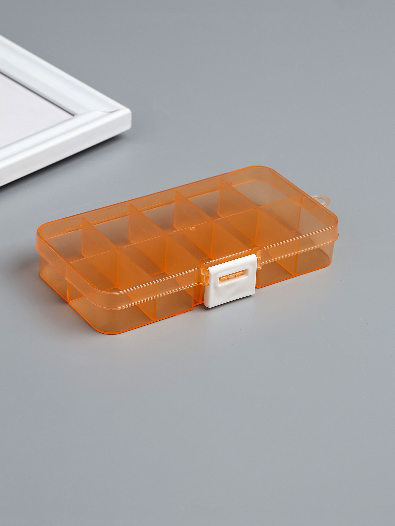 Шкатулка-органайзер для хранения мелочей со съёмными ячейками, 10 отделений, пластик, 2x12.5x6.5 см, МИКС, 6.5x12.5x2 см., Китай