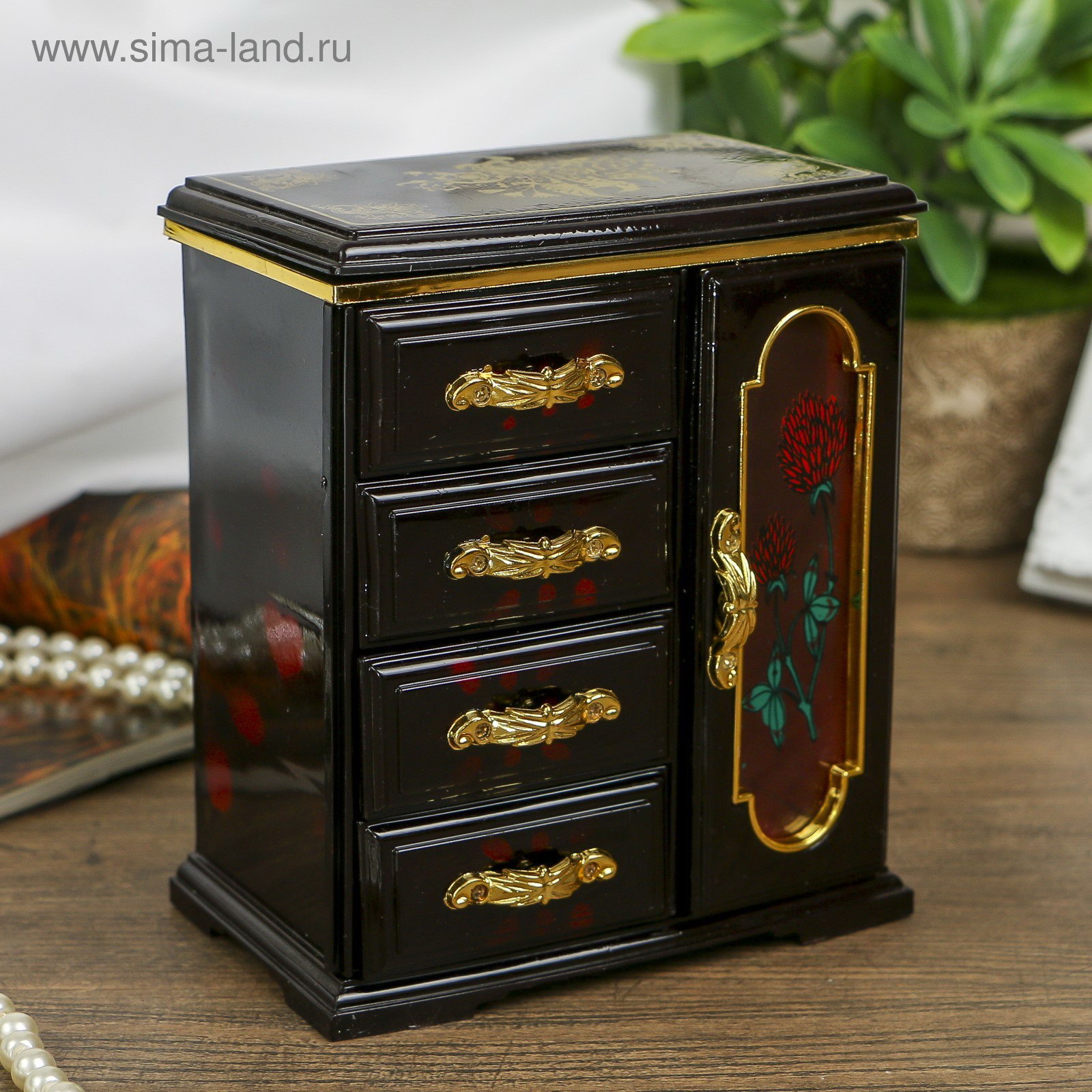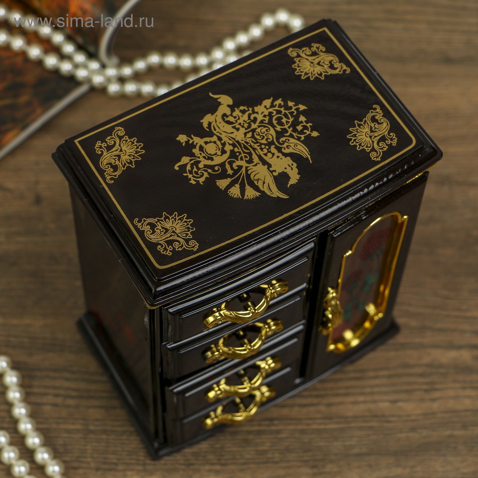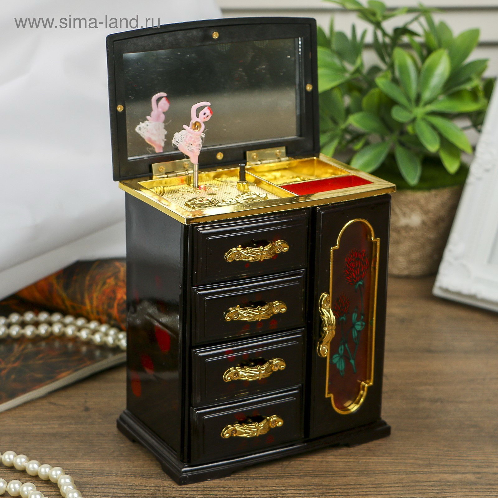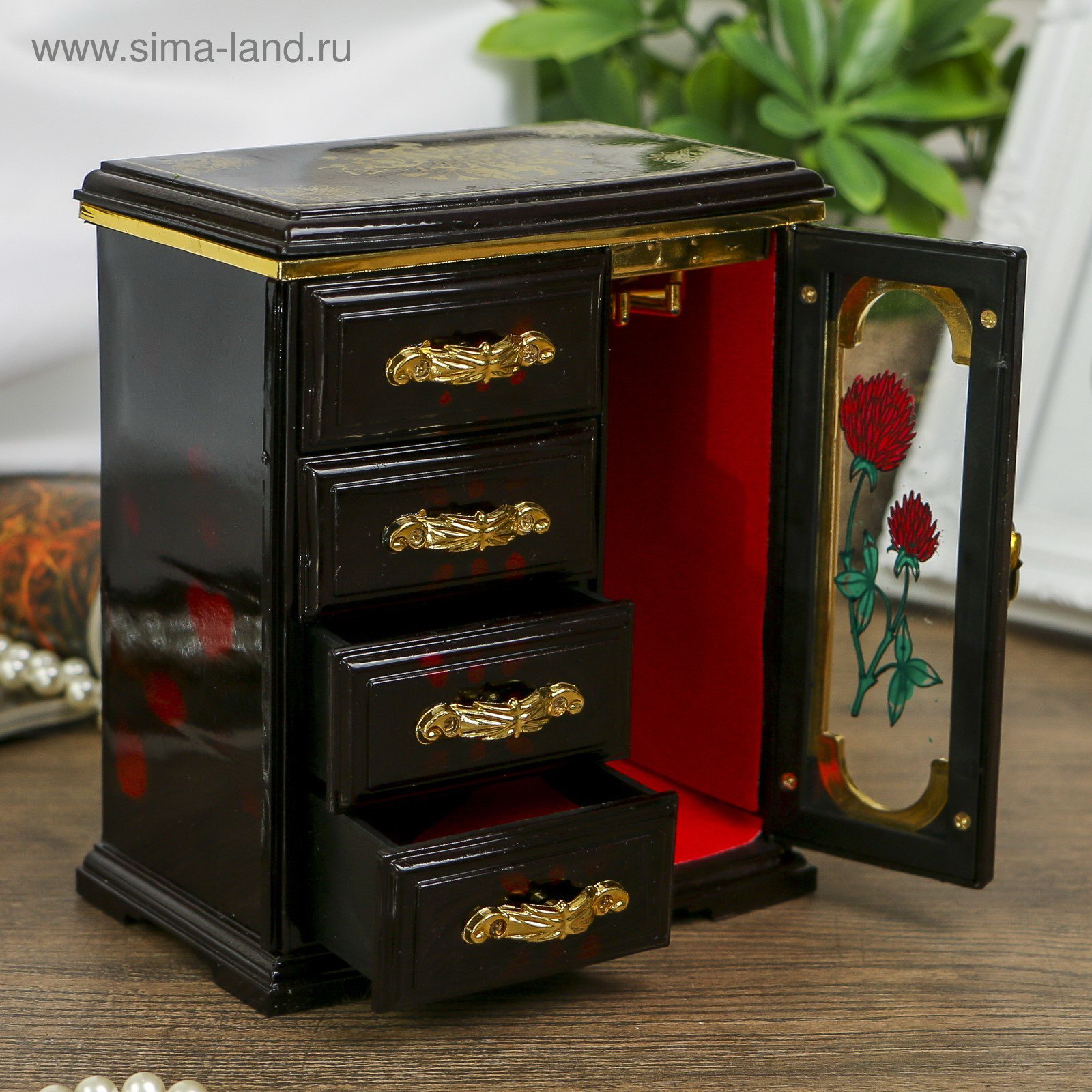 Особенности шкатулки: Выдвижные ящики, Музыкальные Размер упаковки: 13.5 x 9 x 15.5 см. Форма: Прямоугольная Цвет: Коричневый Тематика: Интерьер Тематика праздника: Универсальная тематика Тематика праздника: Универсальная тематика tnved: 9208100000 Если у вас есть ювелирные украшения и различная бижутерия, то обязательно должна быть и шкатулка. Тогда в нужный момент вы найдёте подходящий аксессуар или положите его на место, чтобы не потерять. шкатулка музык шкаф 378 13*8*14,5 см предназначена как раз для хранения украшений. | ||