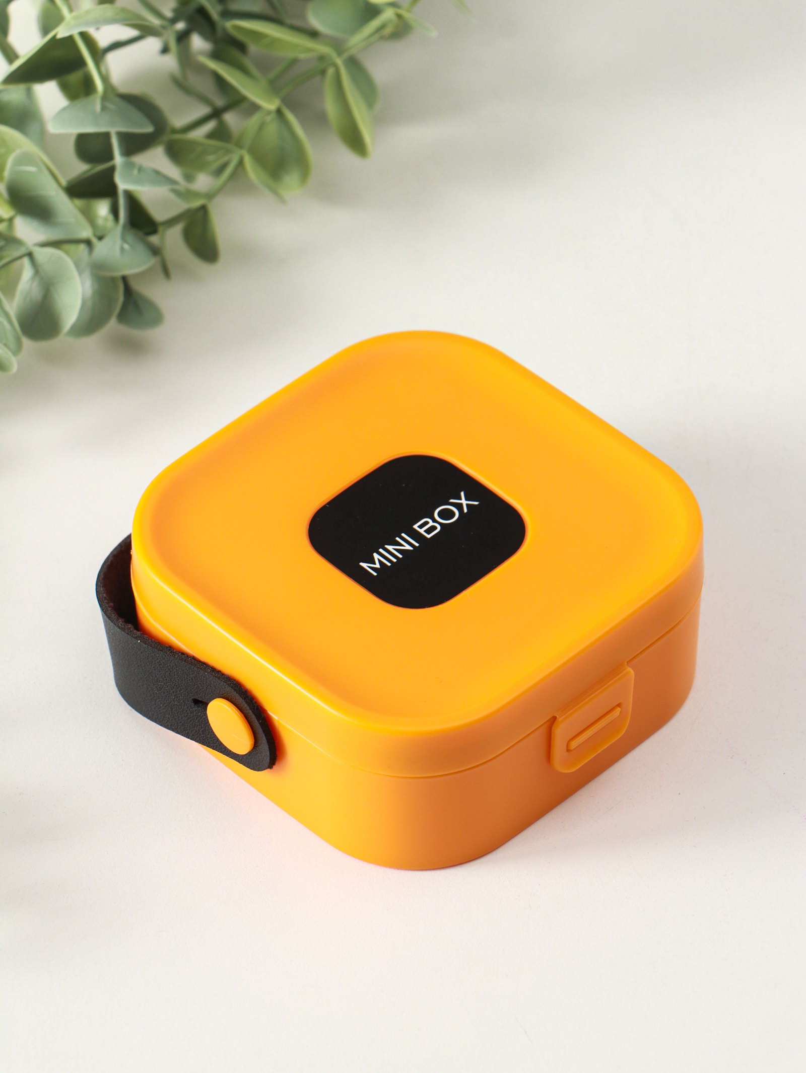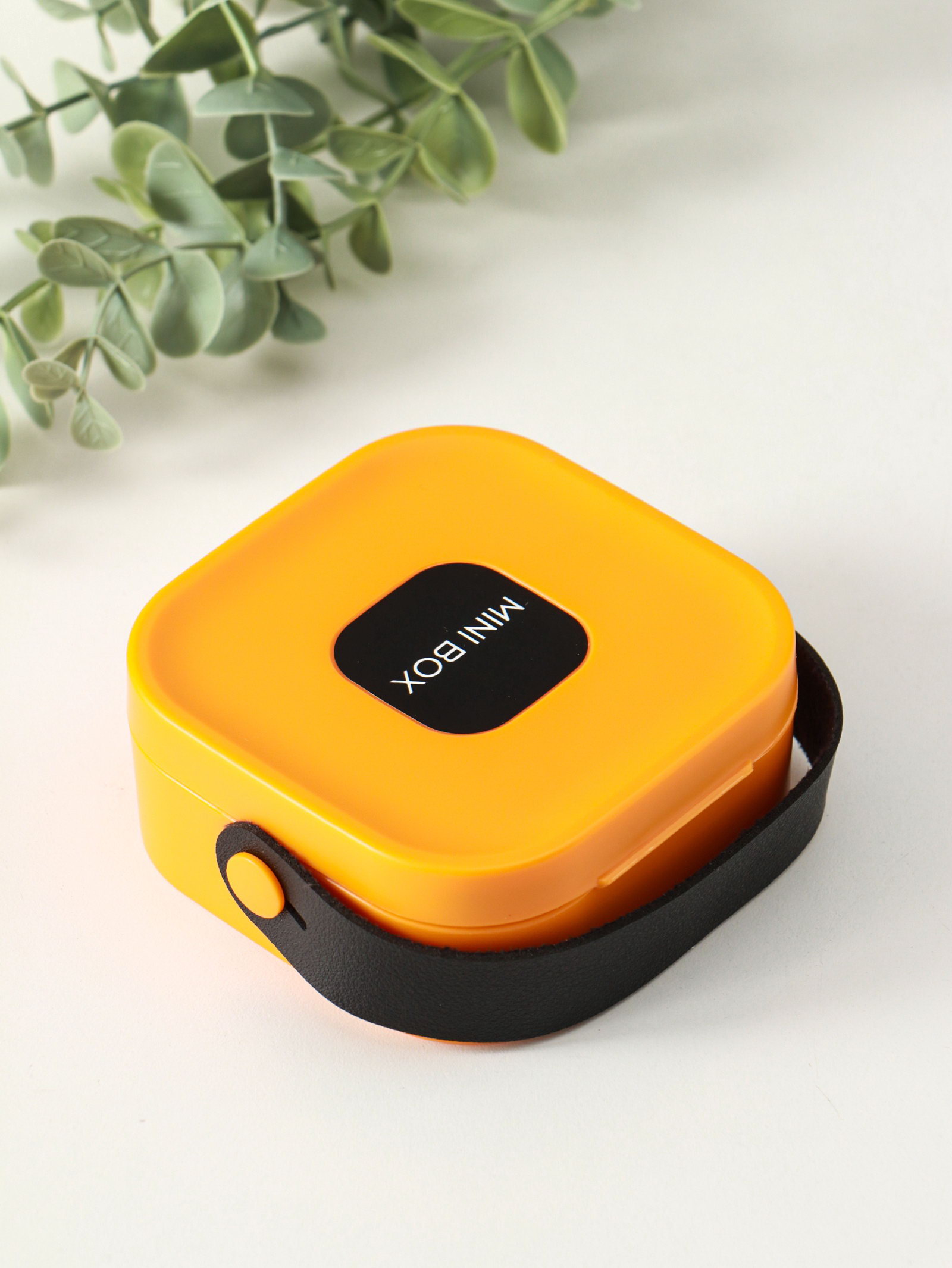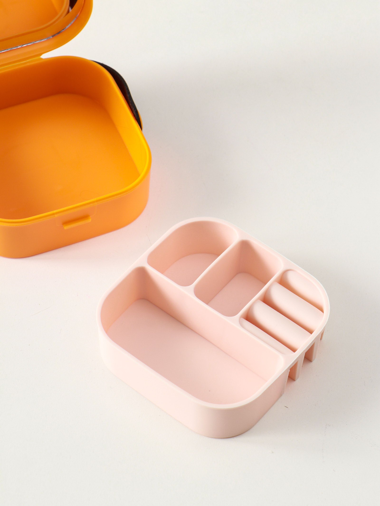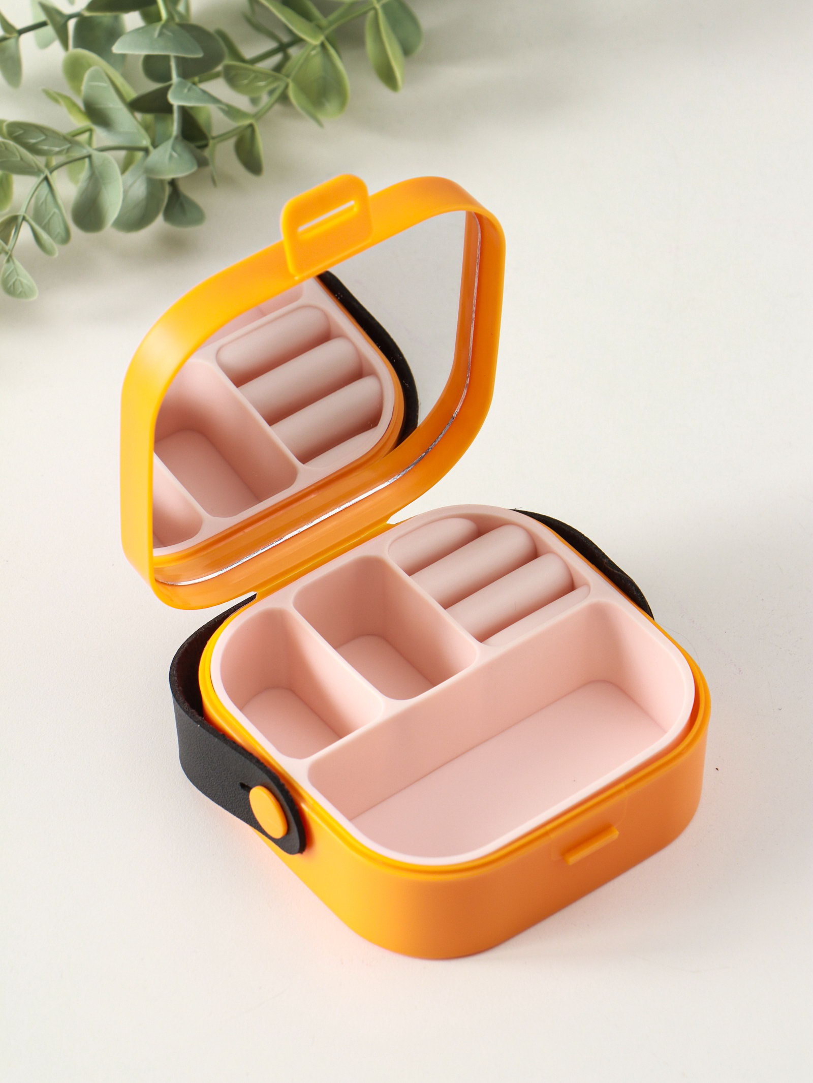 Шкатулка для украшений с зеркалом, с ручкой 3 ячейки, 3 полосы, оранжевый, пластик, 9x9x3.8 см, 9x9x3.8 см., Китай