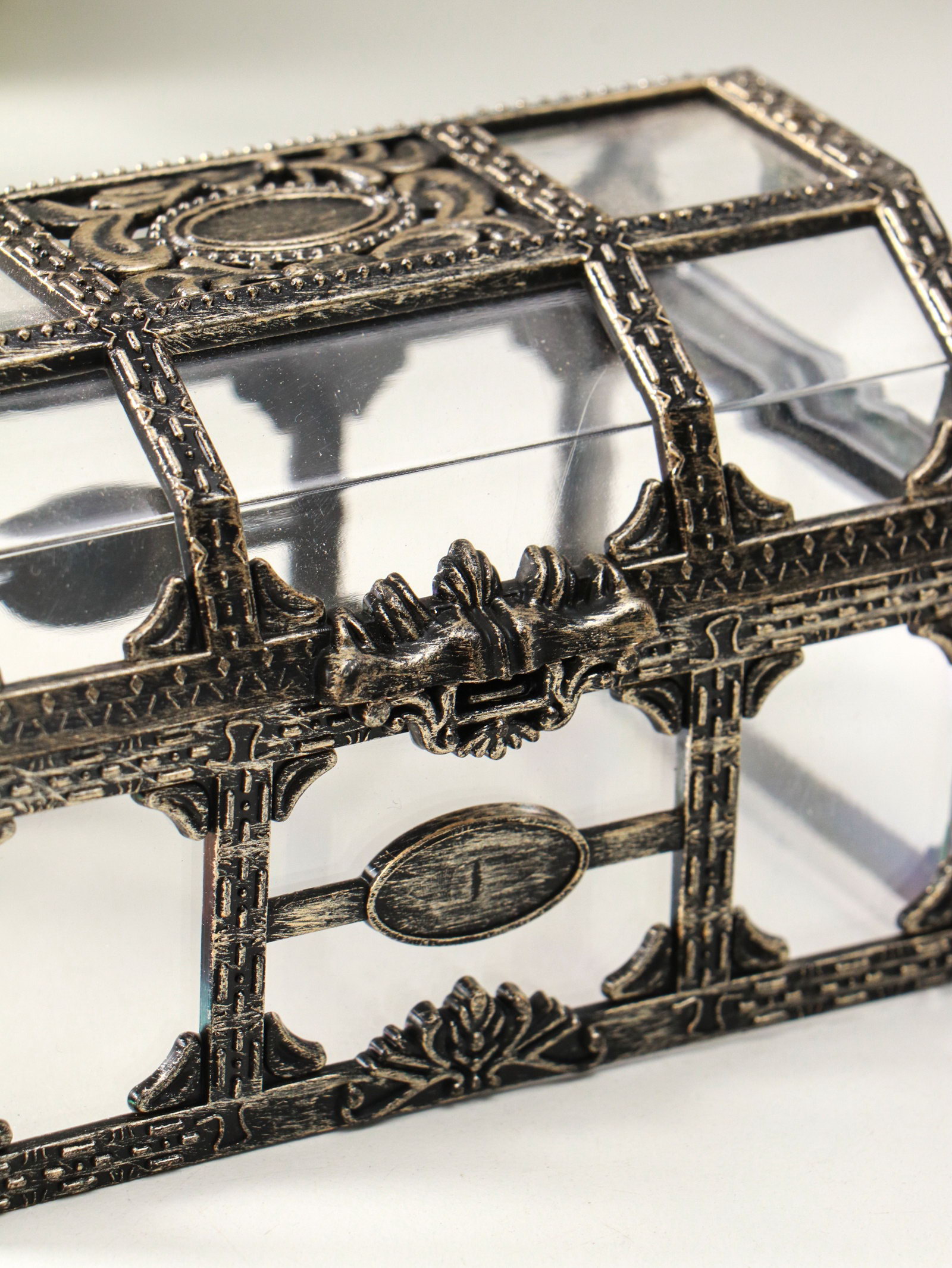 Тематика праздника: 8 Марта, Универсальная тематика Цвет: Бронзовый, Прозрачный Размер упаковки: 8 x 6.5 x 10.5 см. tnved: 4202922000 Ширина, см: 8 Высота, см: 6.5 Покрытие: Без покрытия Форма: Сундучок Длина, см: 10.5 Особенности шкатулки: Для украшений Тематика: Орнамент Этот изящный сундучок надёжный хранитель для ваших самых ценных мелочей. Его классический дизайн с орнаментом и благородный бронзовый оттенок пластика создают ощущение уюта и порядка. Прозрачная крышка сразу показывает содержимое, экономя ваше время на поиски. Компактный размер делает шкатулку идеальным спутником для путешествий или аккуратным украшением туалетного столика. Особенности