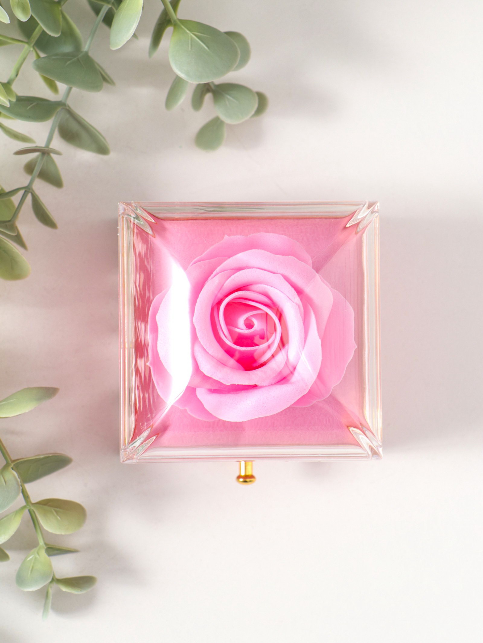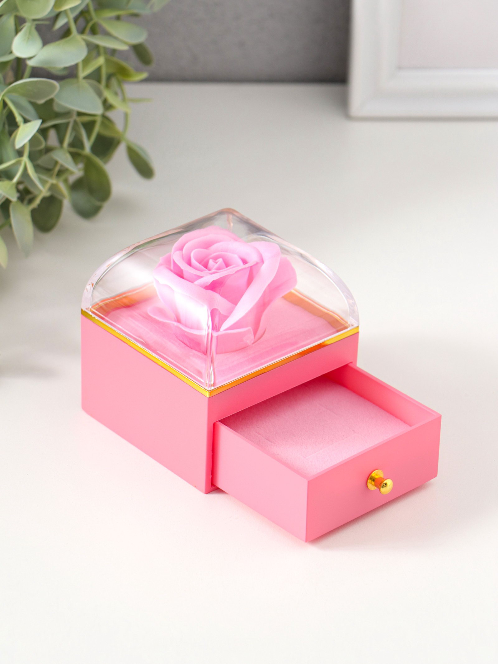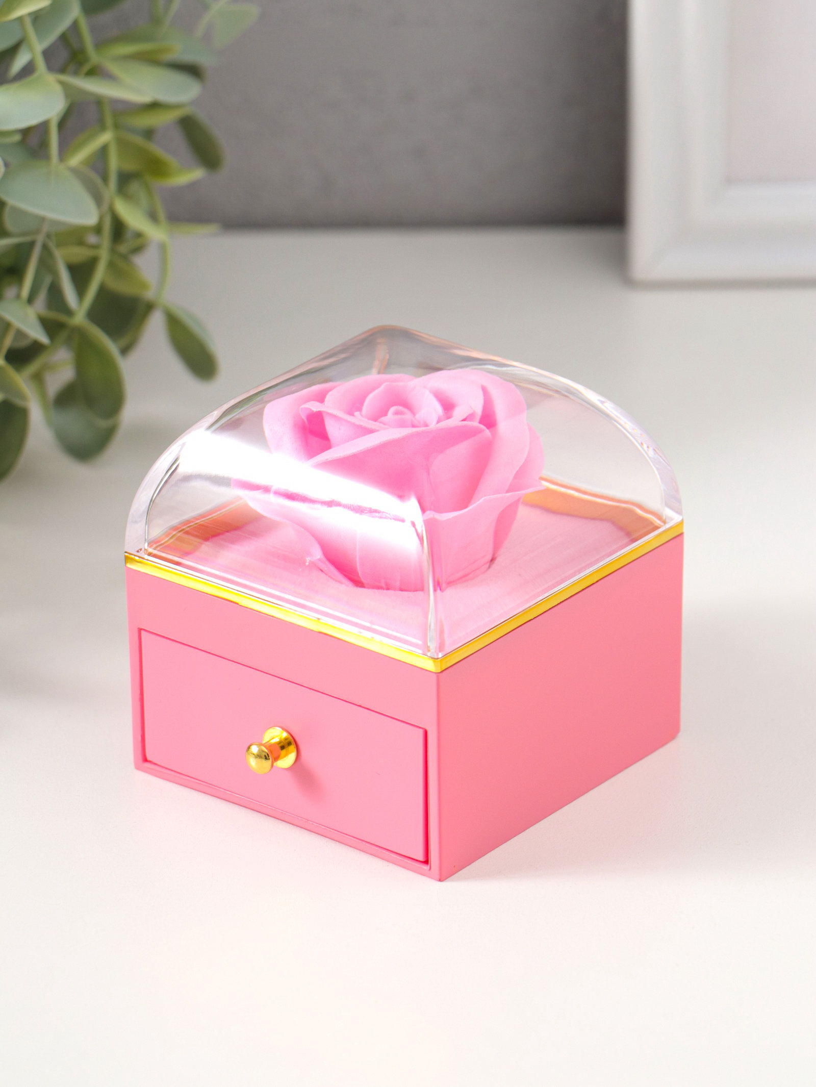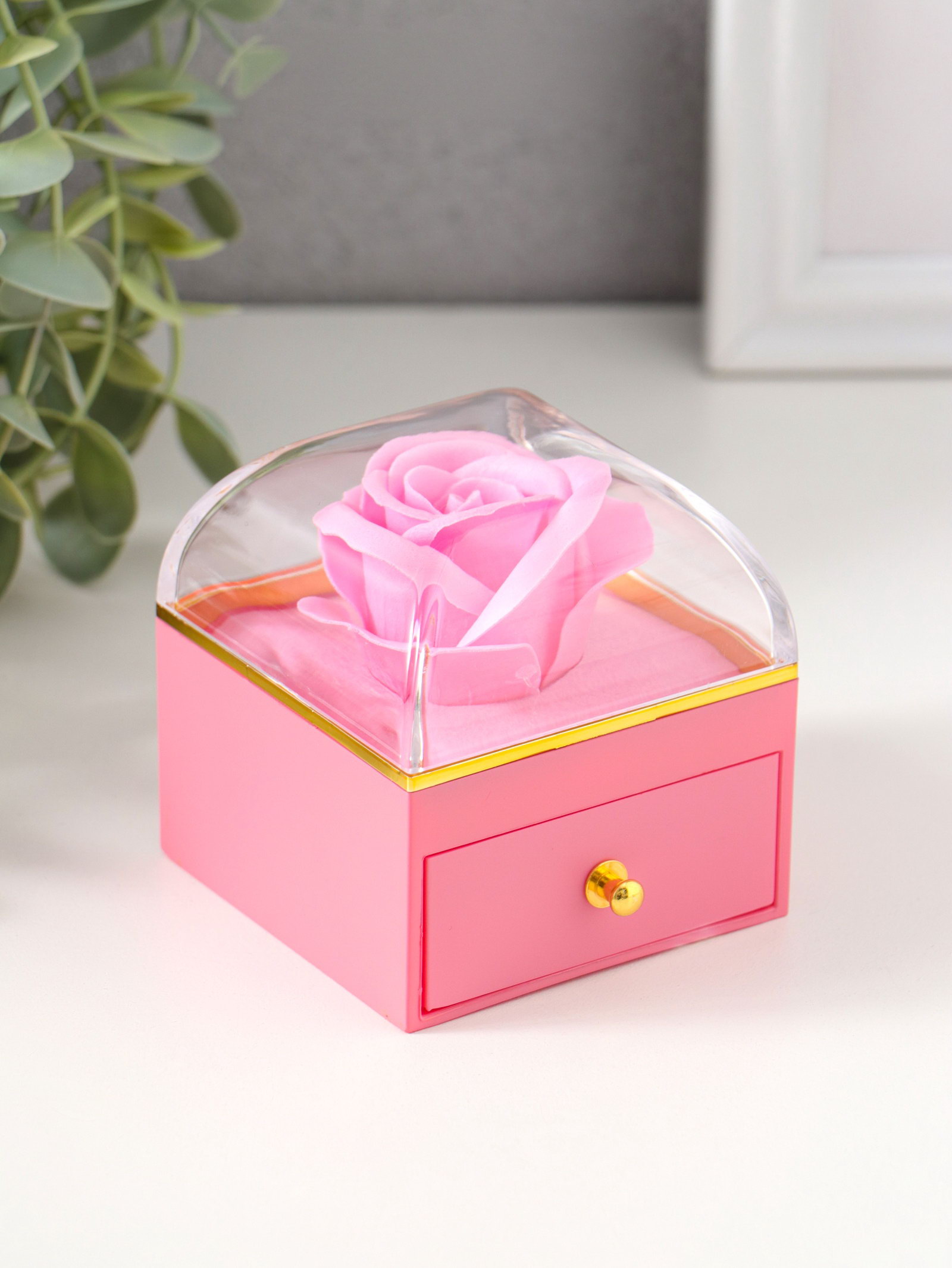 Шкатулка для украшений "Роза в футляре", подарочная, пластик, розовая, 6.8x6.8x7.5 см, 6.8x6.8x7.5 см., Китай