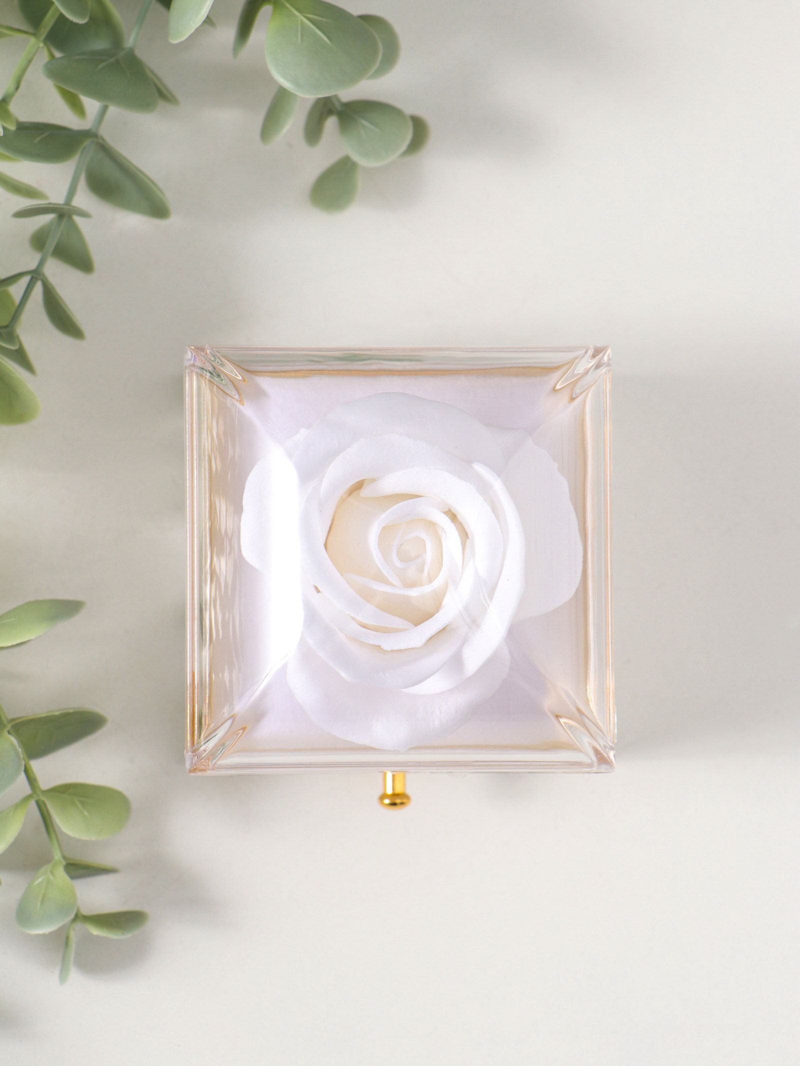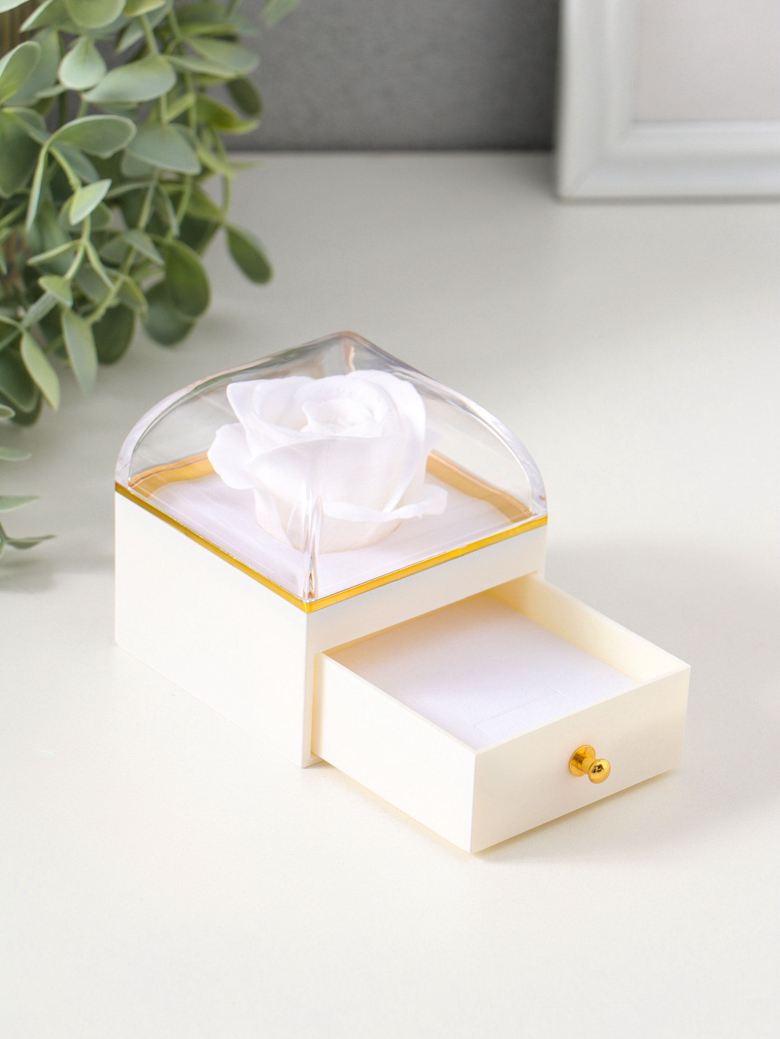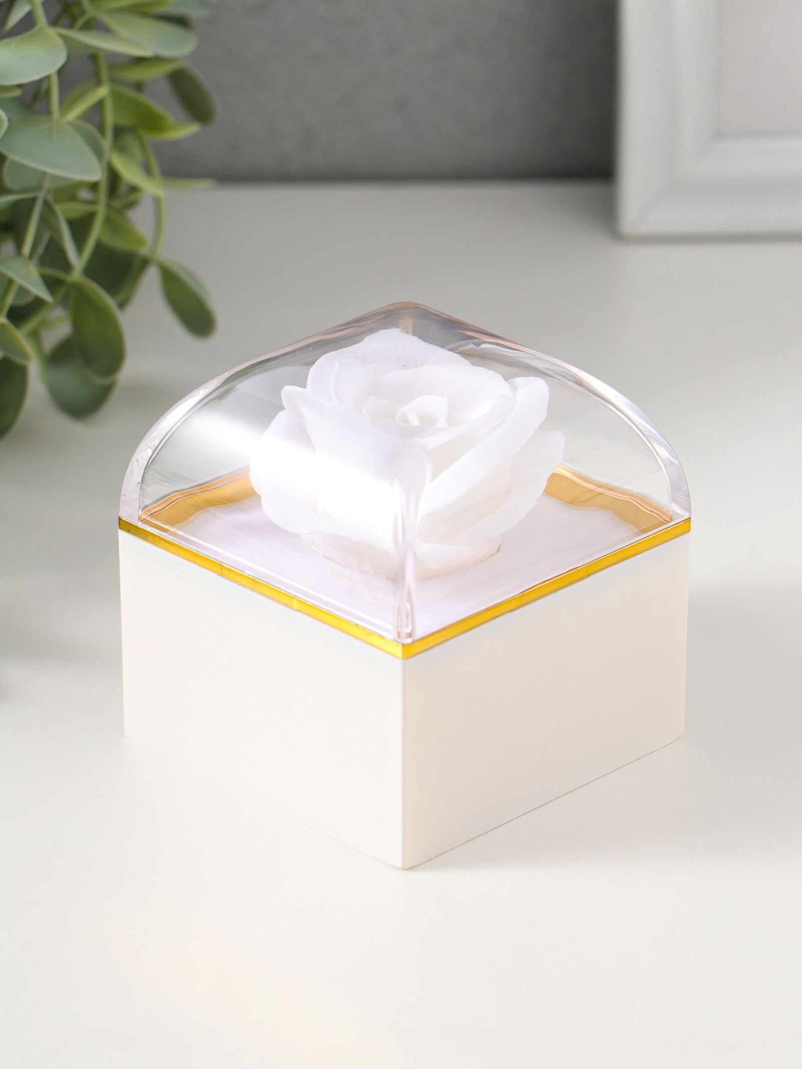 Шкатулка для украшений "Роза в футляре", подарочная, пластик, белая, 6.8x6.8x7.5 см, 6.8x6.8x7.5 см., Китай