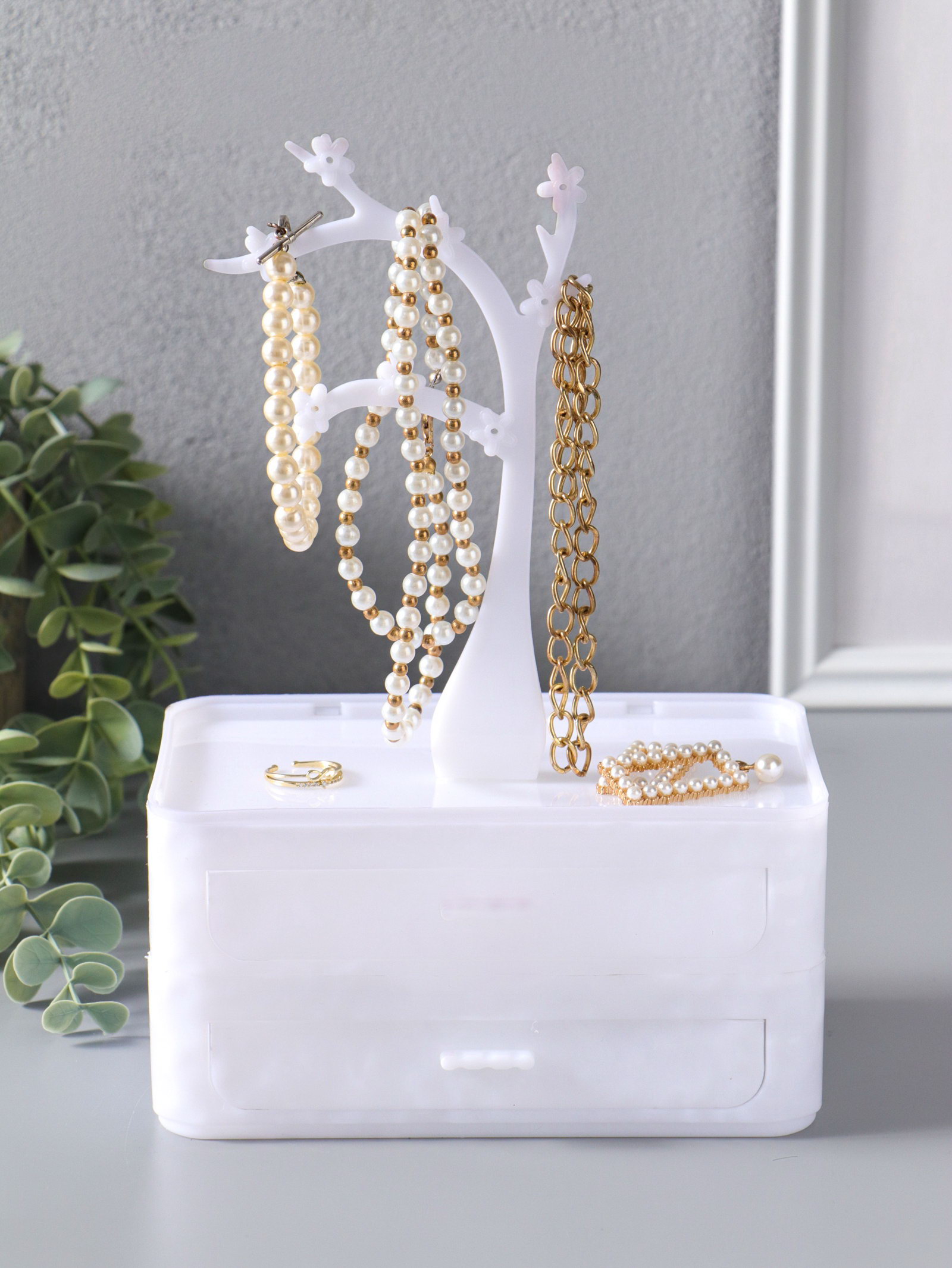Шкатулка украшений "Цветущее дерево", 2 яруса, 17.2x10.5x24 см, белая, 10.5x17.2x24 см., Китай
