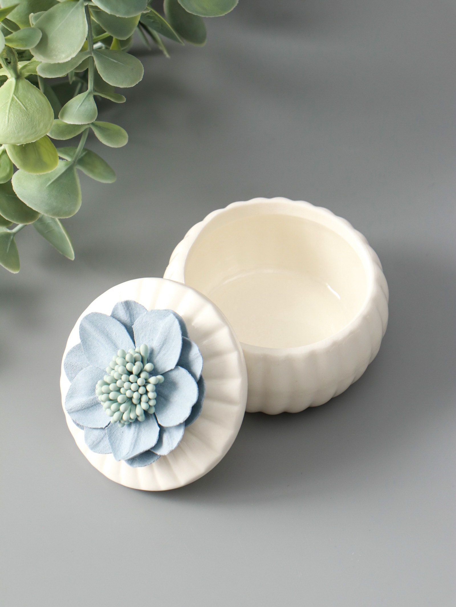 Шкатулка для украшений "Голубой цветок", с крышкой, белая, керамика, 7x7x6.5 см, 7x7x6.5 см., Китай