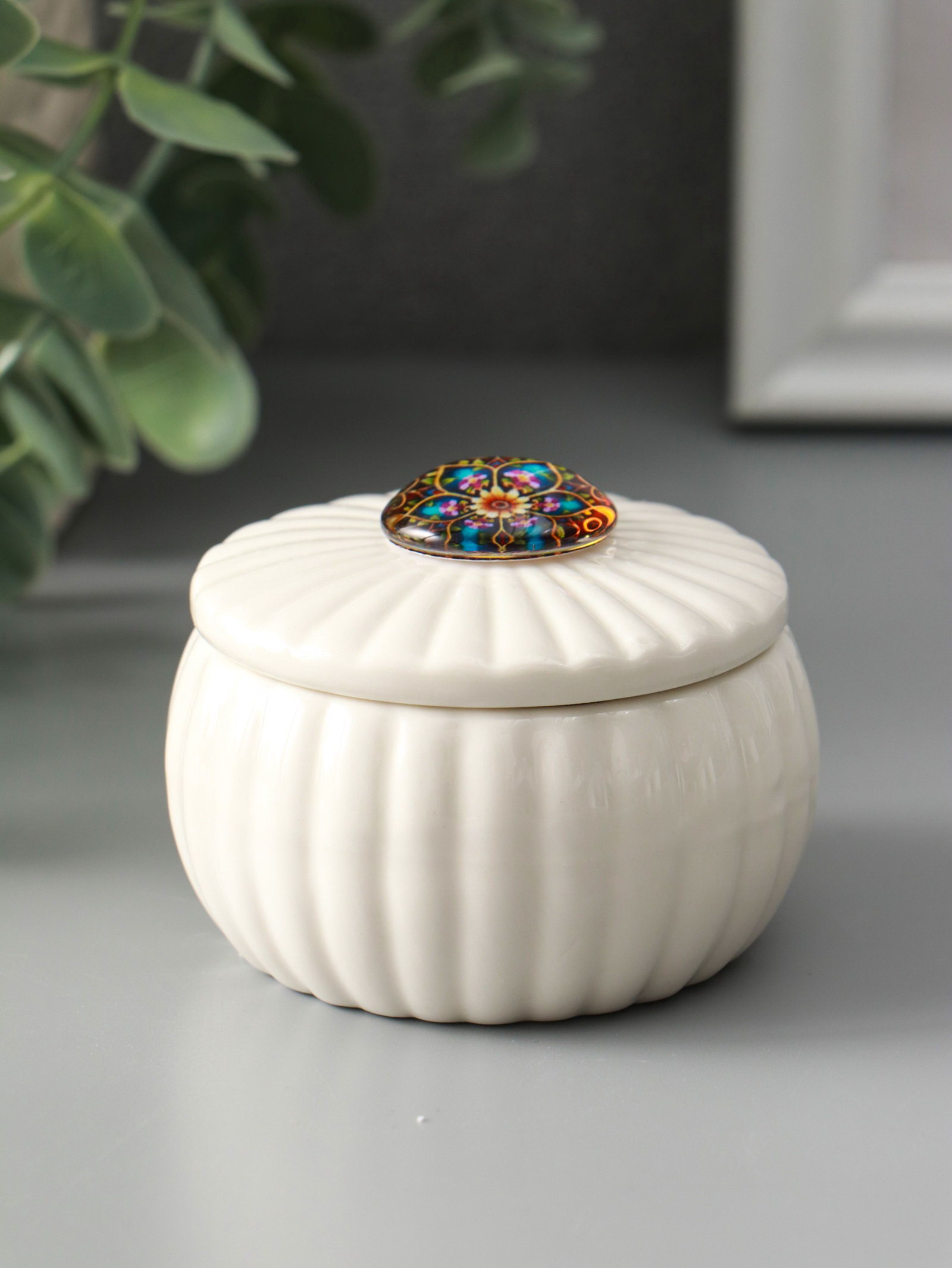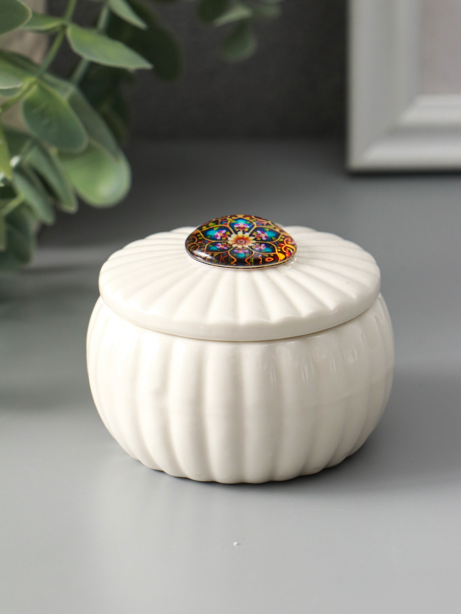 Шкатулка для украшений "Цветок-калейдоскоп", с крышкой, белая, керамика, 7x7x5.3 см, 7x7x5.3 см., Китай