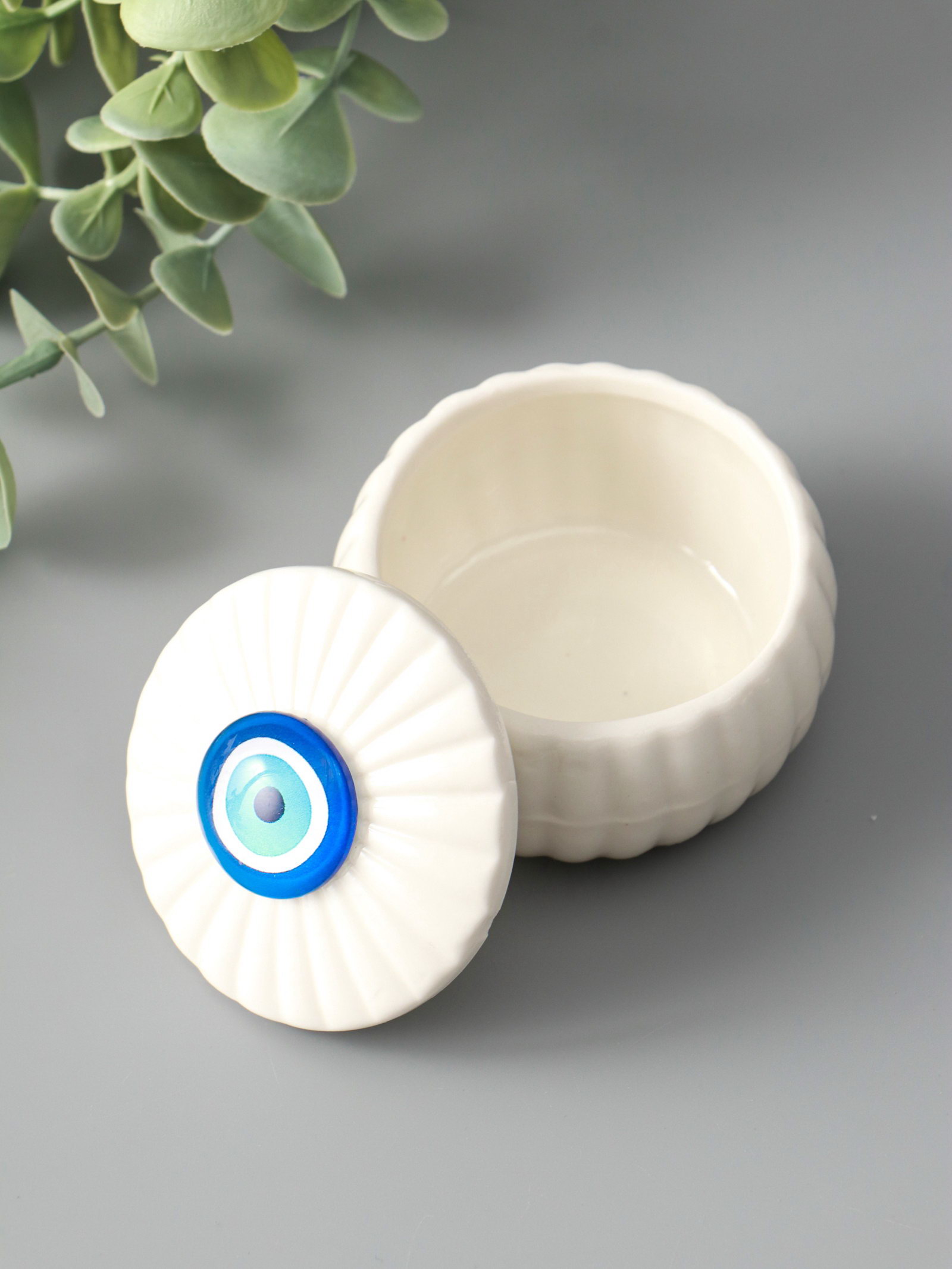 Шкатулка для украшений "Глаз от сглаза", с крышкой, белая, керамика, 7x7x5.3 см, 7x7x5.3 см., Китай