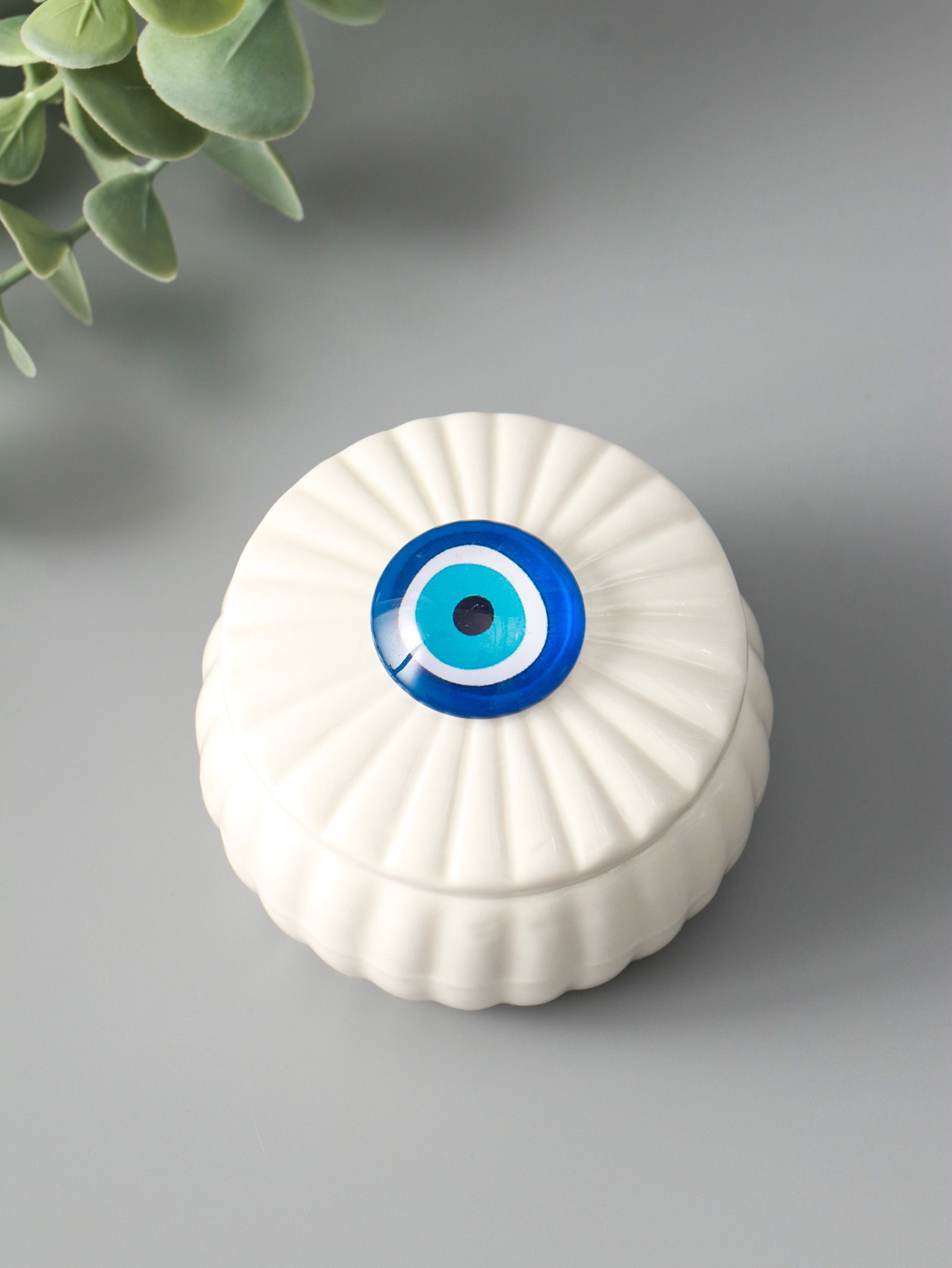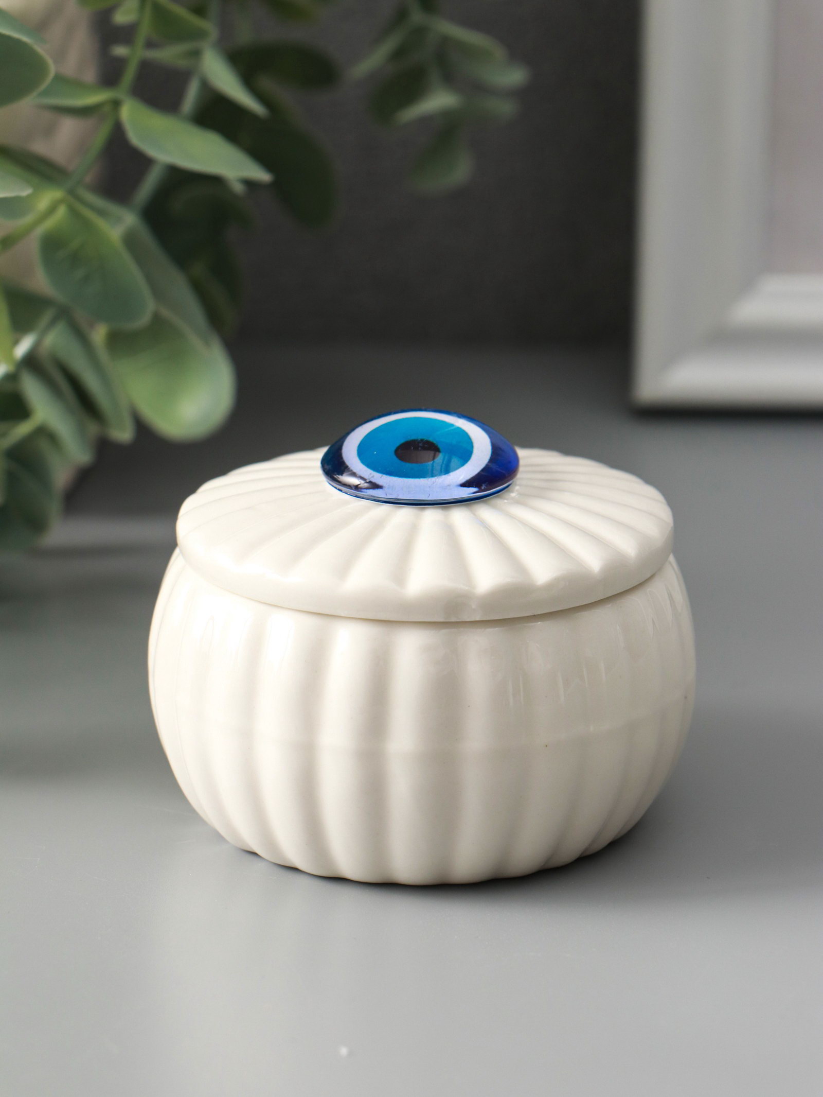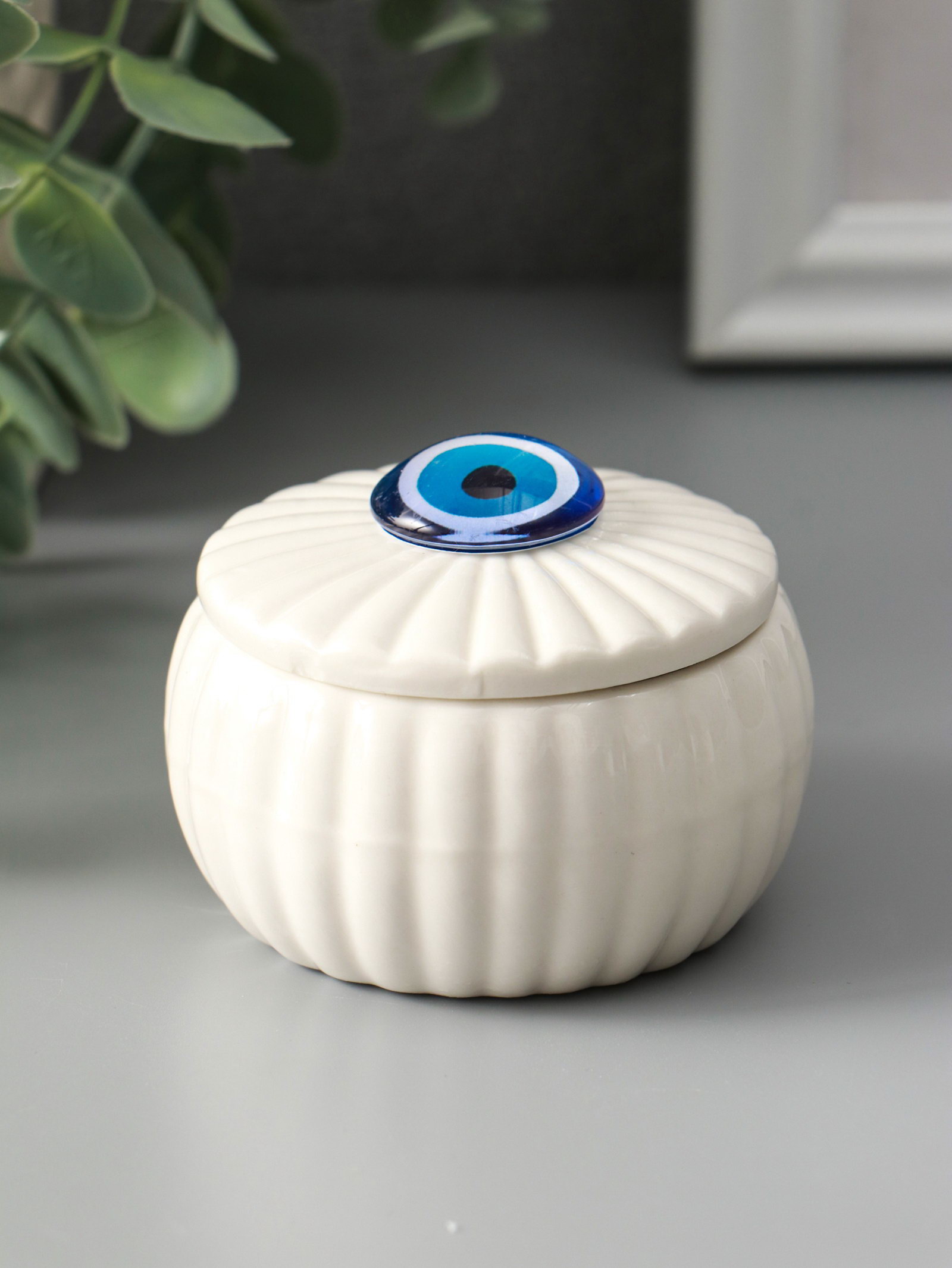 Шкатулка для украшений "Глаз от сглаза", с крышкой, белая, керамика, 7x7x5.3 см, 7x7x5.3 см., Китай