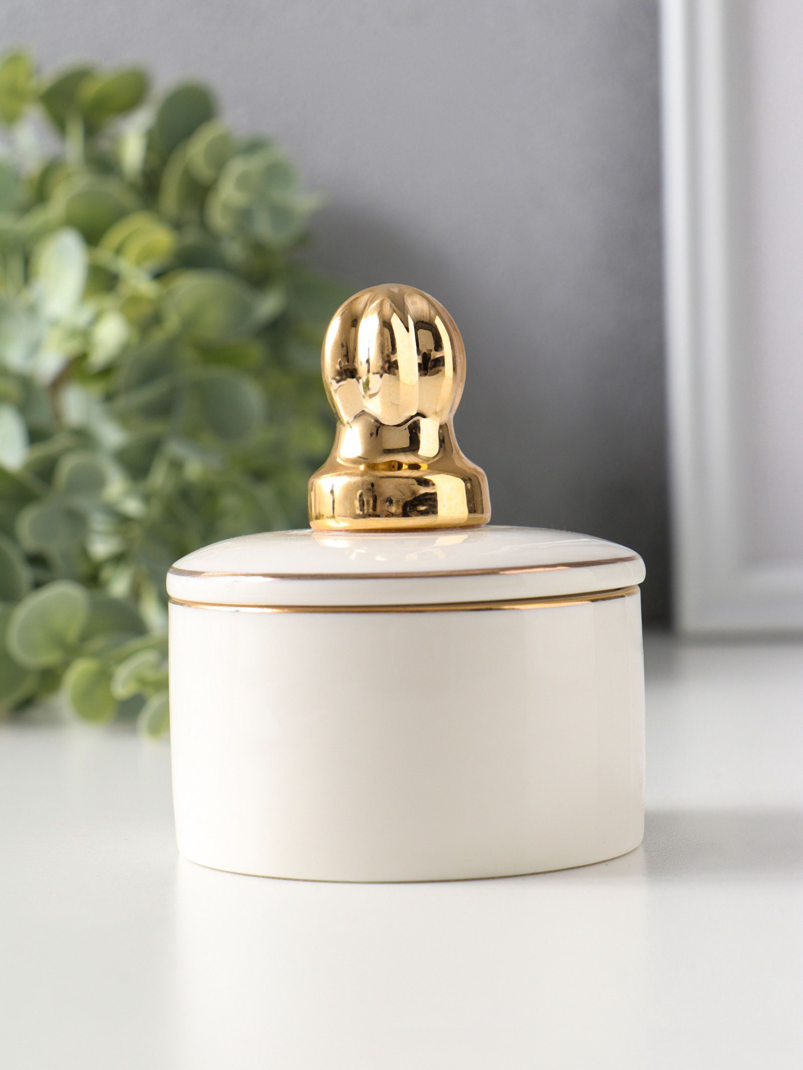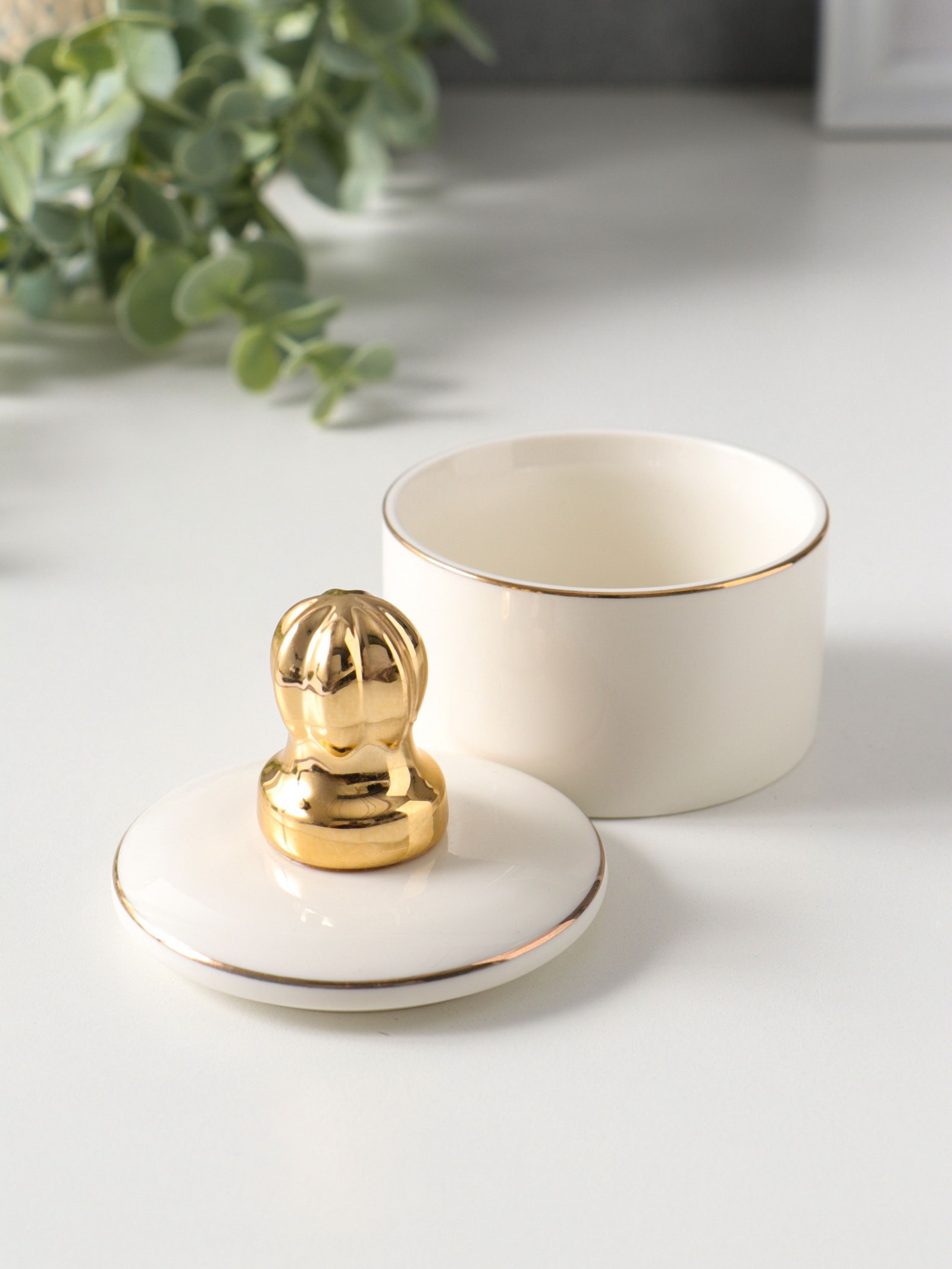 Шкатулка для украшений керамика с золотой линией "Королевская пешка", с крышкой, 7x7x8.5 см, 7x7x8.5 см., Китай