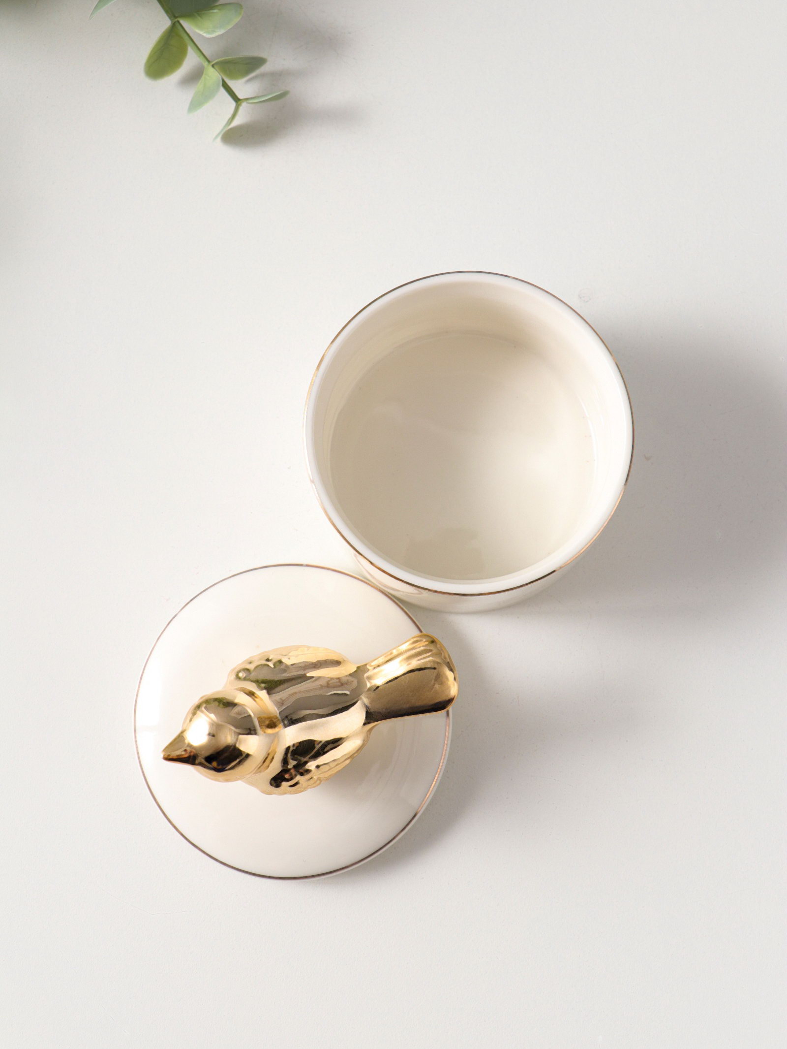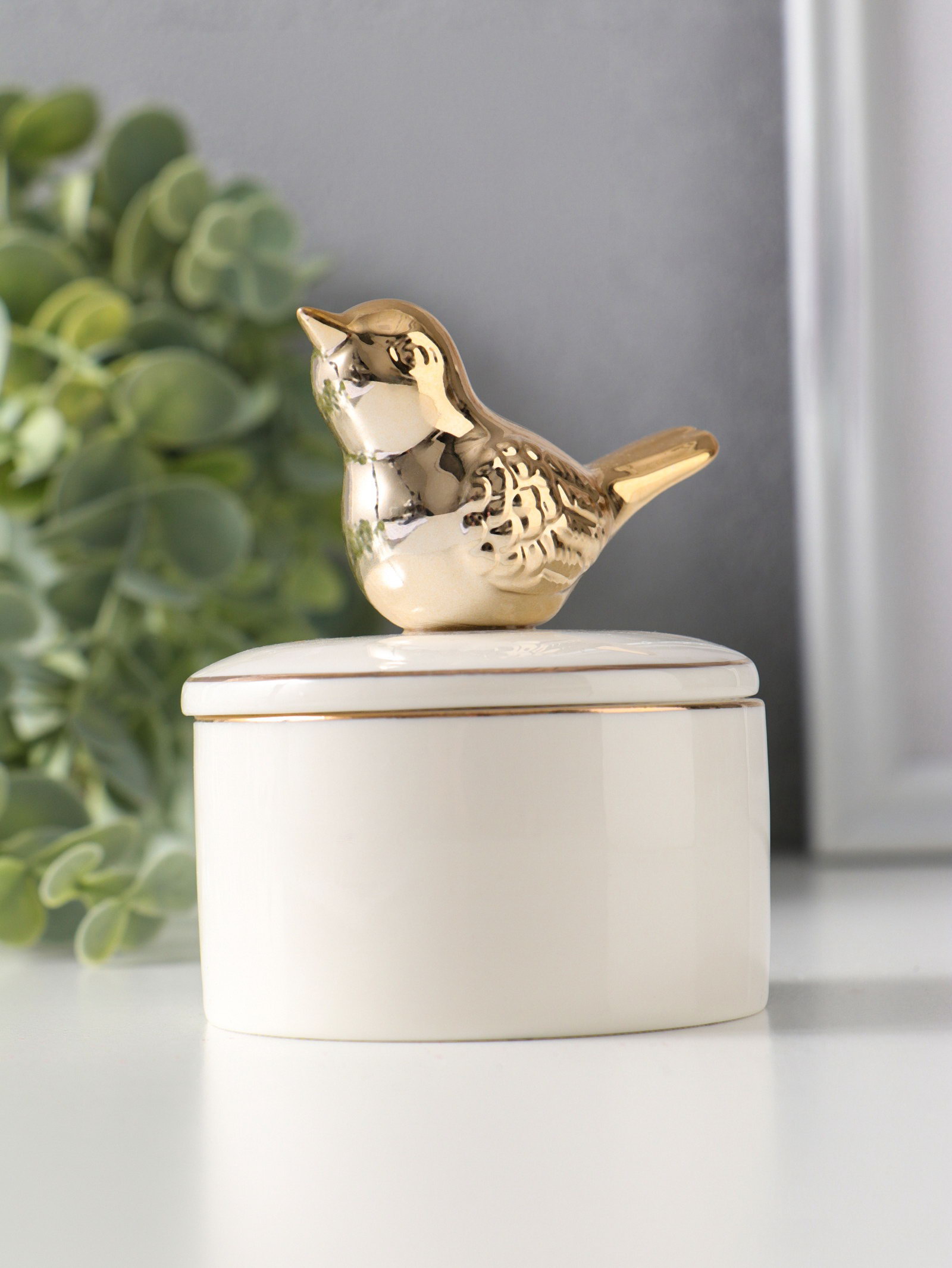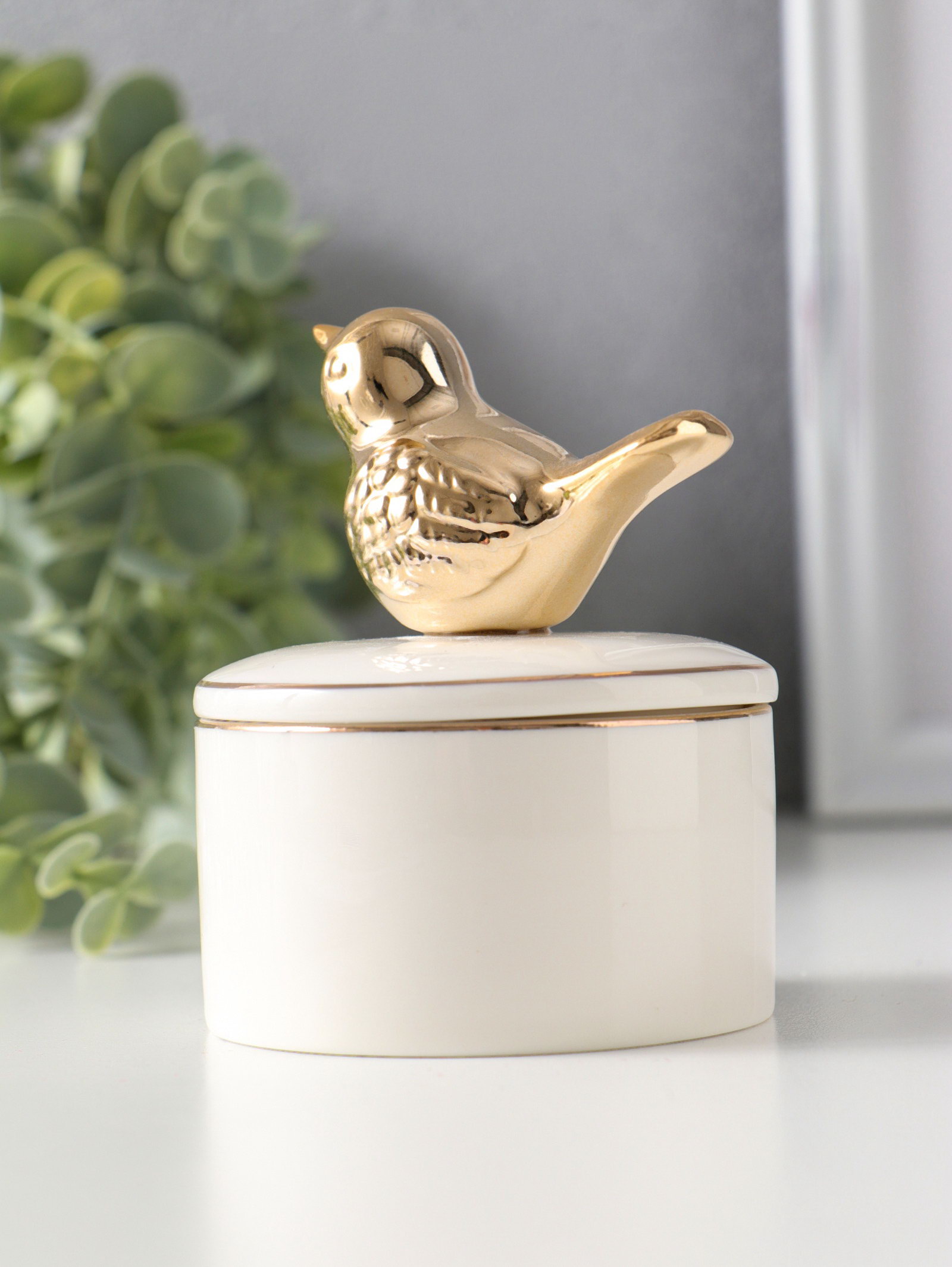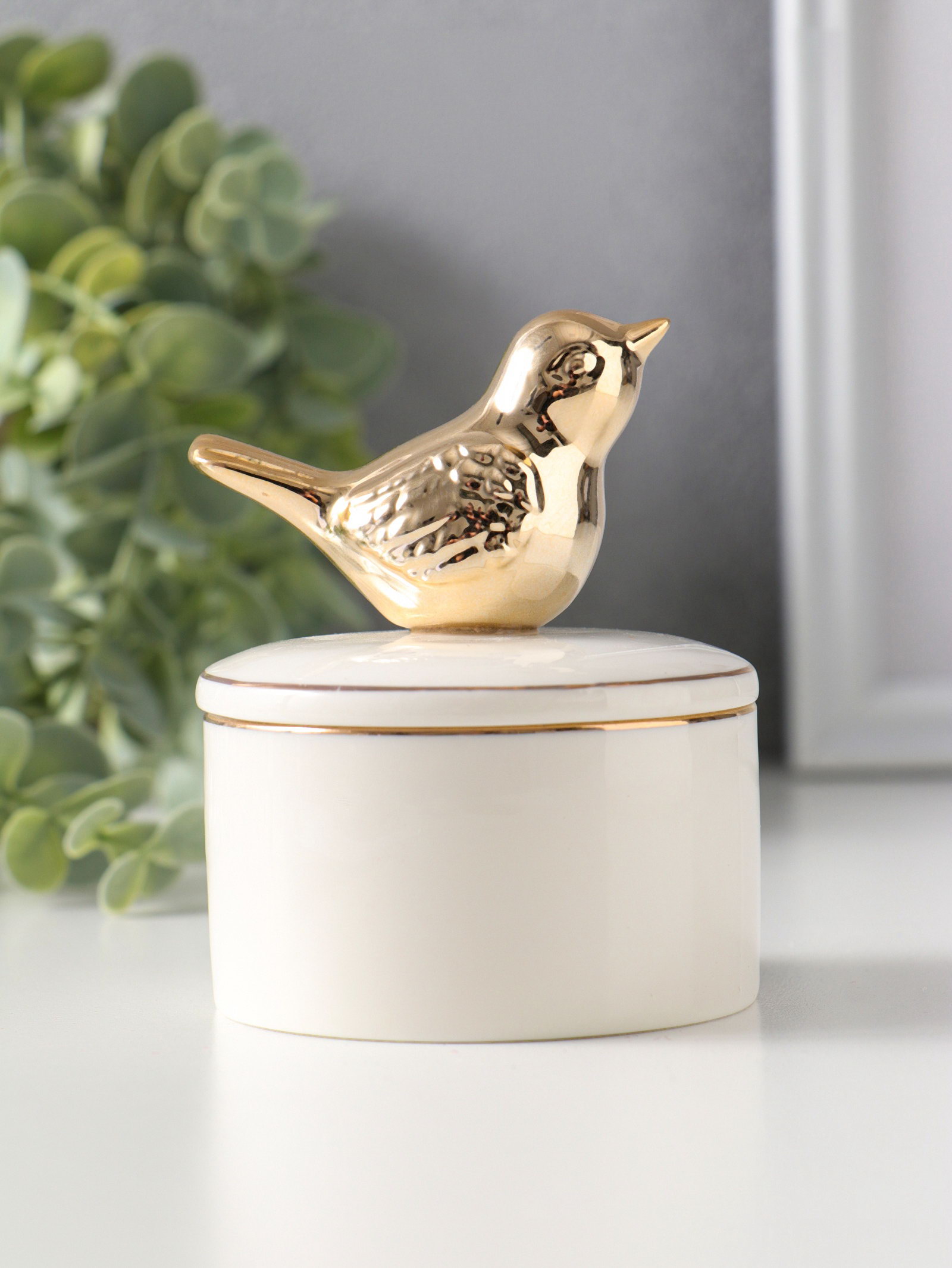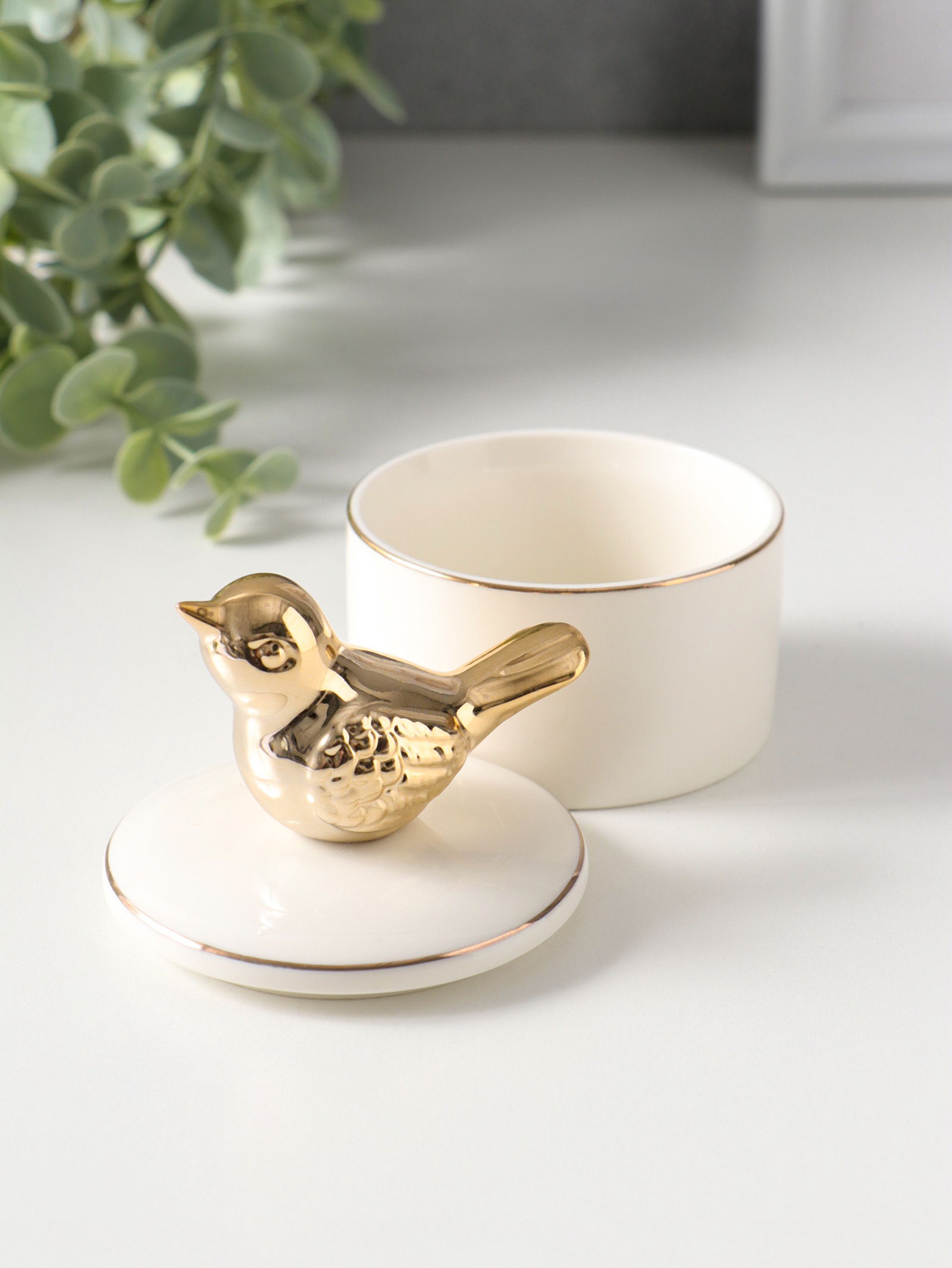 Шкатулка для украшений керамика с золотой линией "Птичка", с крышкой, 7x7x9 см, 7x7x9 см., Китай
