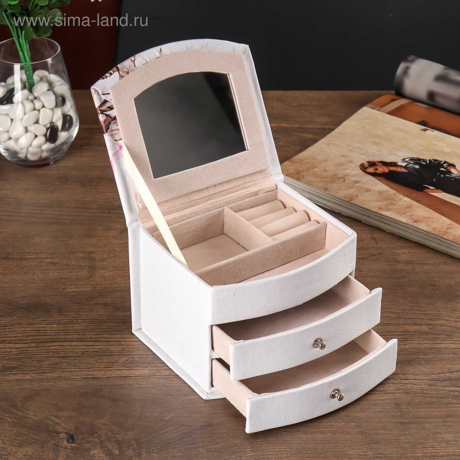 Особенности шкатулки: Выдвижные ящики, Для украшений, С делениями, С зеркалом Размер упаковки: 13 x 12 x 15 см. Тематика праздника: 8 Марта Форма: Сундучок Цвет: Разноцветный Покрытие: Искусственная кожа Тематика: Цветочно-растительная Тематика: Цветочно-растительная tnved: 4202922000 Ширина, см: 14 Длина, см: 12 Высота, см: 10.5 Если у вас есть ювелирные украшения и различная бижутерия, то обязательно должна быть и шкатулка. Тогда в нужный момент вы найдёте подходящий аксессуар или положите его на место, чтобы не потерять. Шкатулка для украшений "Пионы", кожзам, с выдвижными ящиками, 14x12x10.5 см предназначена как раз для хранения украшений. | ||